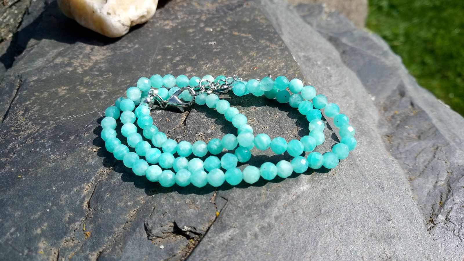 Použitý amazonit má nádhernou blankytně tyrkysovou barvu.
