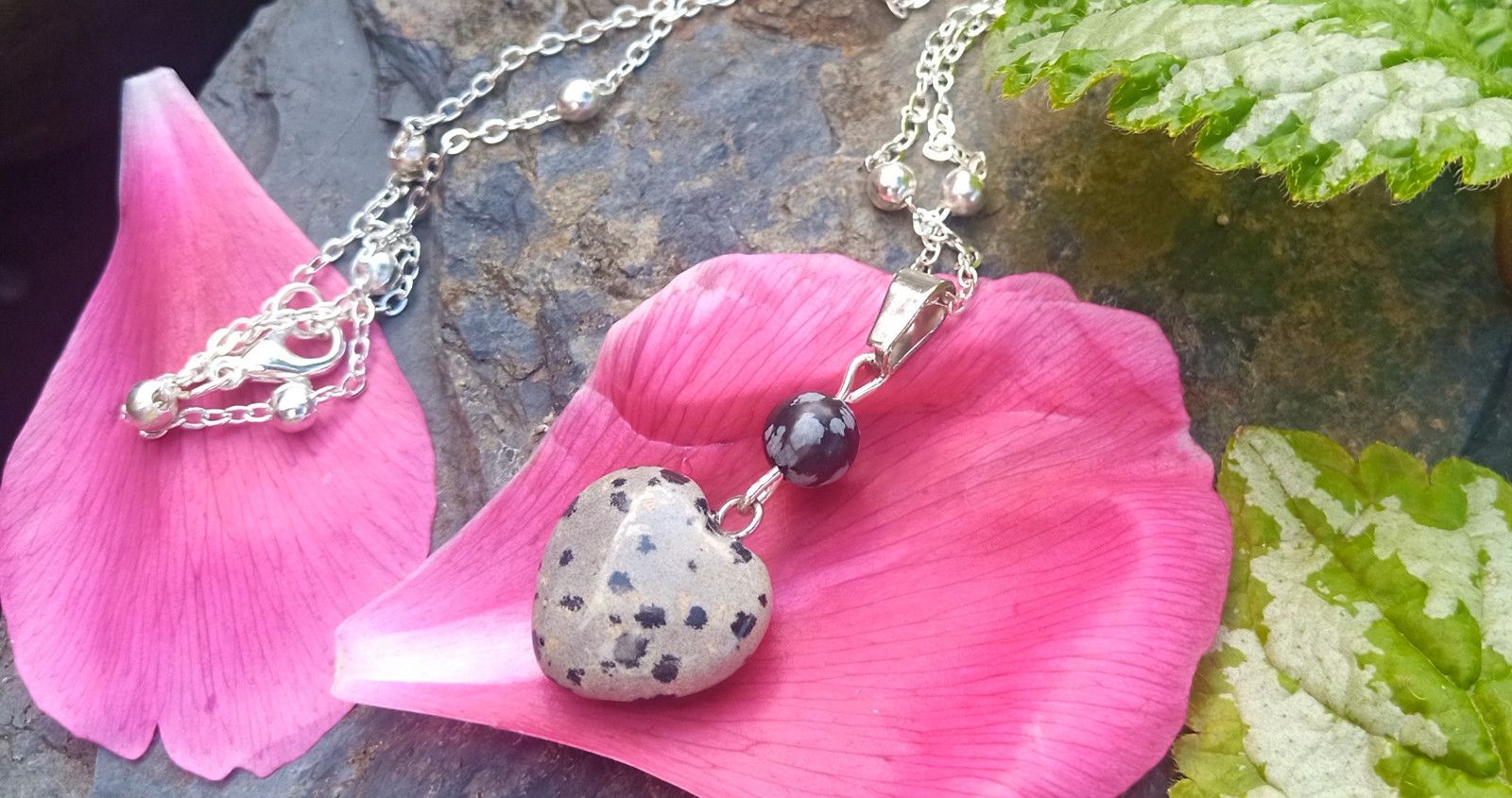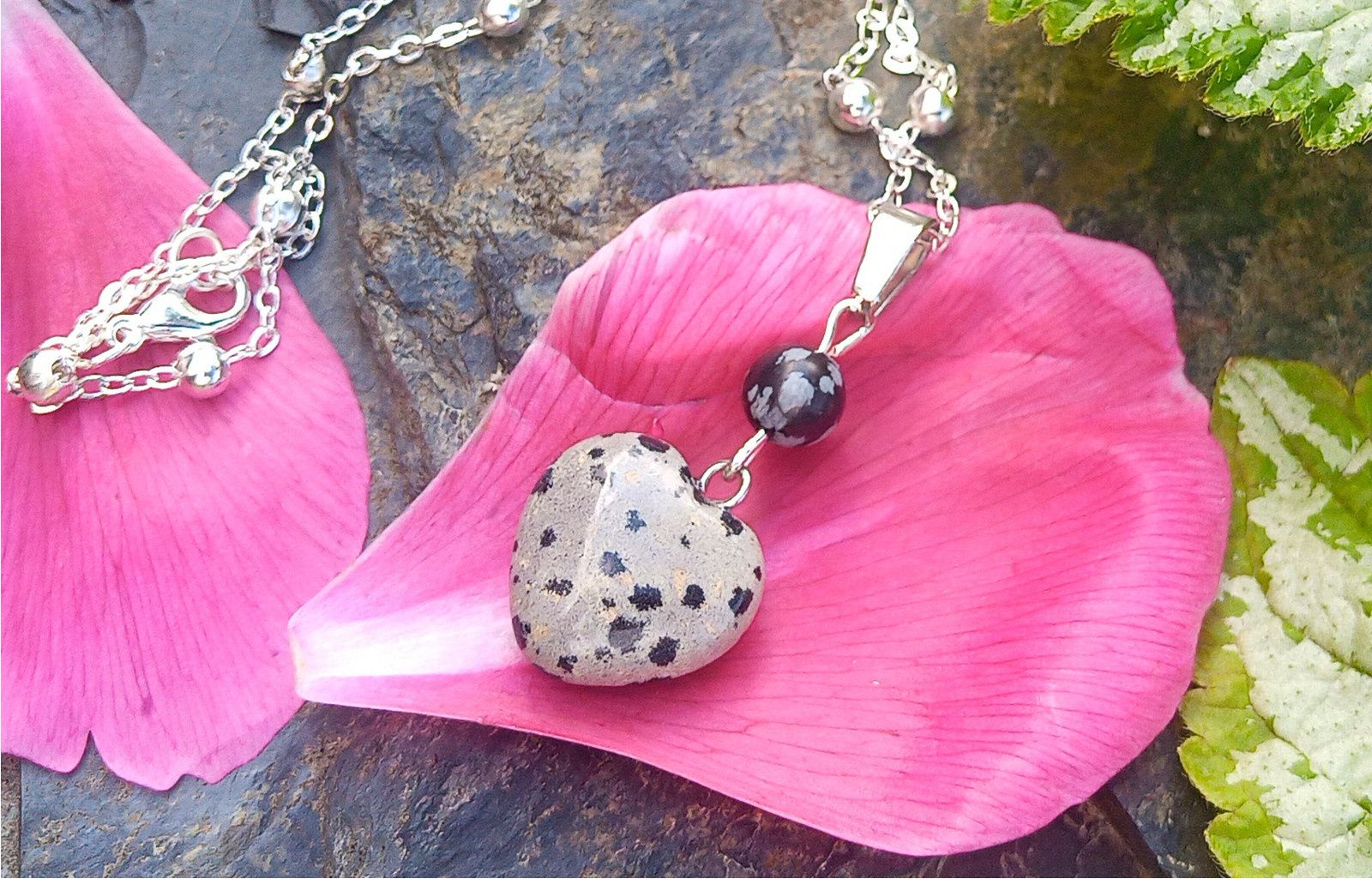 Dalmatinový jaspis a obsidián přívěsek na řetízku, minerálový náhrdelník