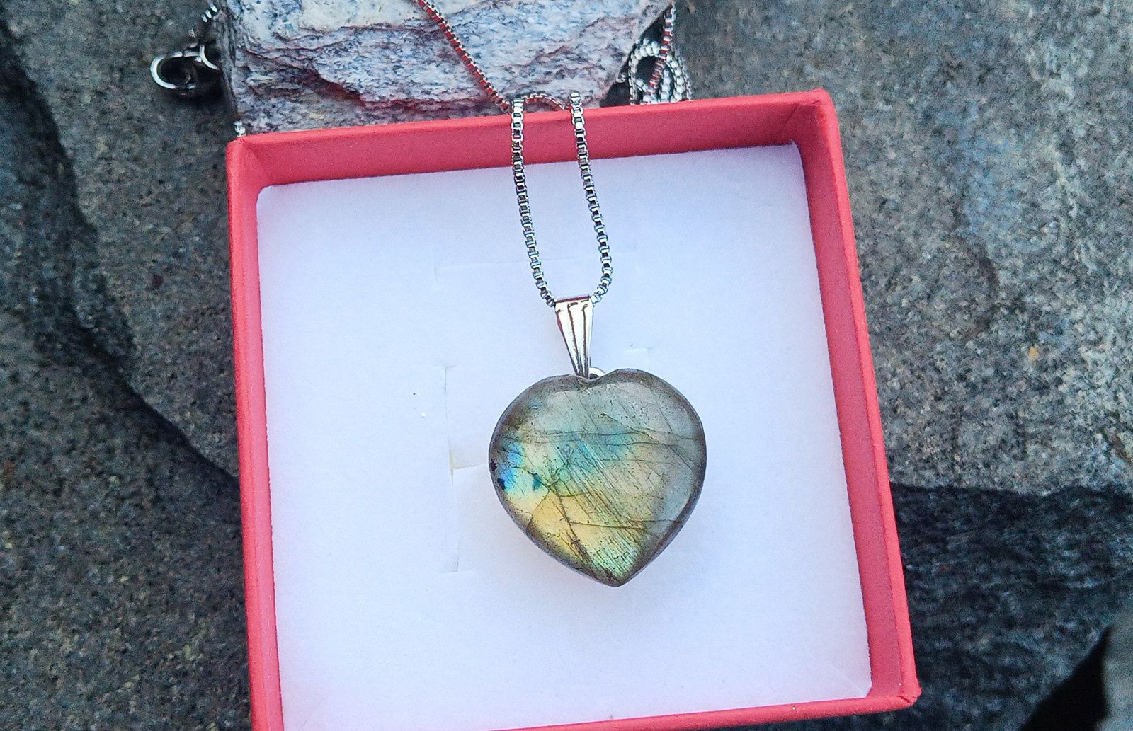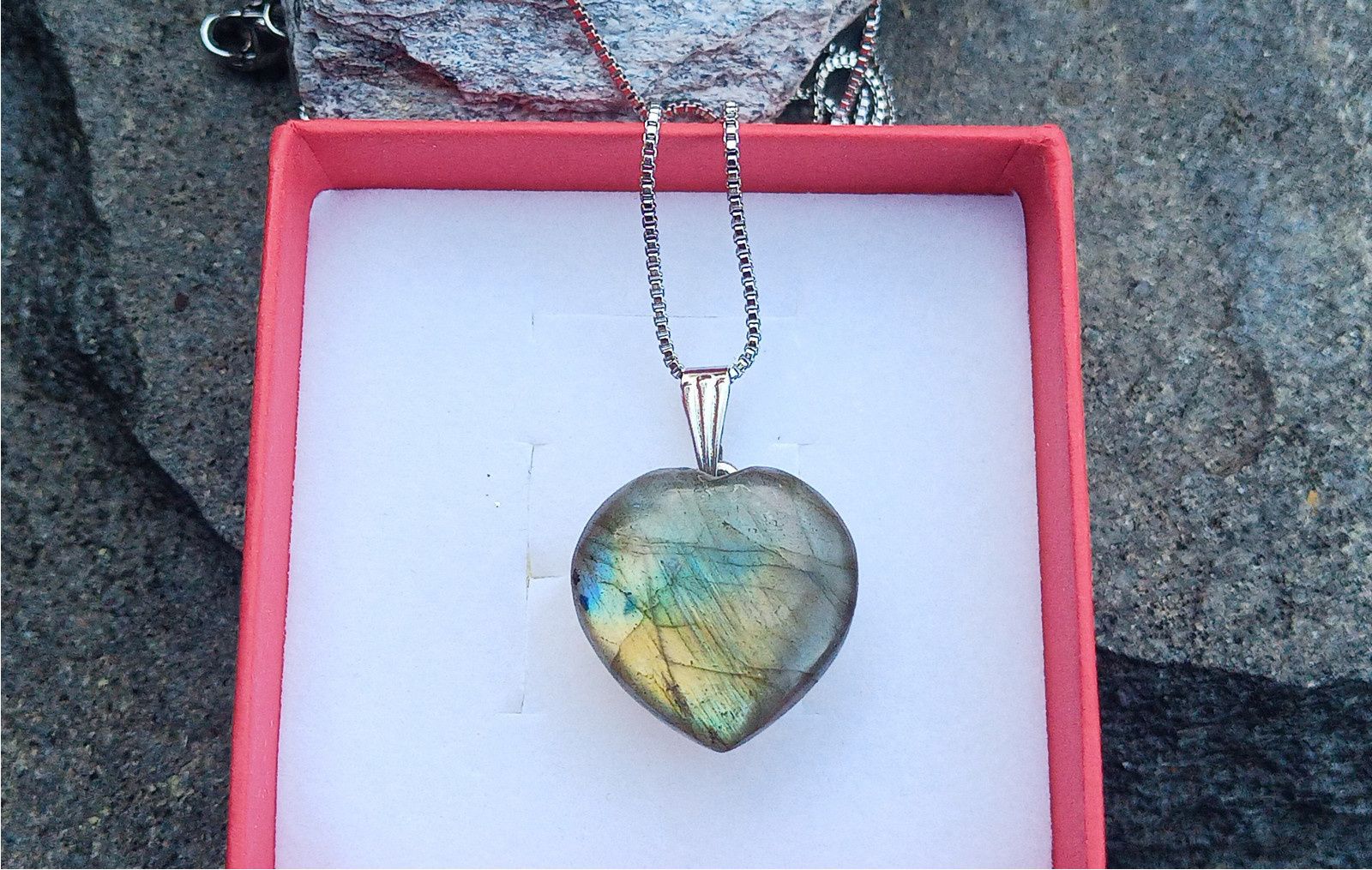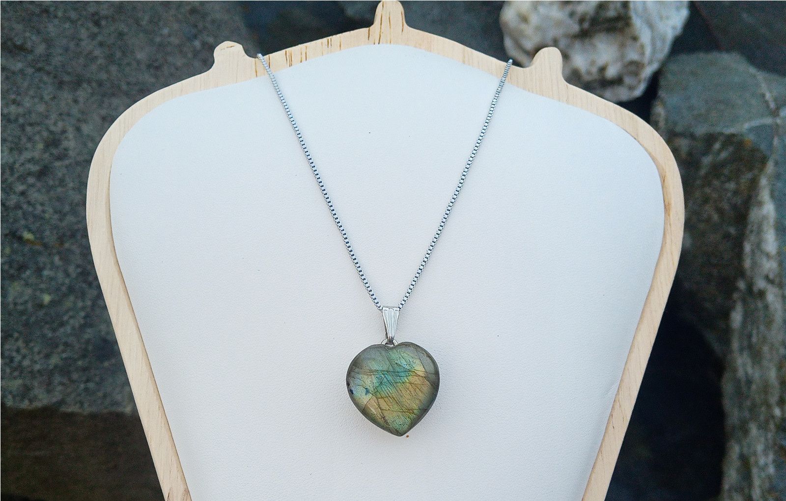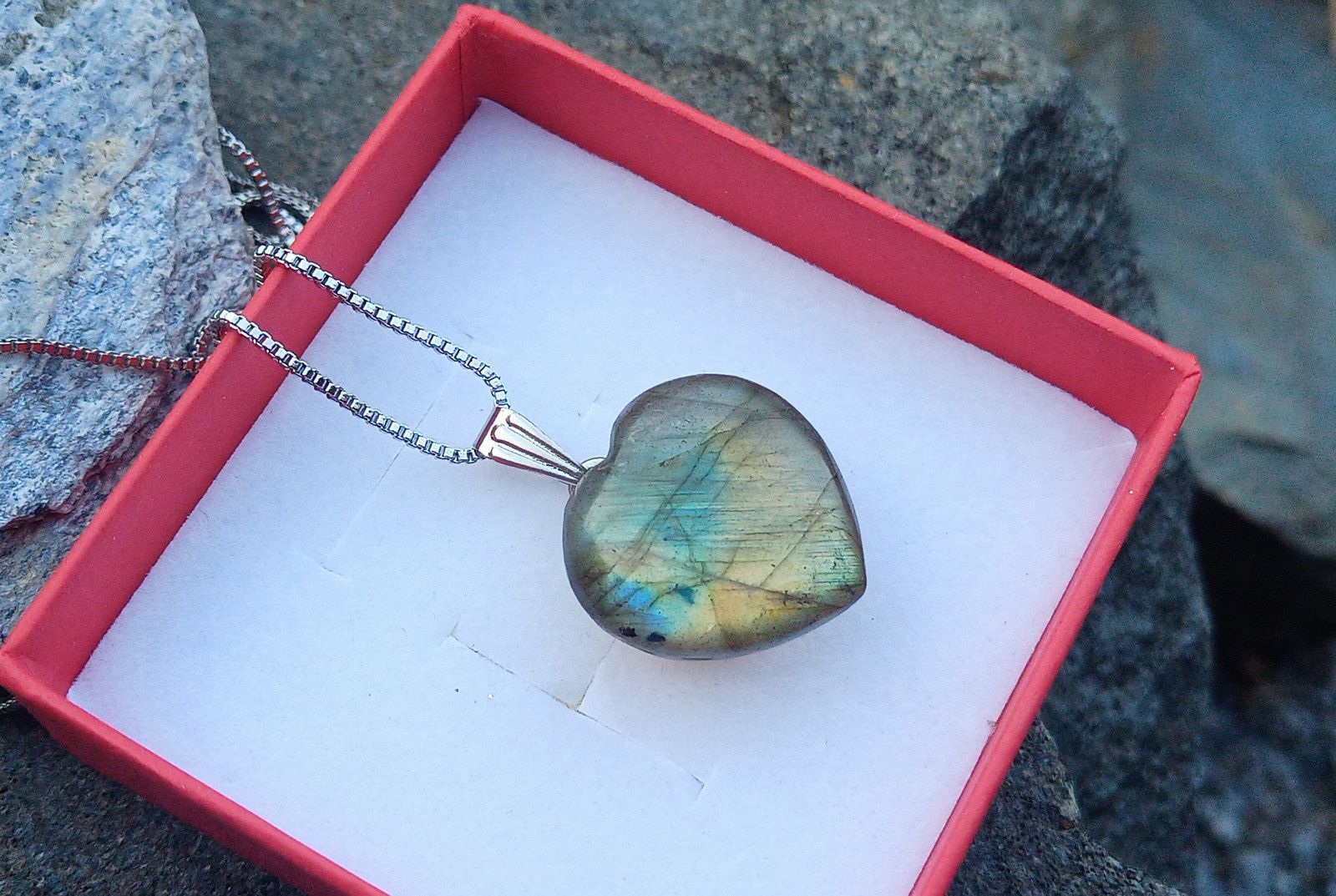 Labradorit top kvality srdce na řetízku z chirurgické oceli