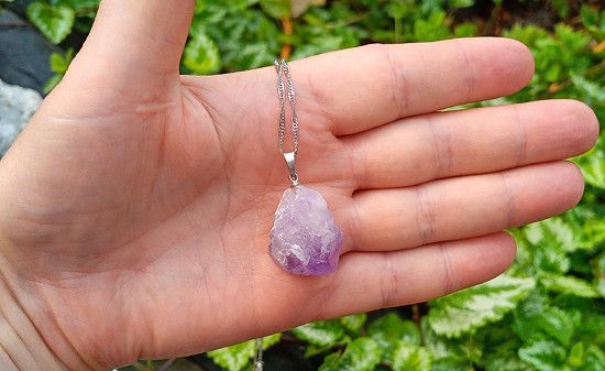 Surový velký ametyst přívěsek na řetízku, minerálový náhrdelník