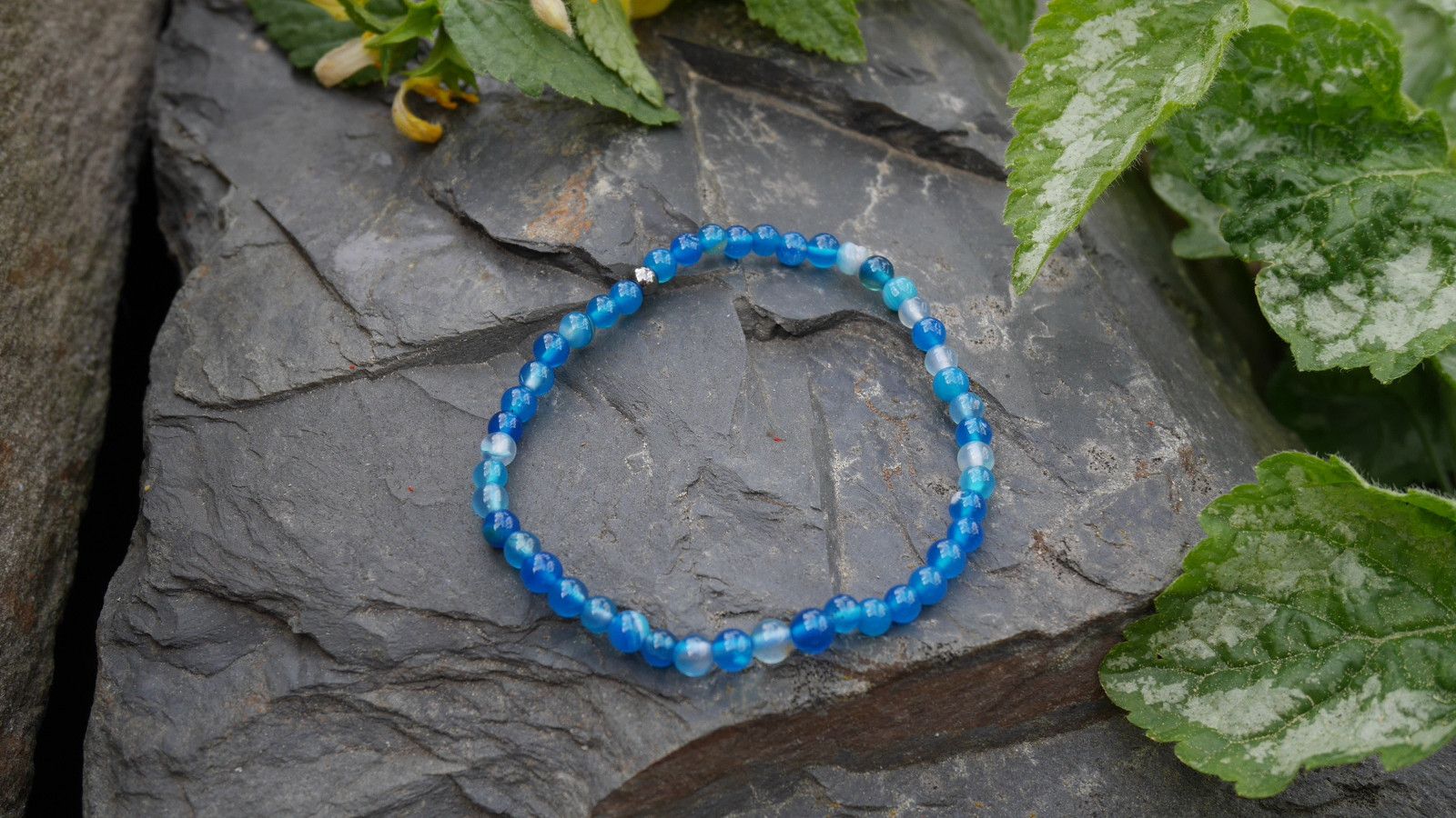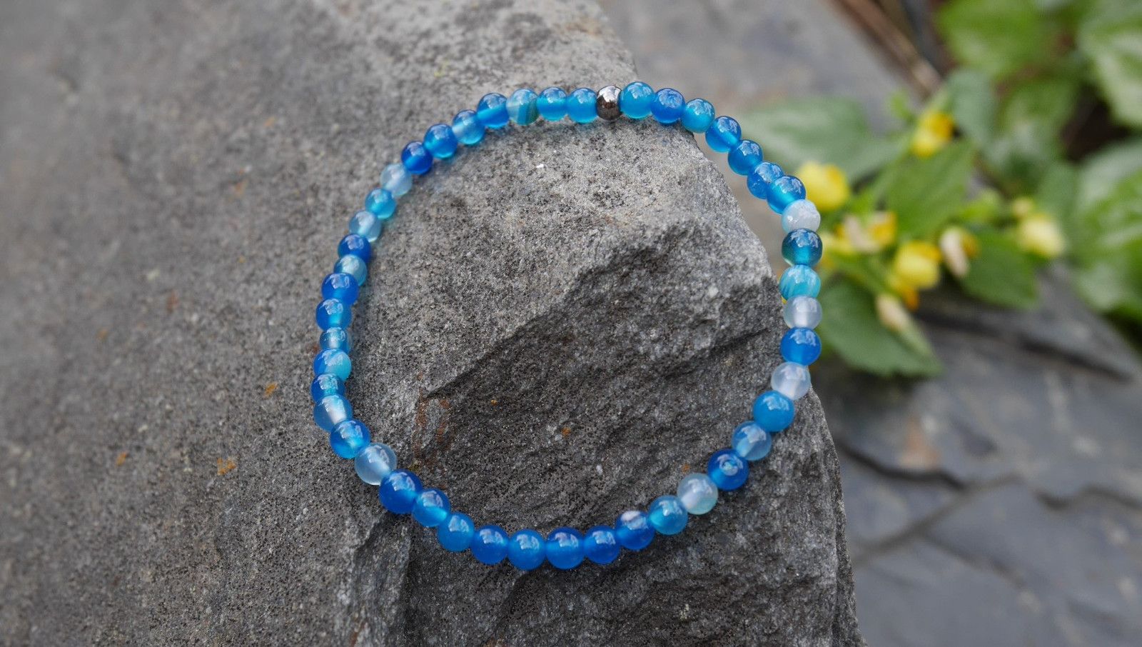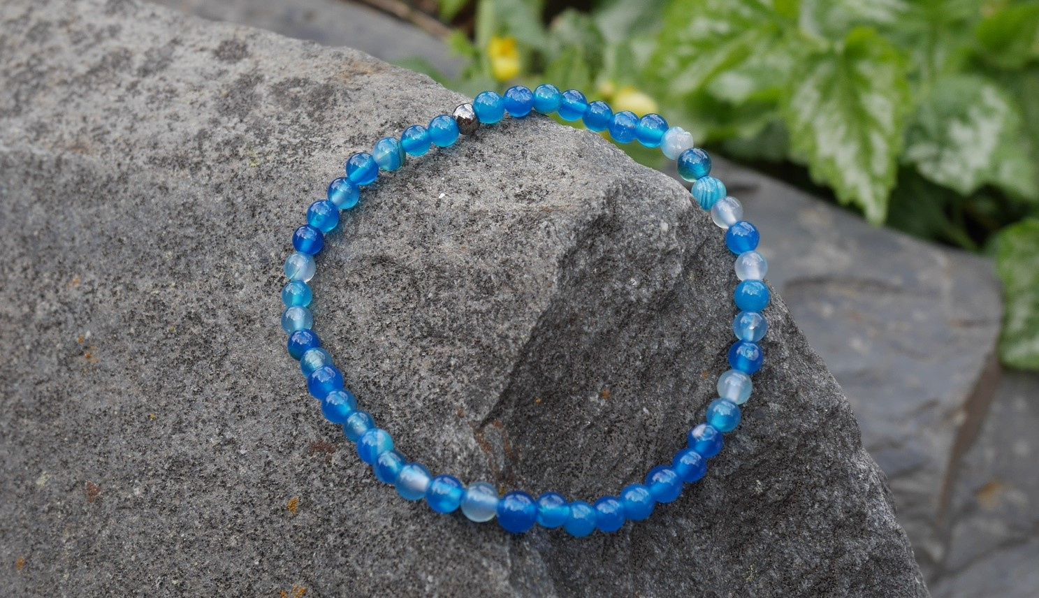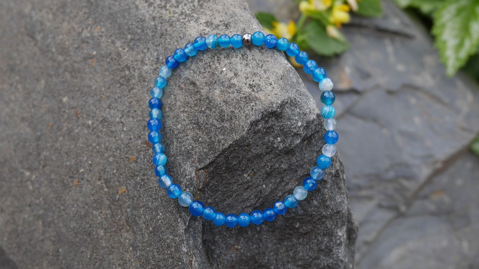 Náramek z korálků pruhovaného modrého achátu o průměru 4 mm na kvalitním pružném návleku.