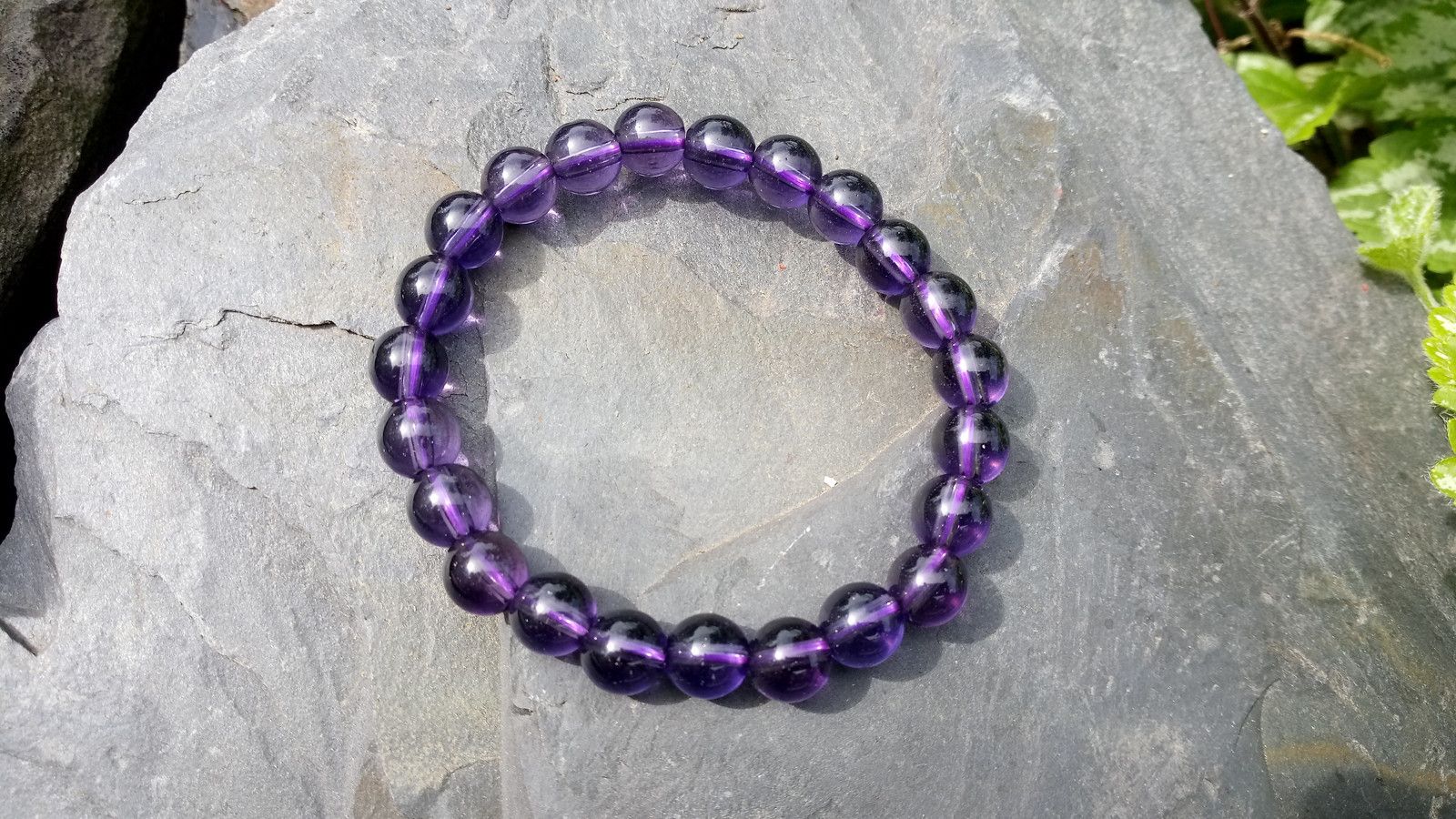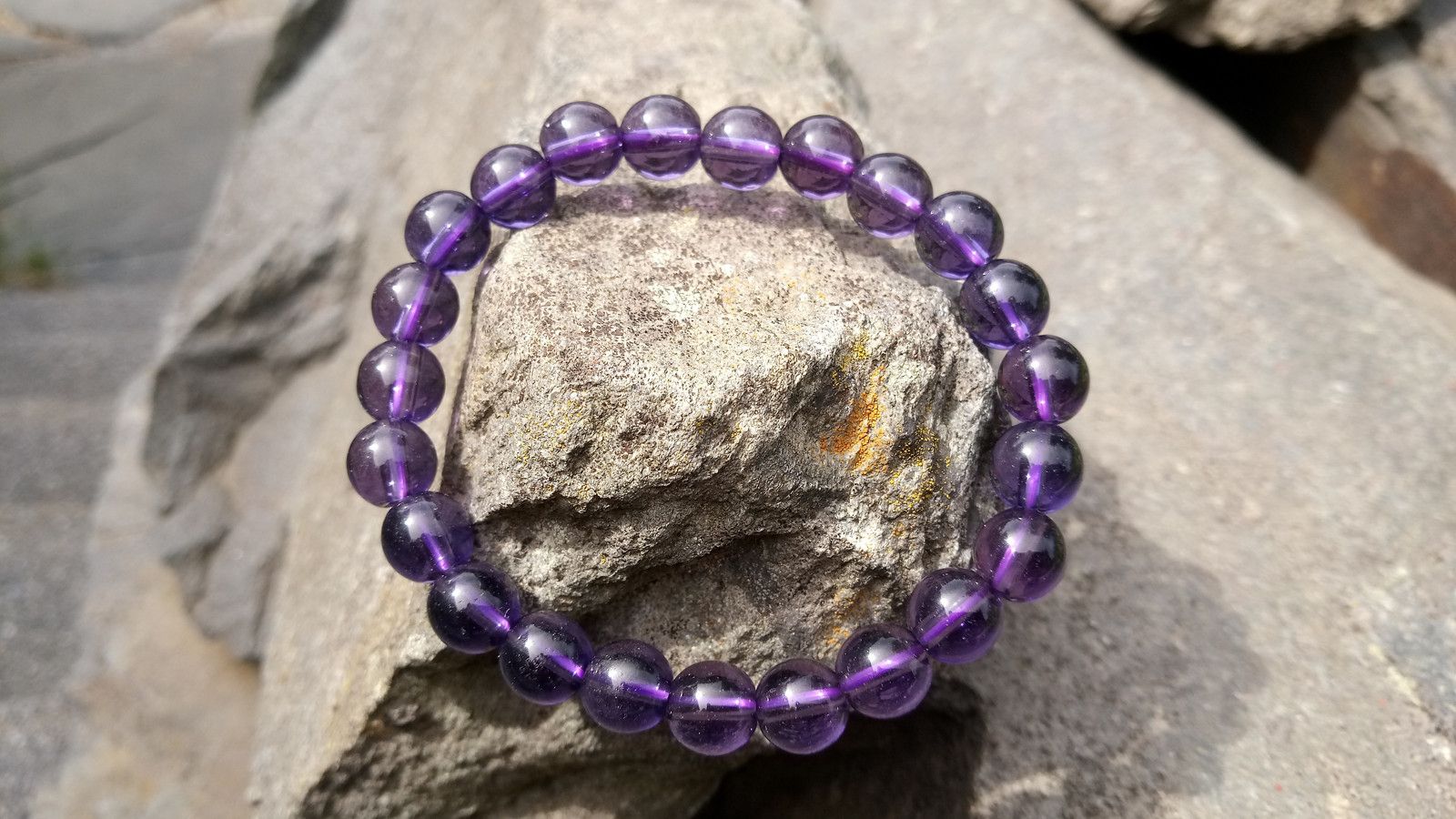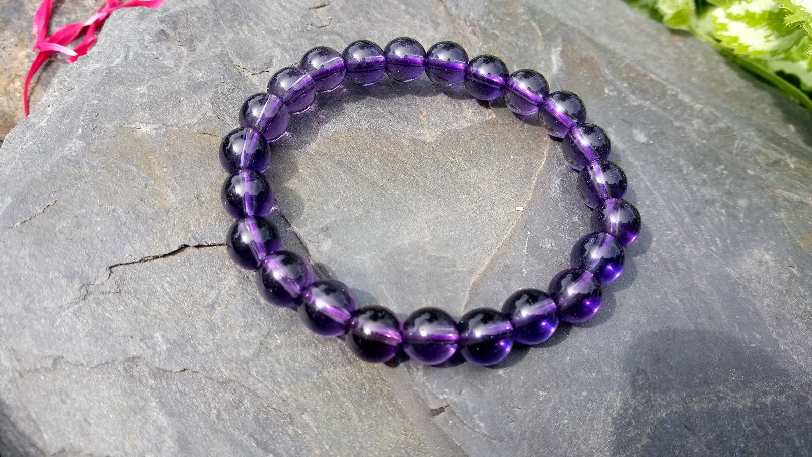 Náramek z 8 mm kuliček ametystu na pružné kvalitní silikonové gumičce. Kámen je v nádherné fialové barvě :)