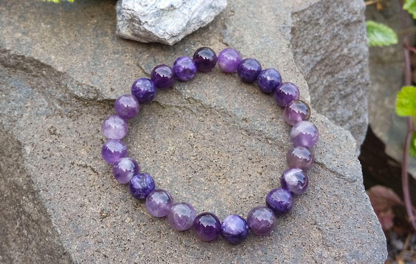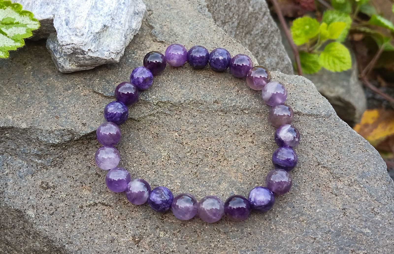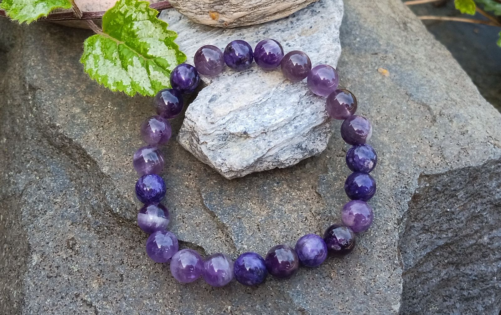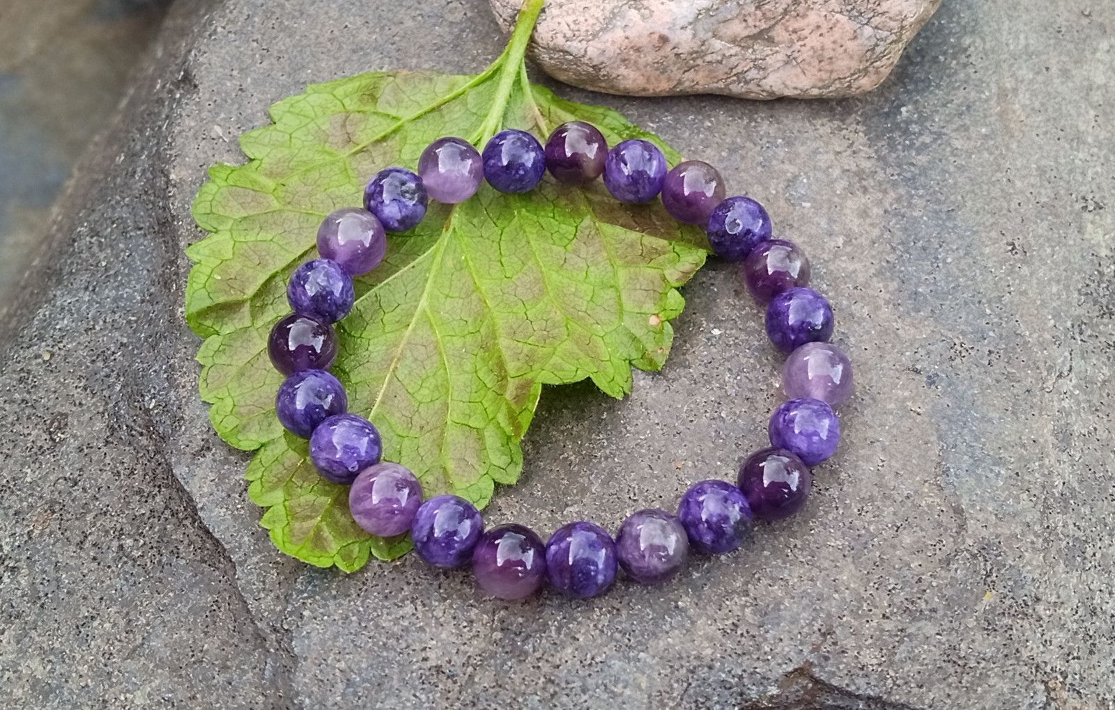Nádherně zbarvený čaroit v TOP kvalitě o průměru 8 mm navlečený na kvalitní silikonovém pružence. Není dobarvený.