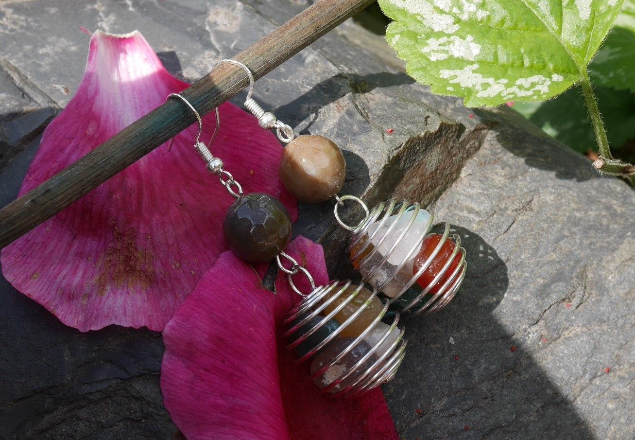 karneol, citrín, chalcedon, růženín, fluorit, šedý achát, tyrkys