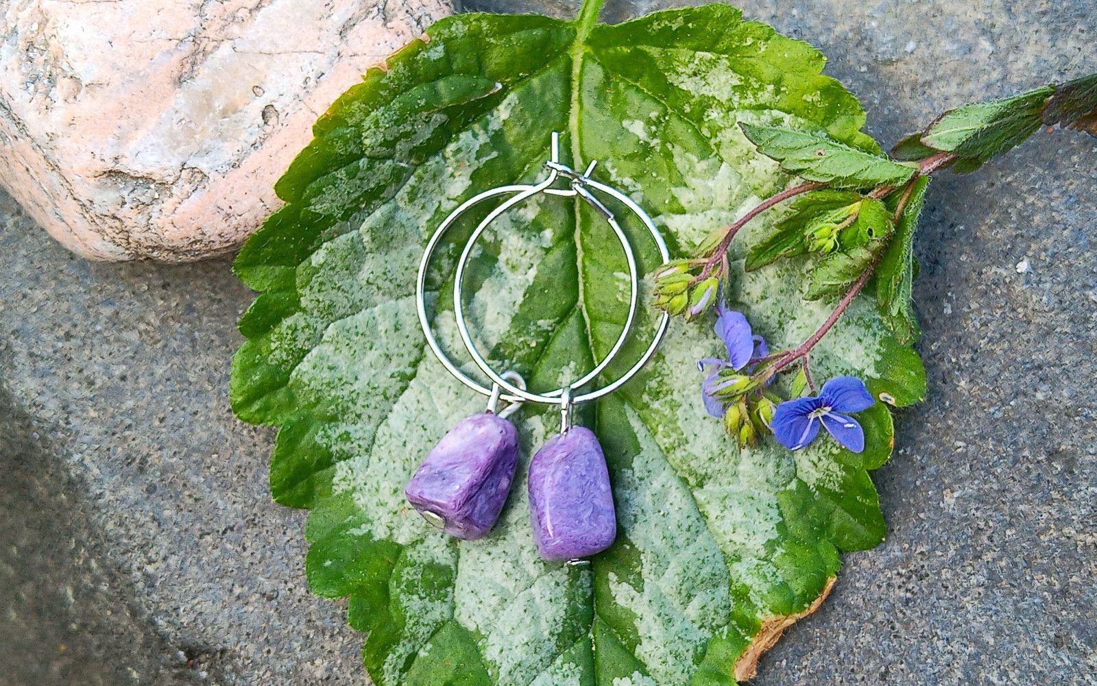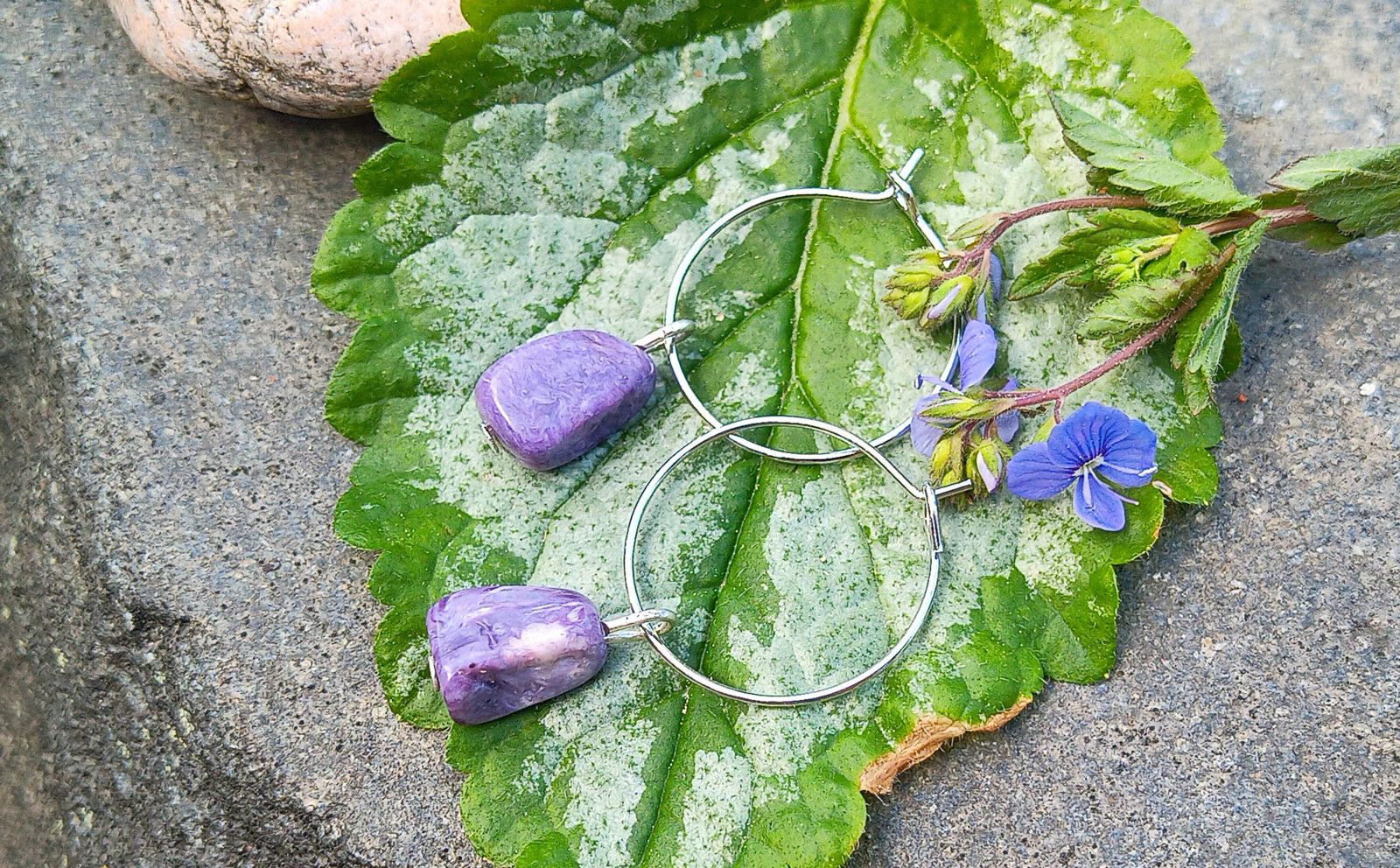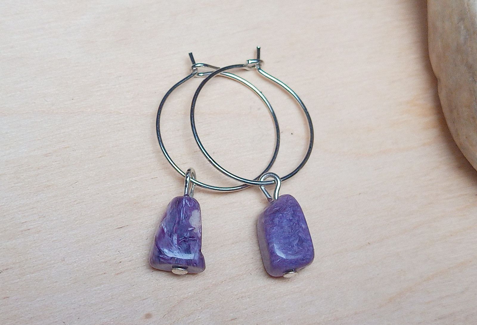Čaroit drahokamové náušnice na chirugické oceli, kruhy