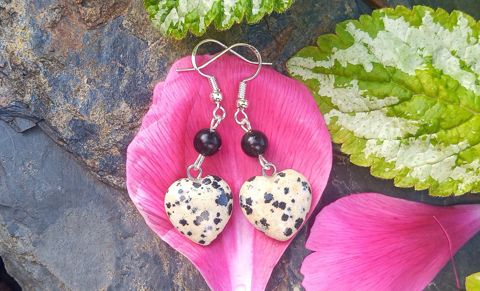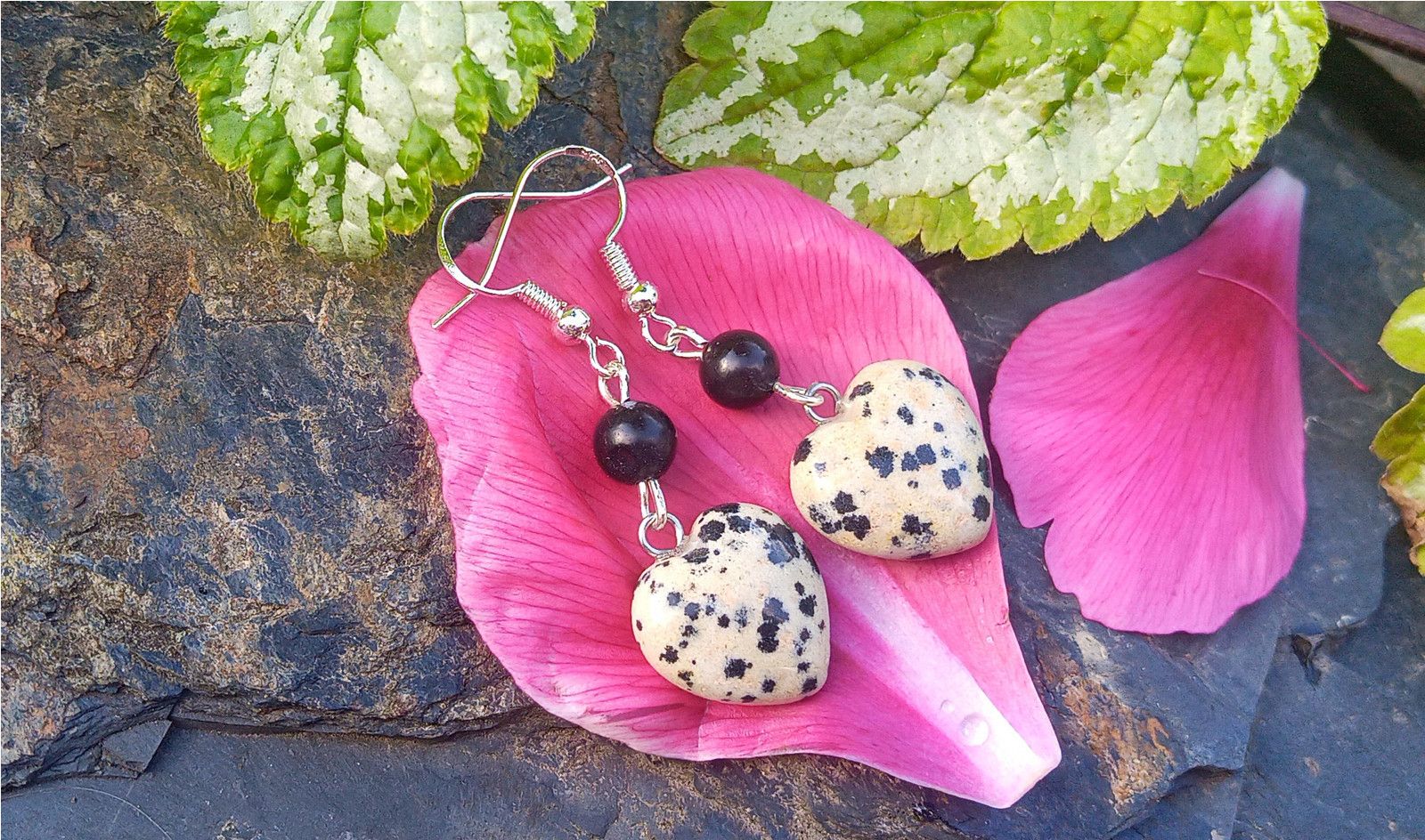 Dalmatinový jaspis a obsidián minerálové romantické náušnice