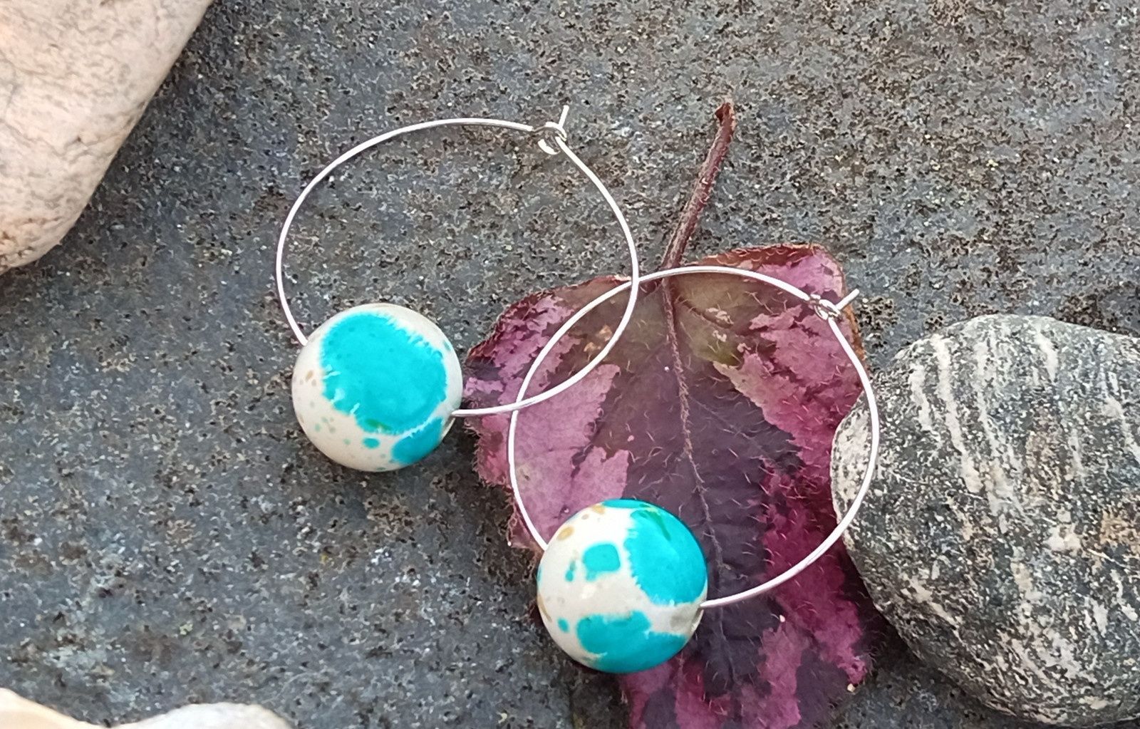 Velké korálky z barevného howlitu o průměru 15 mm na kruzích o průměru 35 mm z chirurgické oceli - hypoalergenní, vhodné i pro alergiky. Elegantní náušnice pro každou příležitost :) Howlit má nádhernou nebesky modrou barvu kombinovanou s bílou a okrovou.