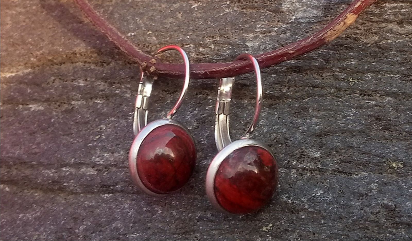 Tmavě červený krásně zbarvený jaspis o průměru 10 mm na zavíracím zapínání z chirurgické oceli - hypoalergenní, vhodné i pro alergiky.