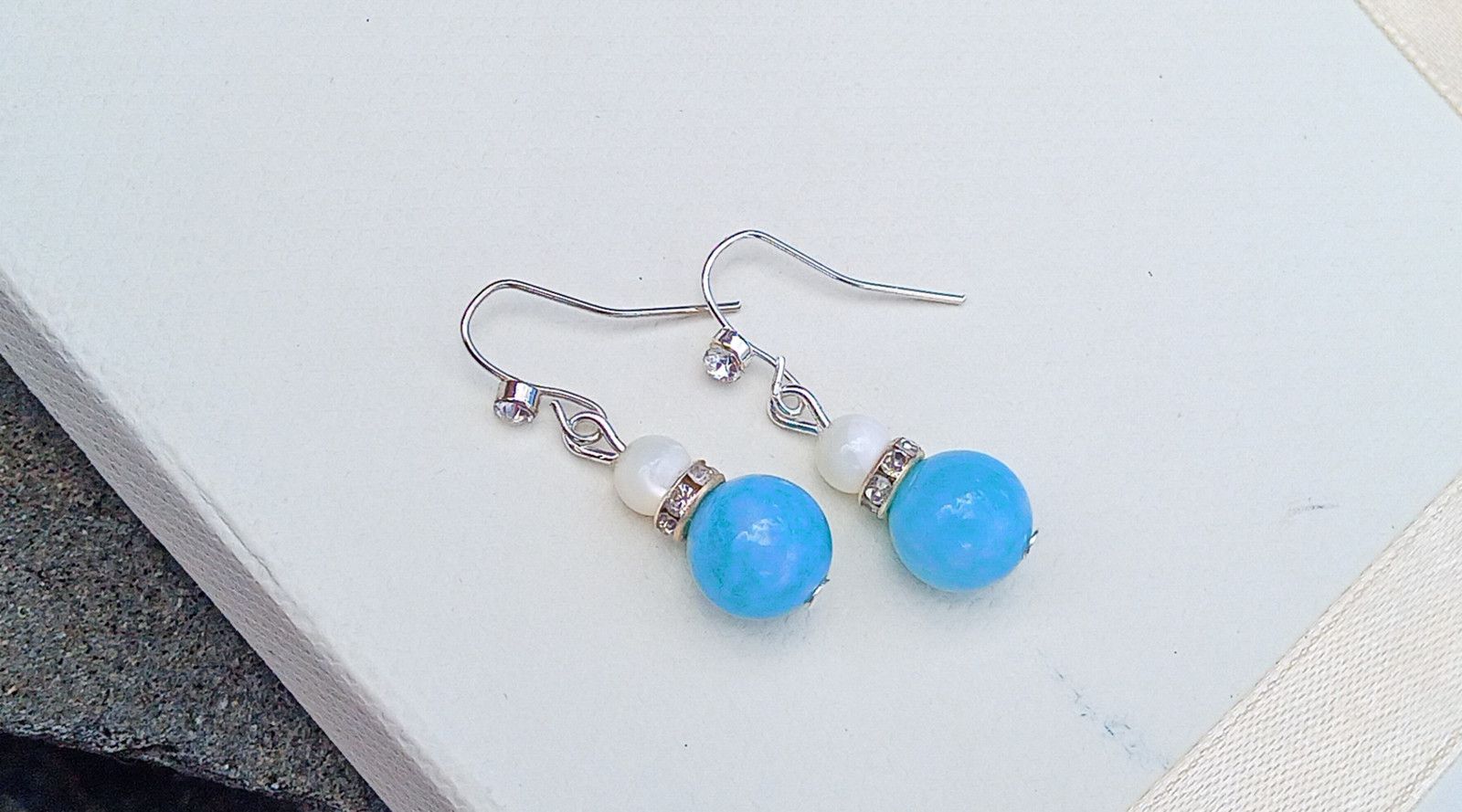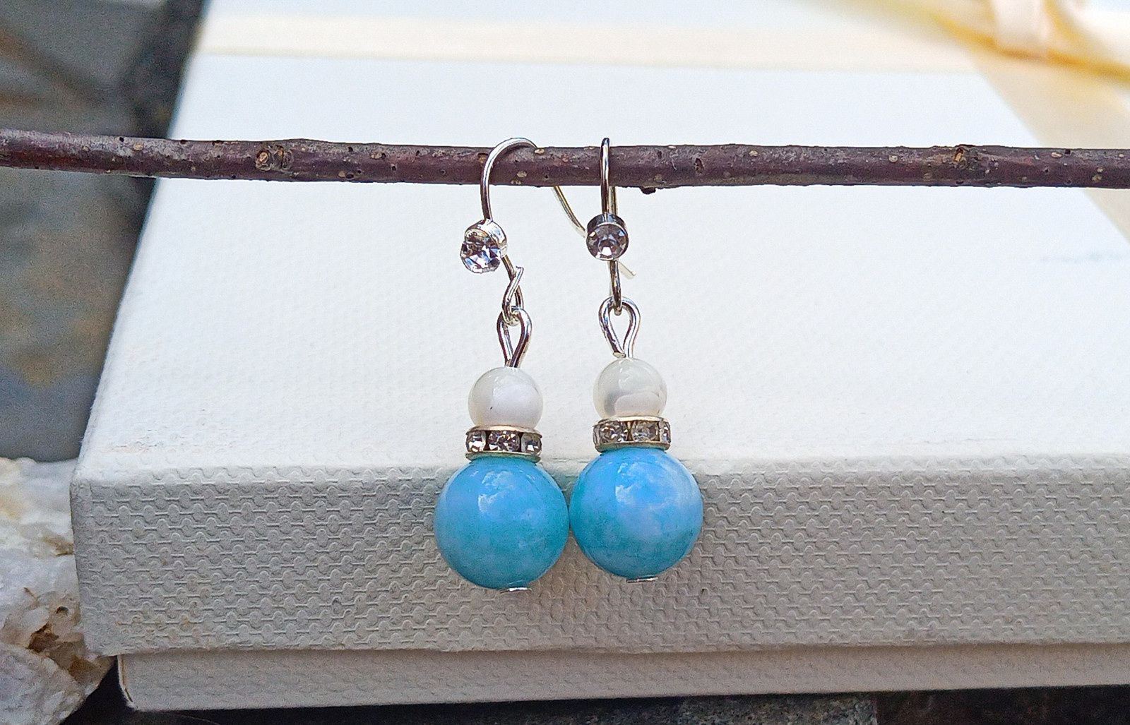 Prvotřídní larimar a přírodní perleť náušnice na chirurgické oceli