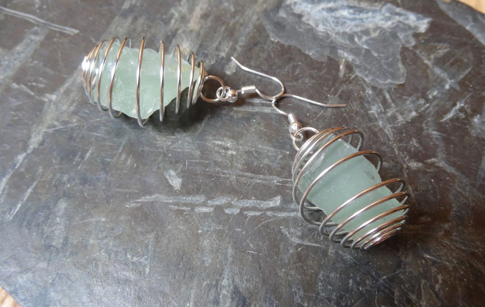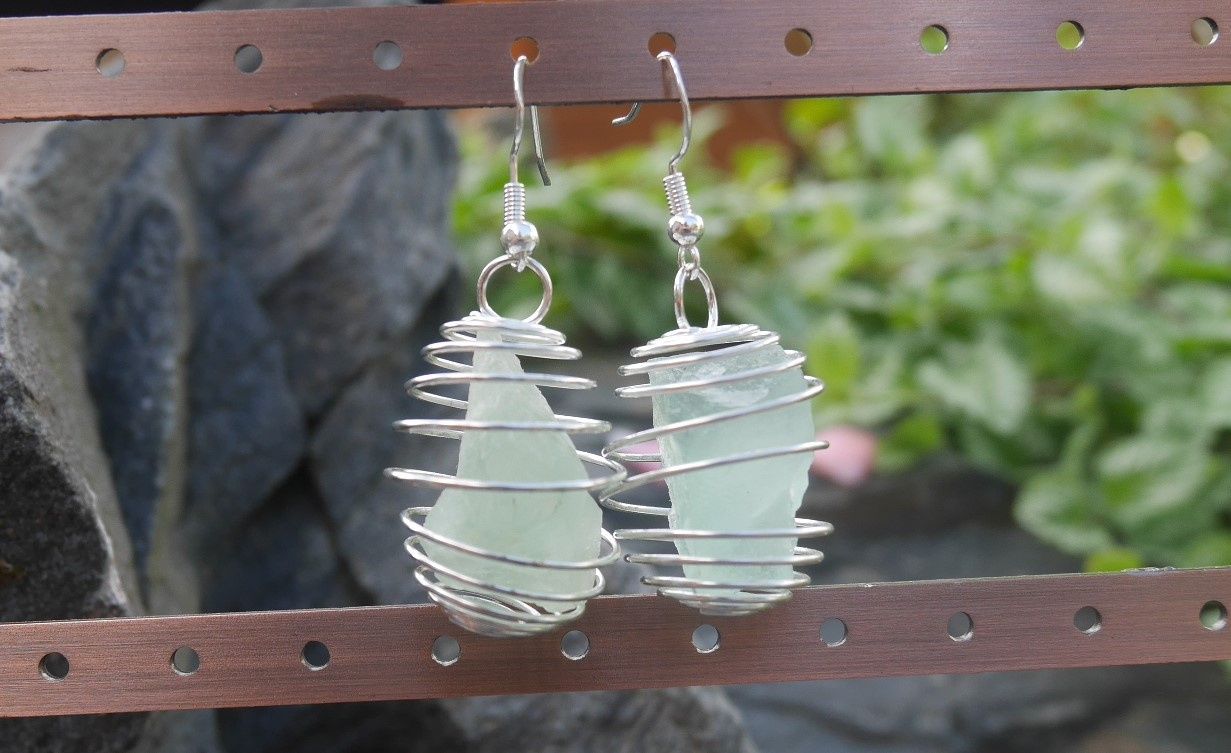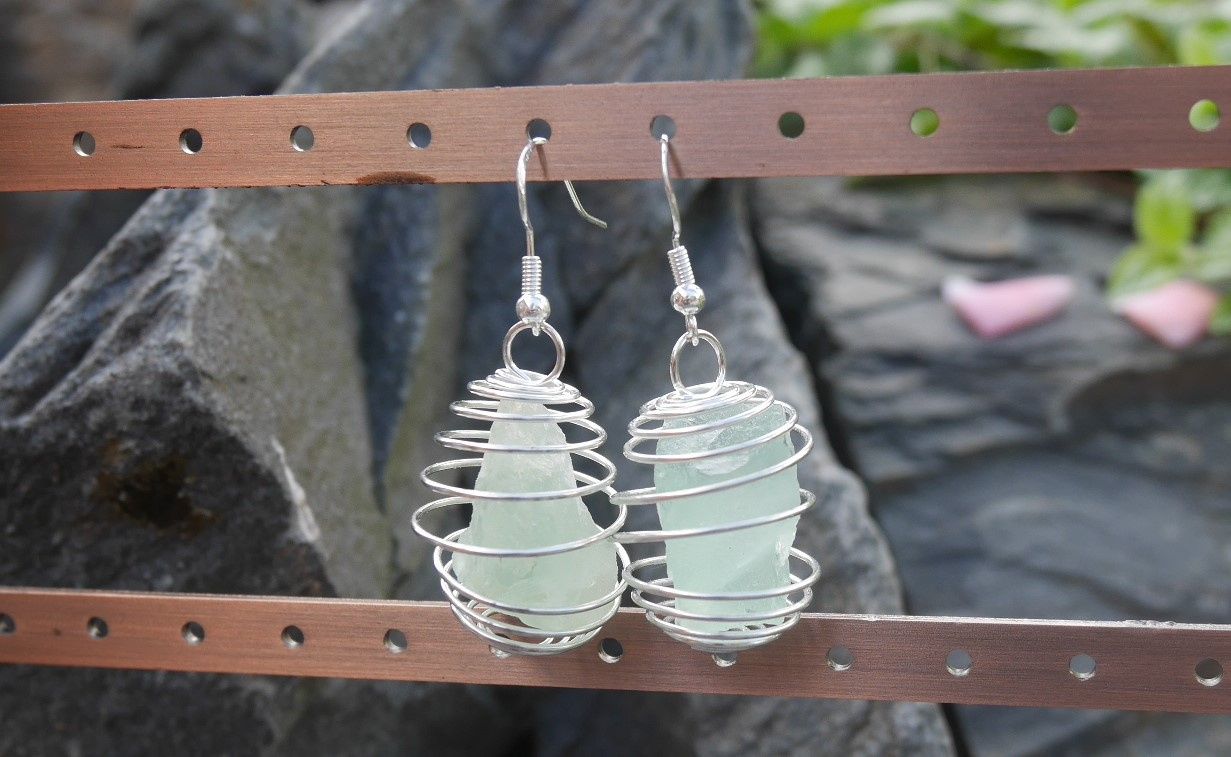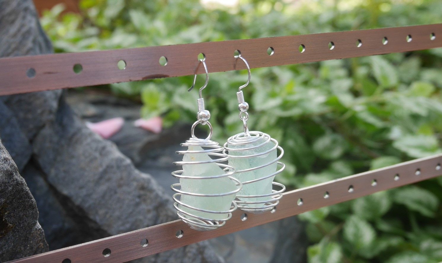 Přírodní surový kámen FLUORIT v ocelovém "kabátku" na háčcích z chirurgické oceli - hypoalergenní, vhodné i pro alergiky. Každý kámen je originál. Délka náušnic cca 5 cm. Váha jednoho kamene cca 9 g, velikost 25x20x15 mm.