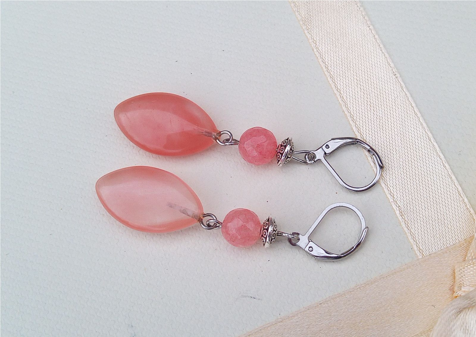 Náušnice jsou vyrobené z nádherně zbarvených oválku velkých 22x13 mm třešňového křemene zavěšených pod broušenými kuličkami 8 mm stejného minerálu na zavíracích háčcích z chirurgické oceli - hypoalergenní kov, vhodný i pro alergiky.