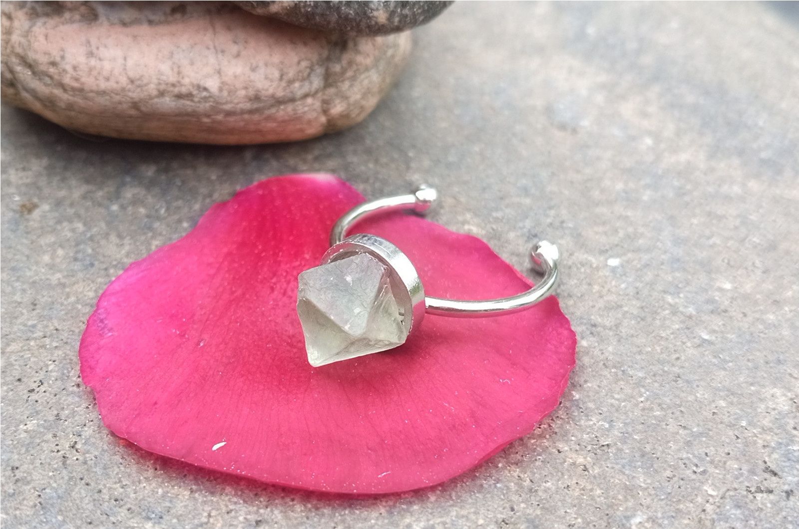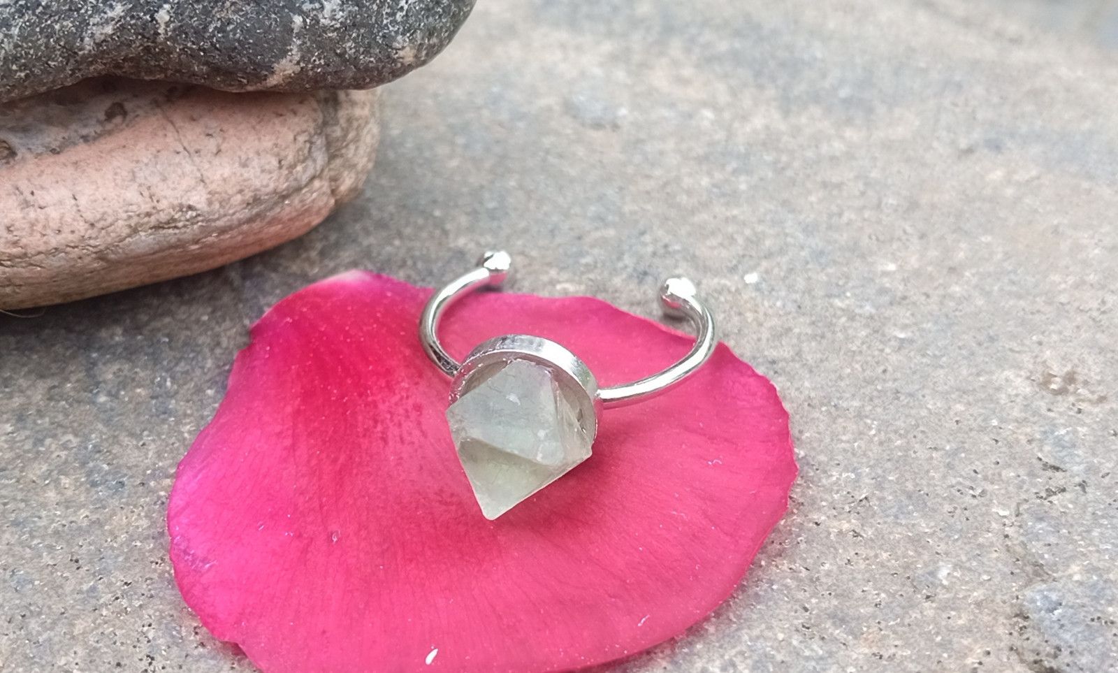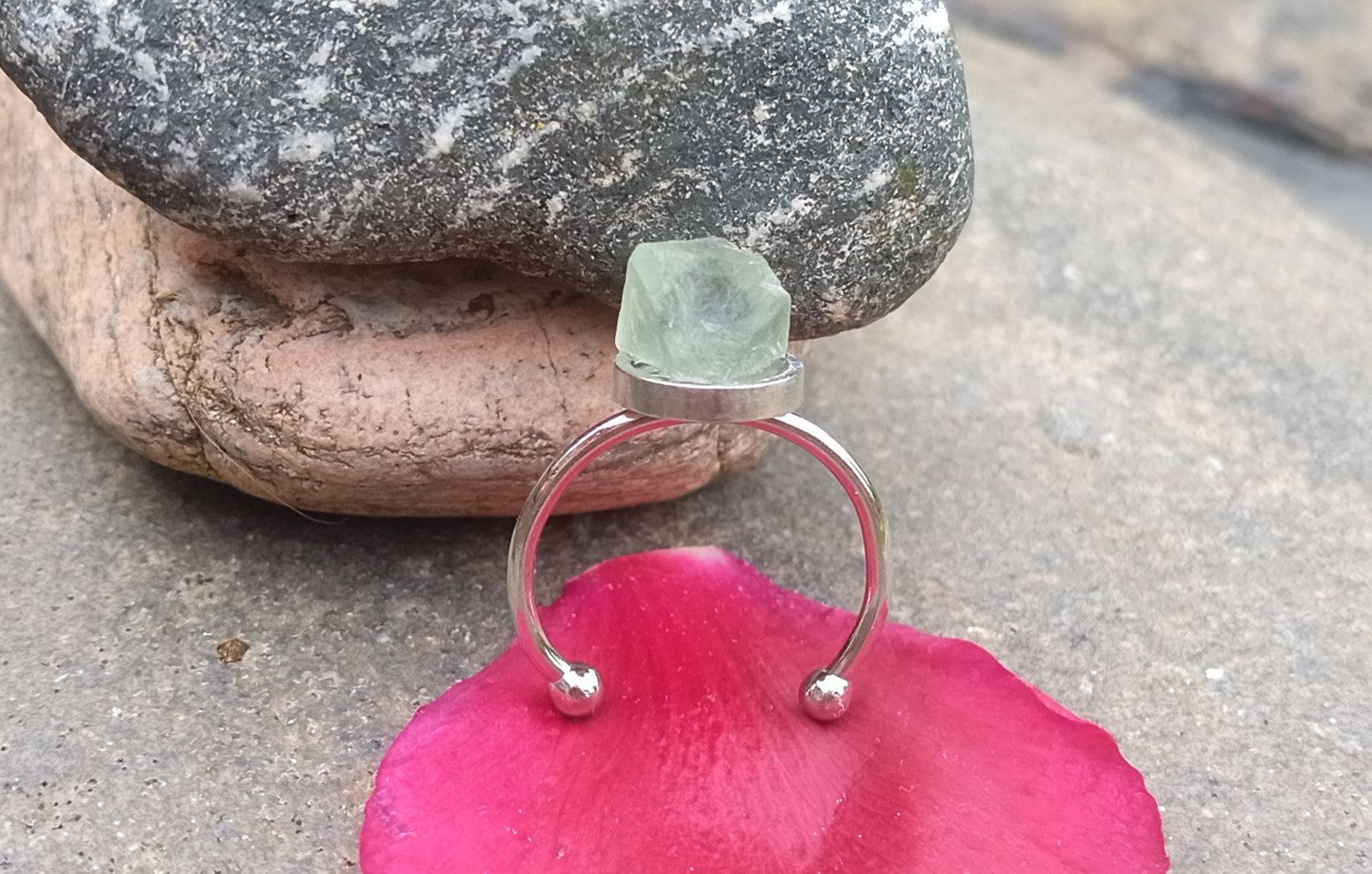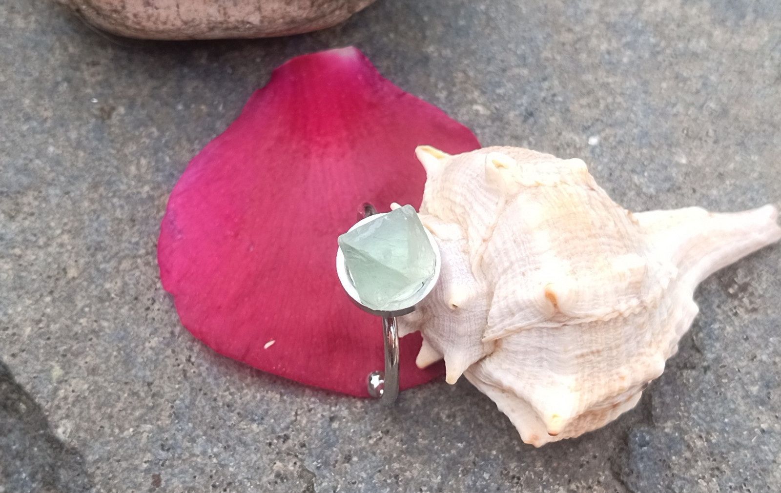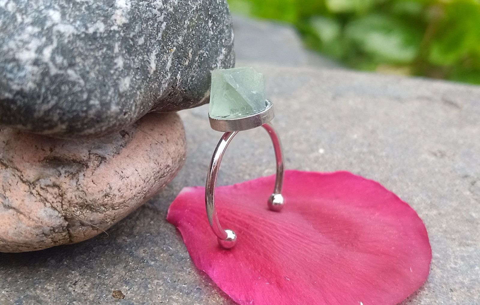 Nádherně vybarvený zelený surový částečně průsvitný fluorit vybroušený jako šestistěn a vsazený do kroužku v univerzální velikosti z chirurgické oceli - hypoalergenní, vhodný i pro alergiky. Kroužek můžete podle potřeby roztáhnout či naopak přesně na prst, který chcete prstýnkem zdobit.