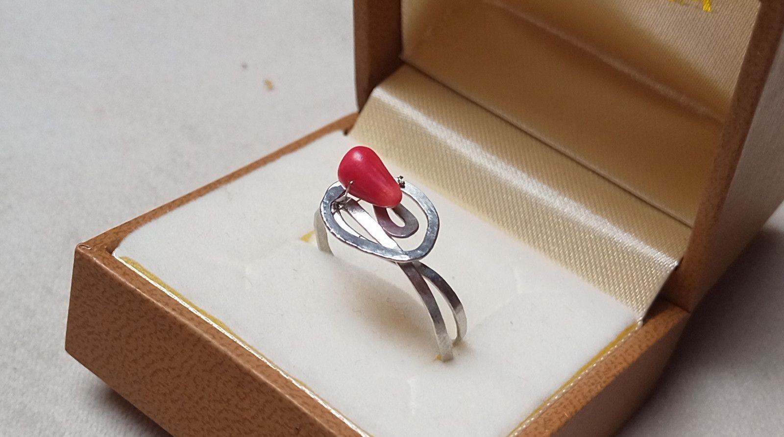 Červený korál v kovaném prstýnku z chirurgické oceli