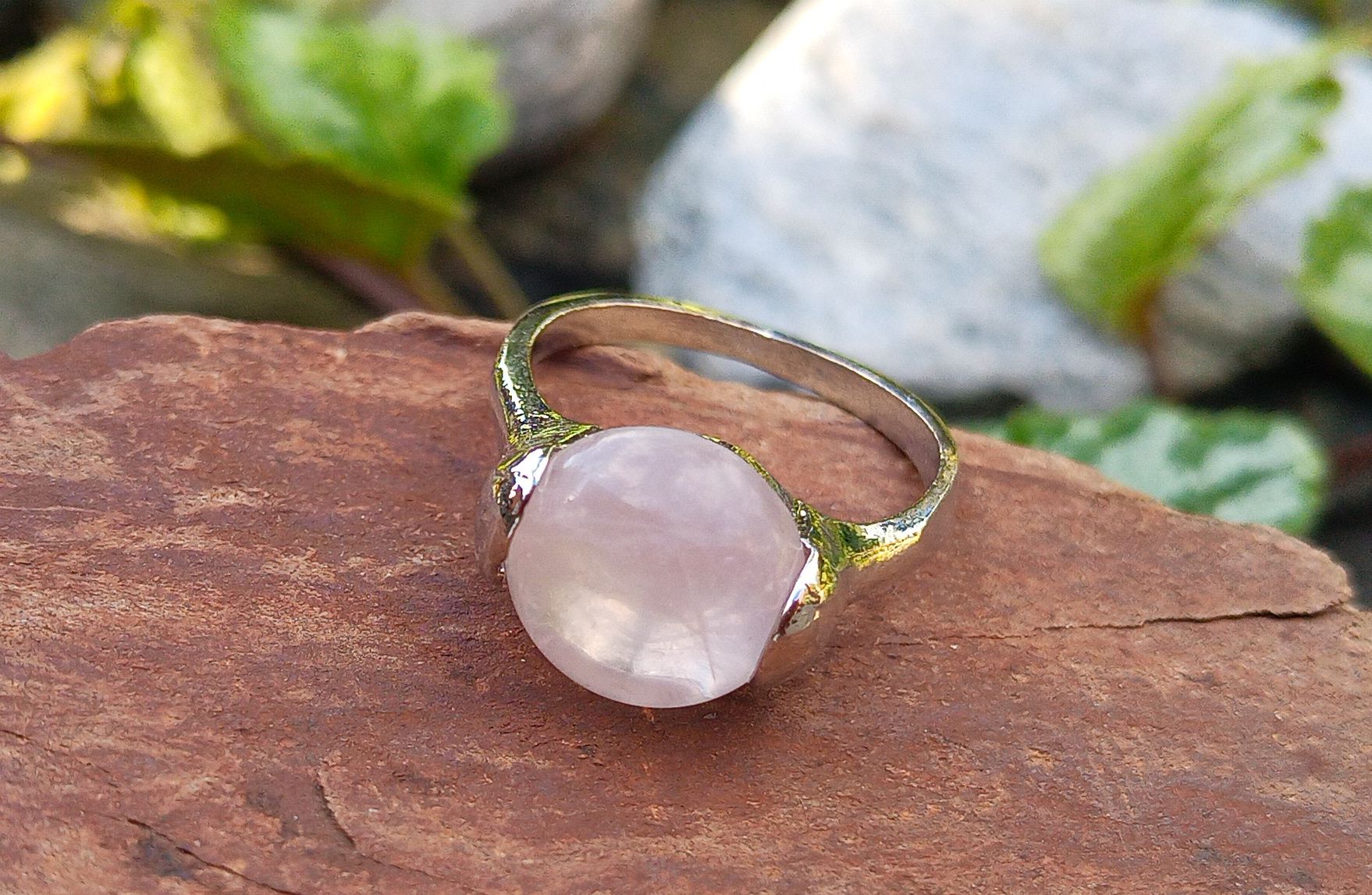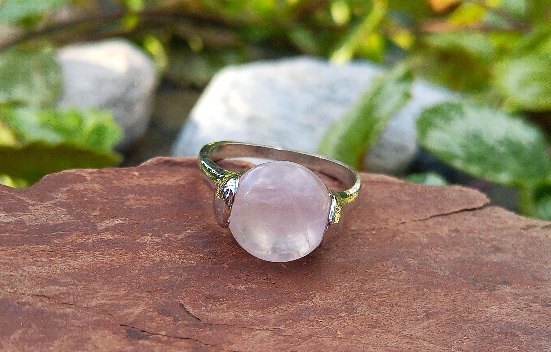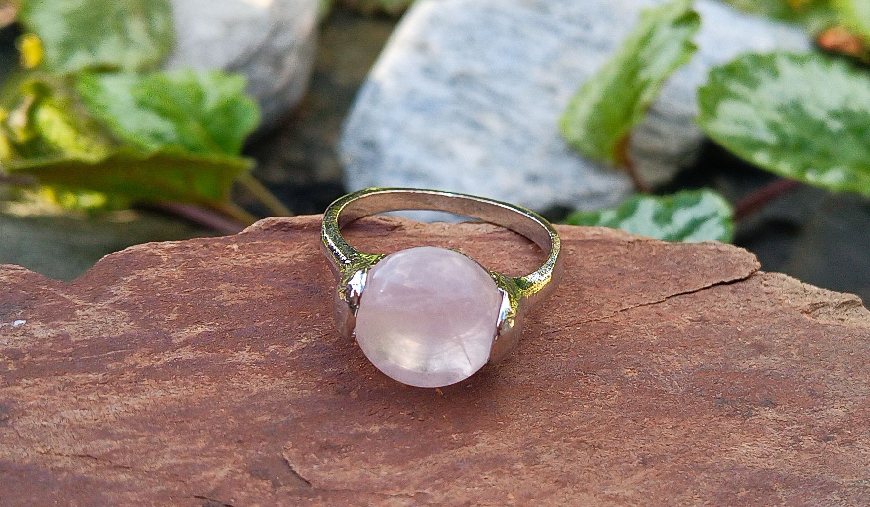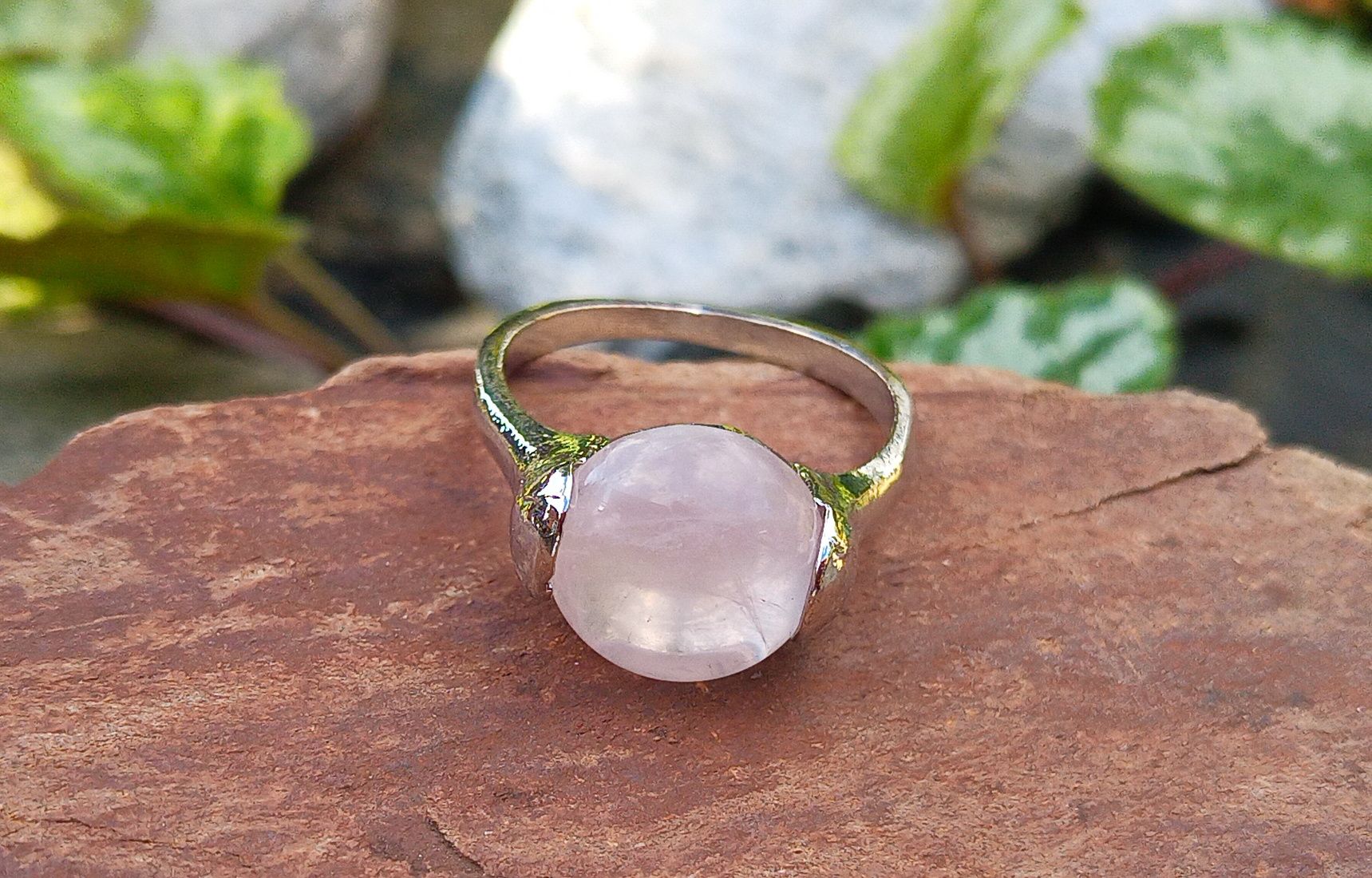 Minerálový postříbřený prstýnek s vloženým růženínem o průměru 13 mm. Prstýnek je elegantní, romantický, vhodný jako dárek i jako zásnubní.