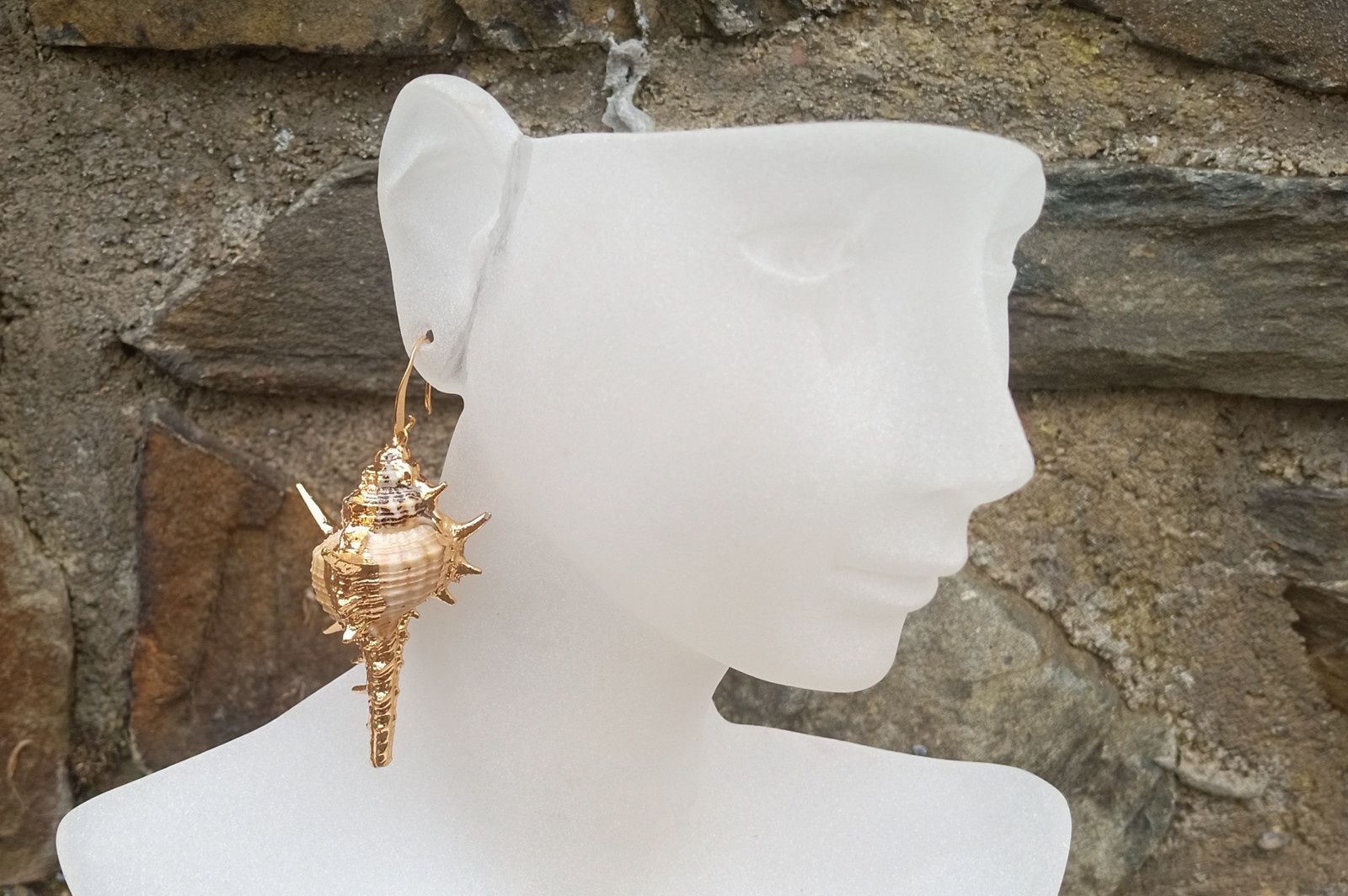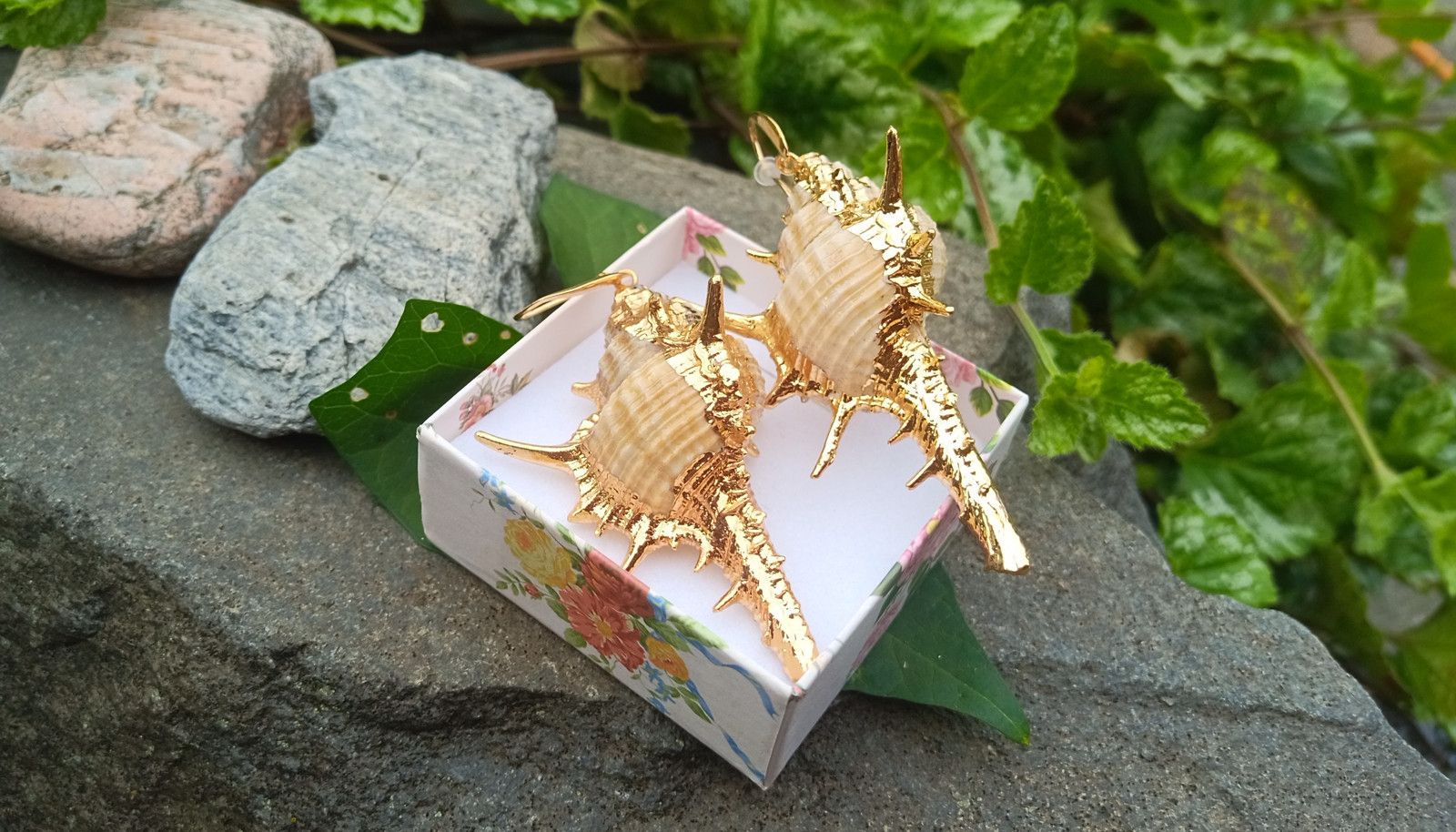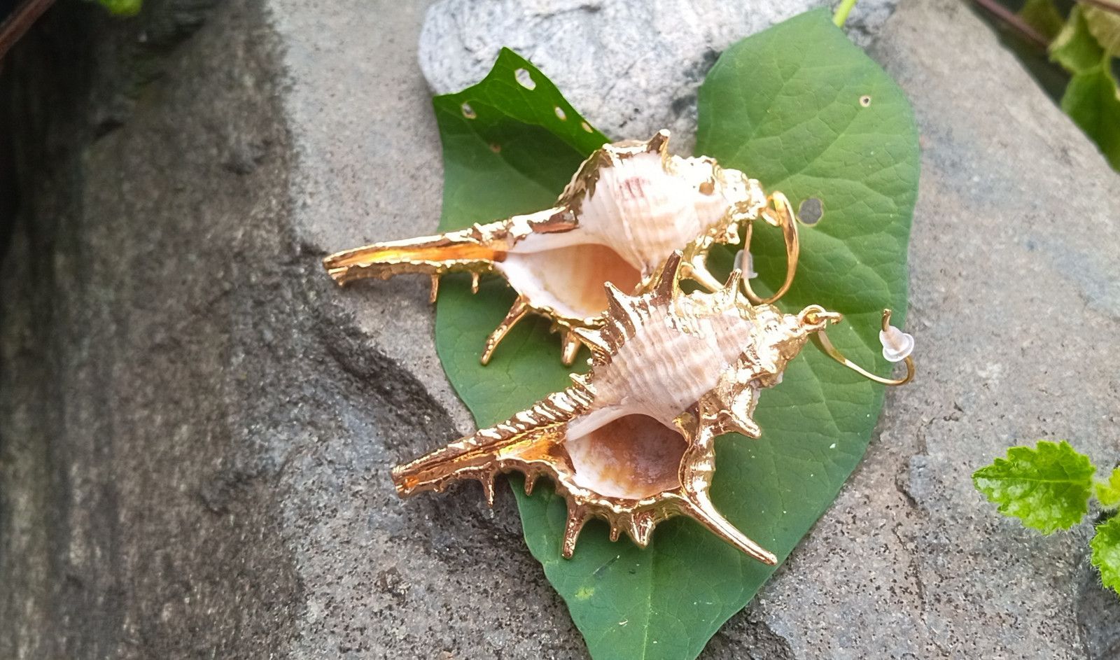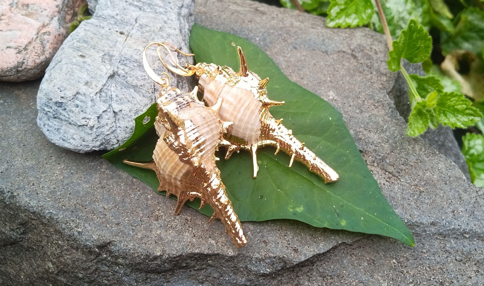 Béžové vzácné mušle - lastury z Filipín se zlatým zdobením zavěšené na zesíléných pozlacených háčcích se silikonovými průsvitnými zarážkami. Šperk, který se vyrovná perlovým šperkům a s perlami dokonale ladí.