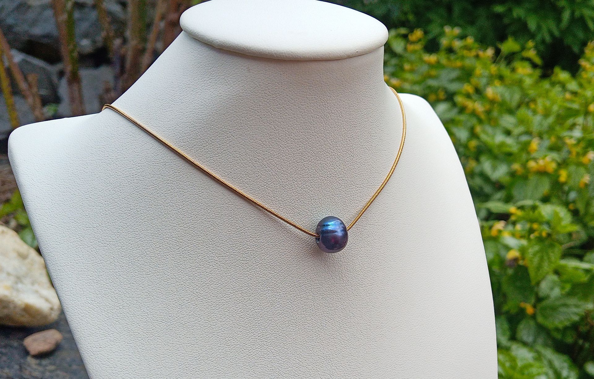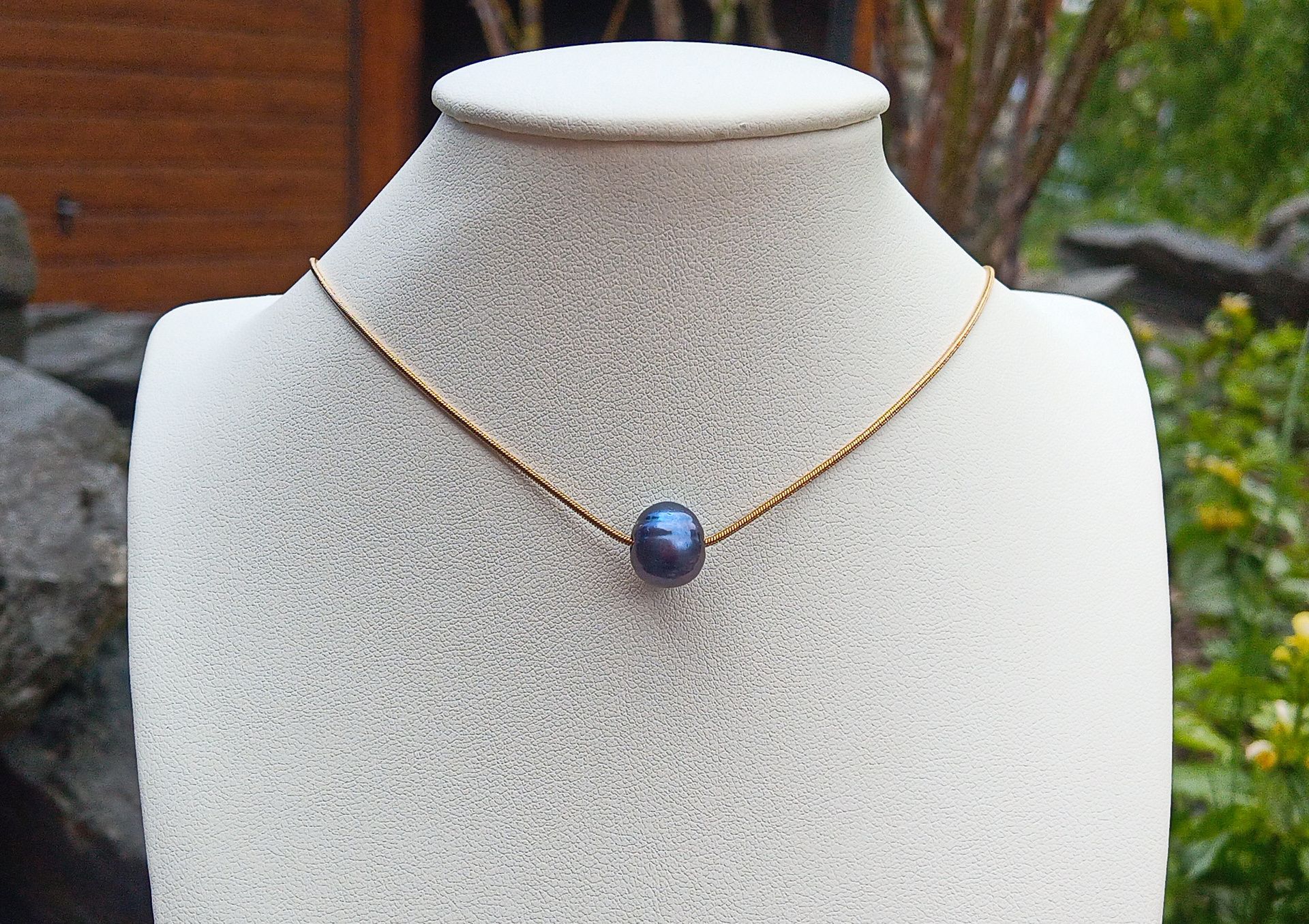 Jihomořská tmavá perla v řetízku z pozlacené chirurgické oceli, perlový náhrdelník