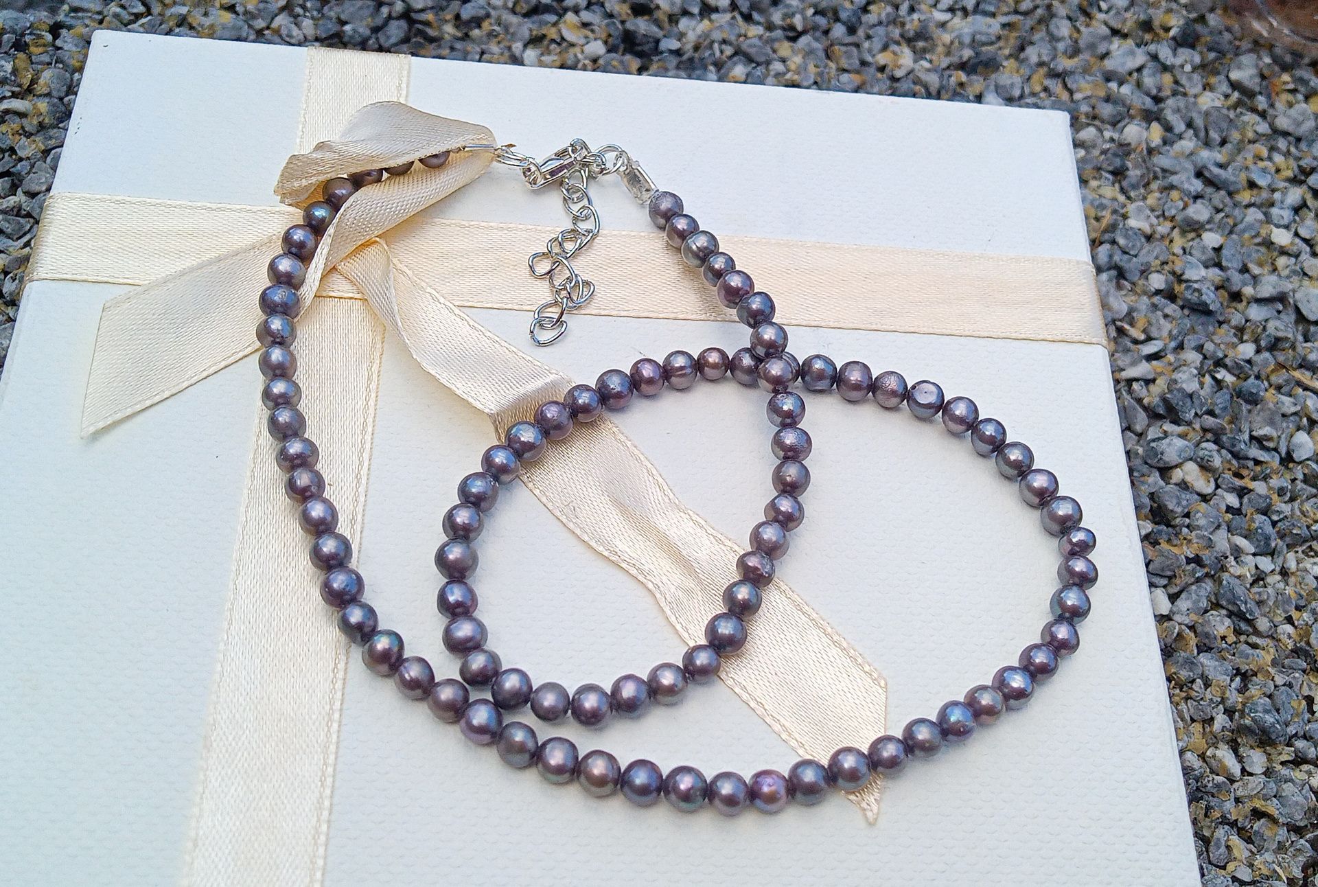 Perly vynikají dokonalým leskem s perleťovými duhovými odlesky. Perly jsou téměř dokonale kulaté, navlečené na hedvábí.