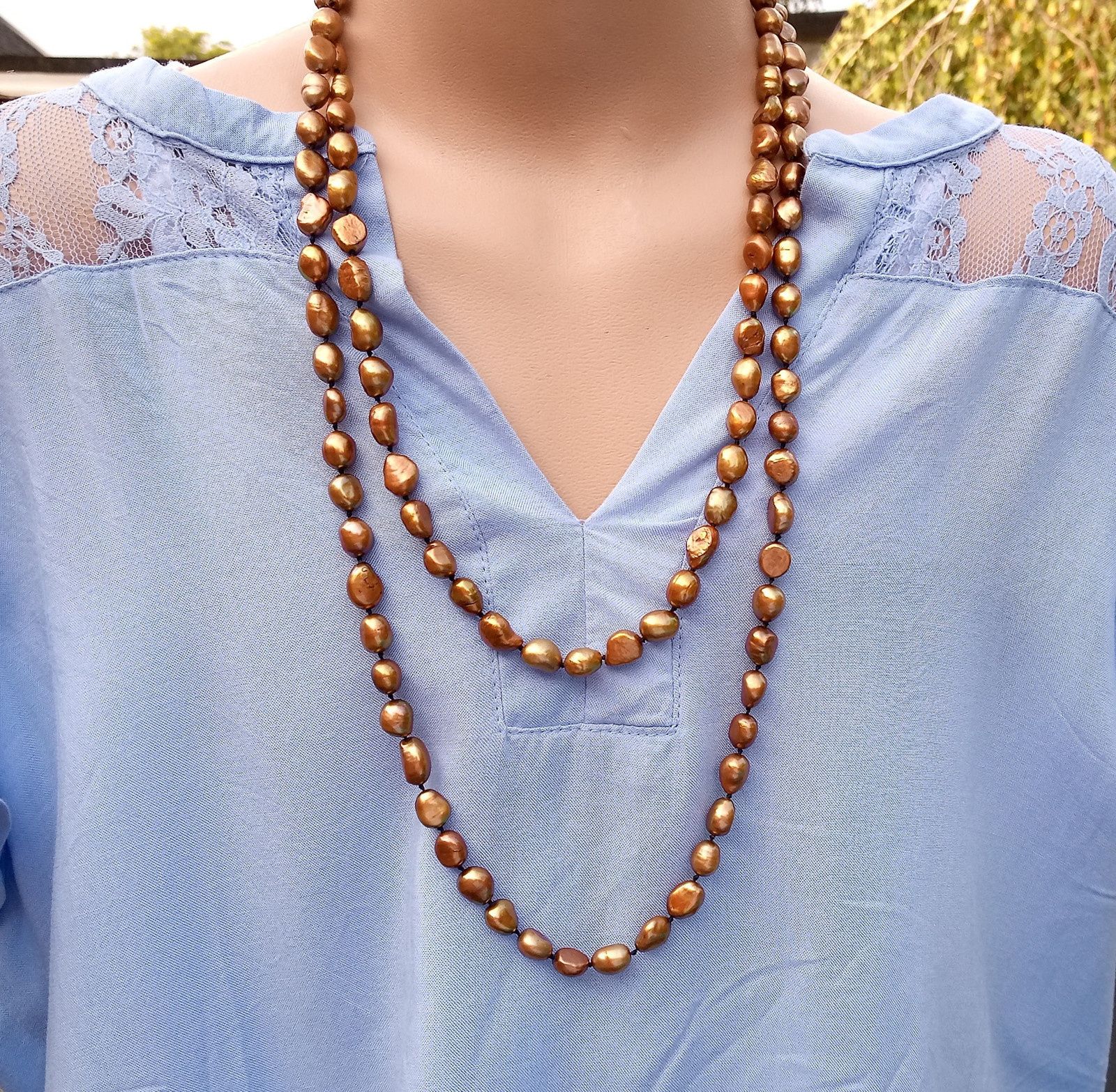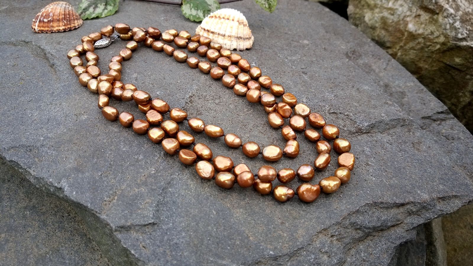 Perly jsou v nádherné přírodní měděné hnědé barvě. S dokonalým leskem s přírodními odlesky.