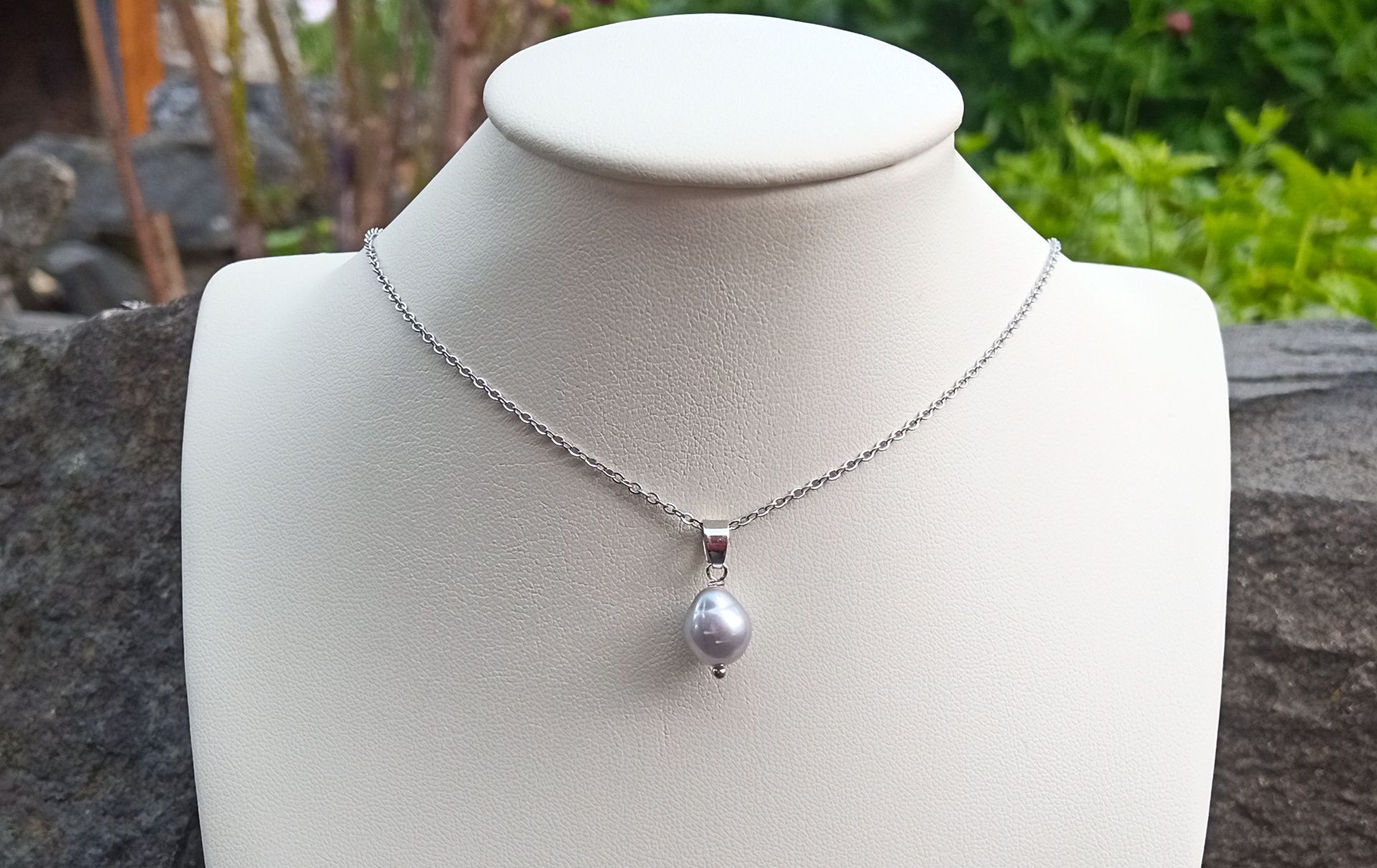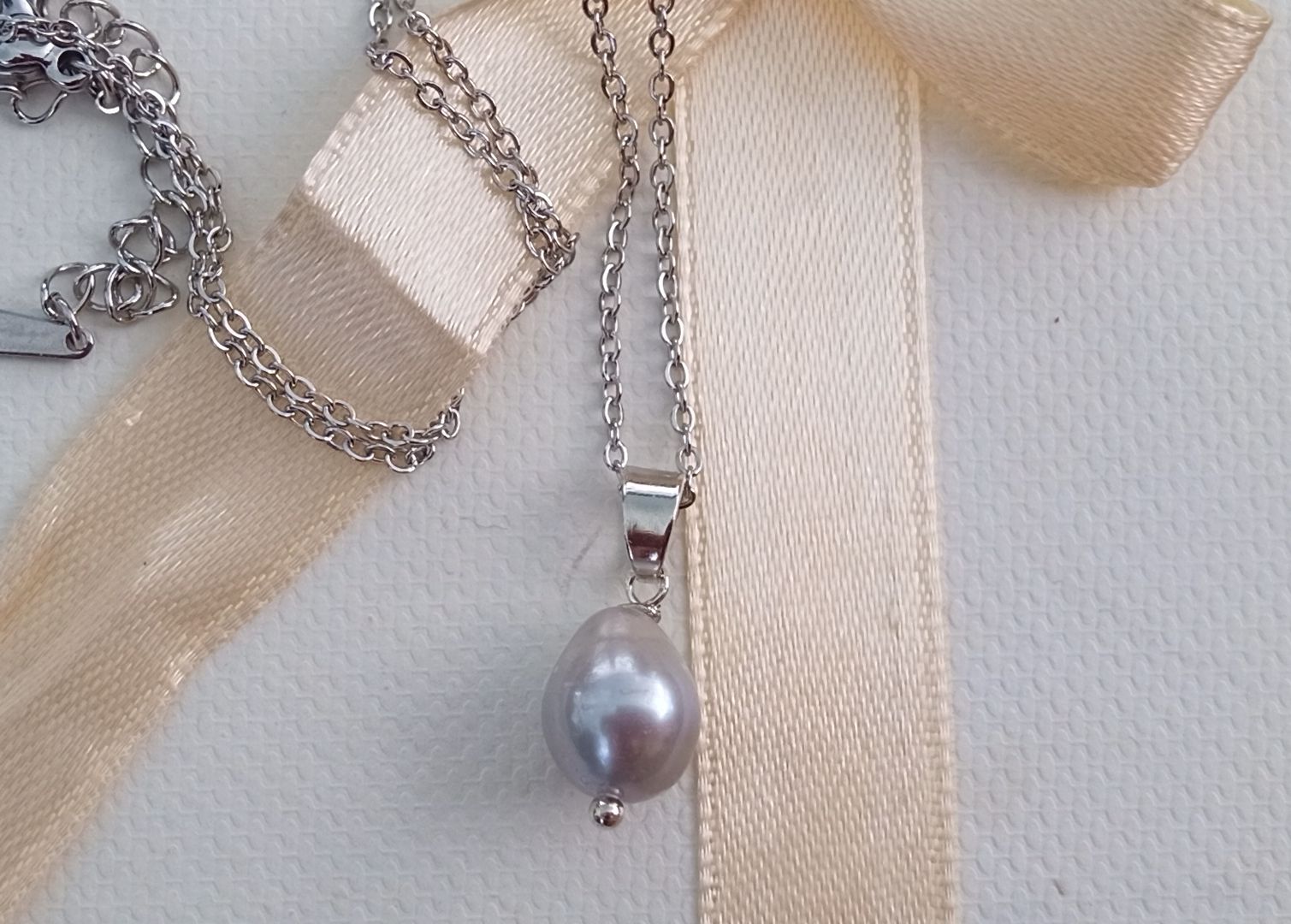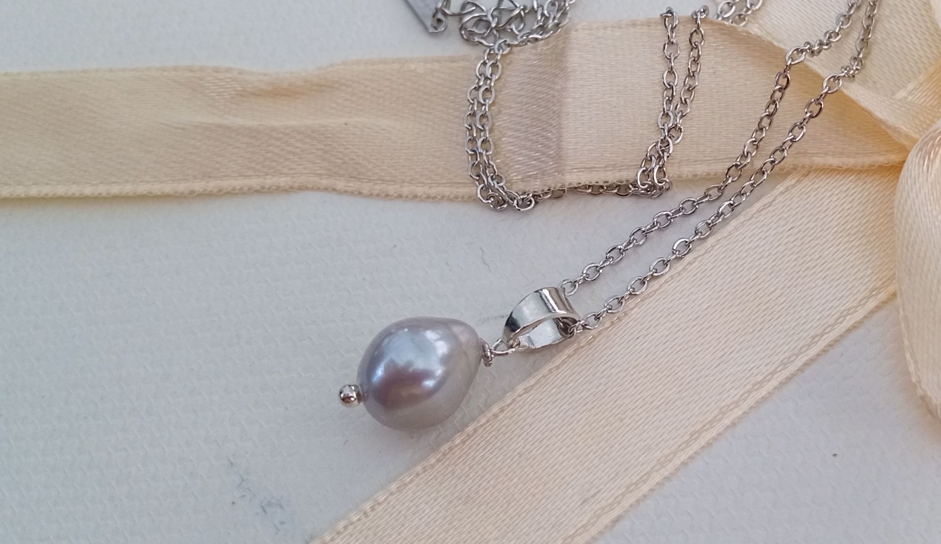 Elegantní náhrdelník s šedou dokonale lesklou říční perlou o velikosti 10 mm zavěšenou na jemném řetízku z chirurgické oceli - hypoalergenní, vhodné i pro alergiky doplněném o prodlužovací řetízek.