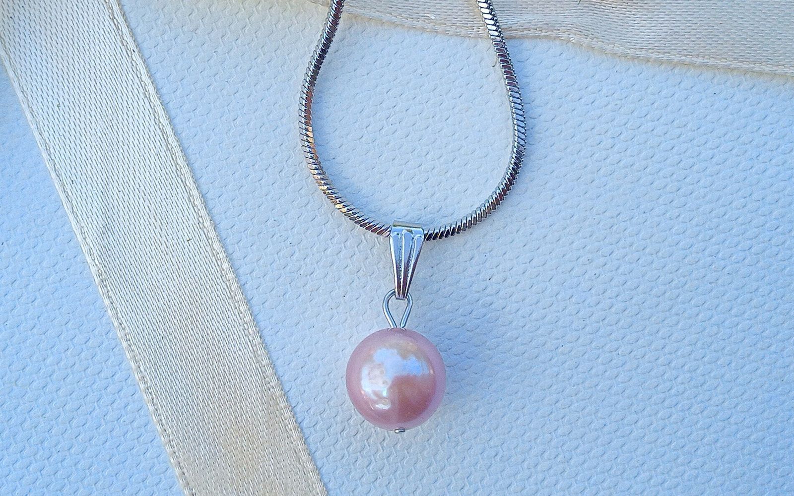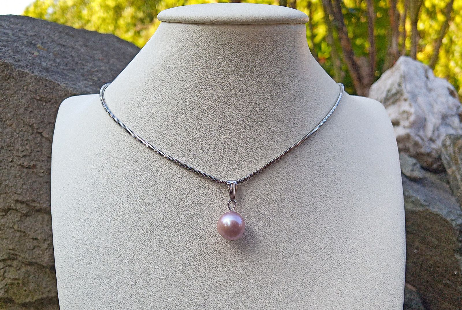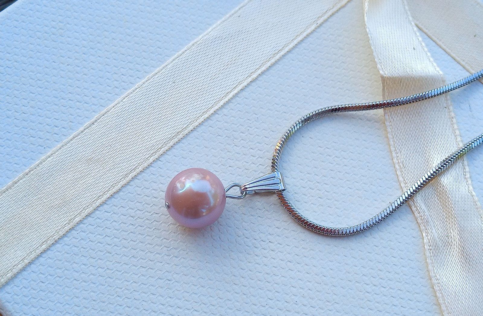 Nádherně zbarvené velká téměř kulatá mořská perla o průměru cca 10 mm v fialkovozlaté barvě s dokonalým leskem a duhovými perleťovými odlesky zavěšená na hadovitém řetízku z chirurgické oceli - hypoalergenní, vhodné i pro alergiky.