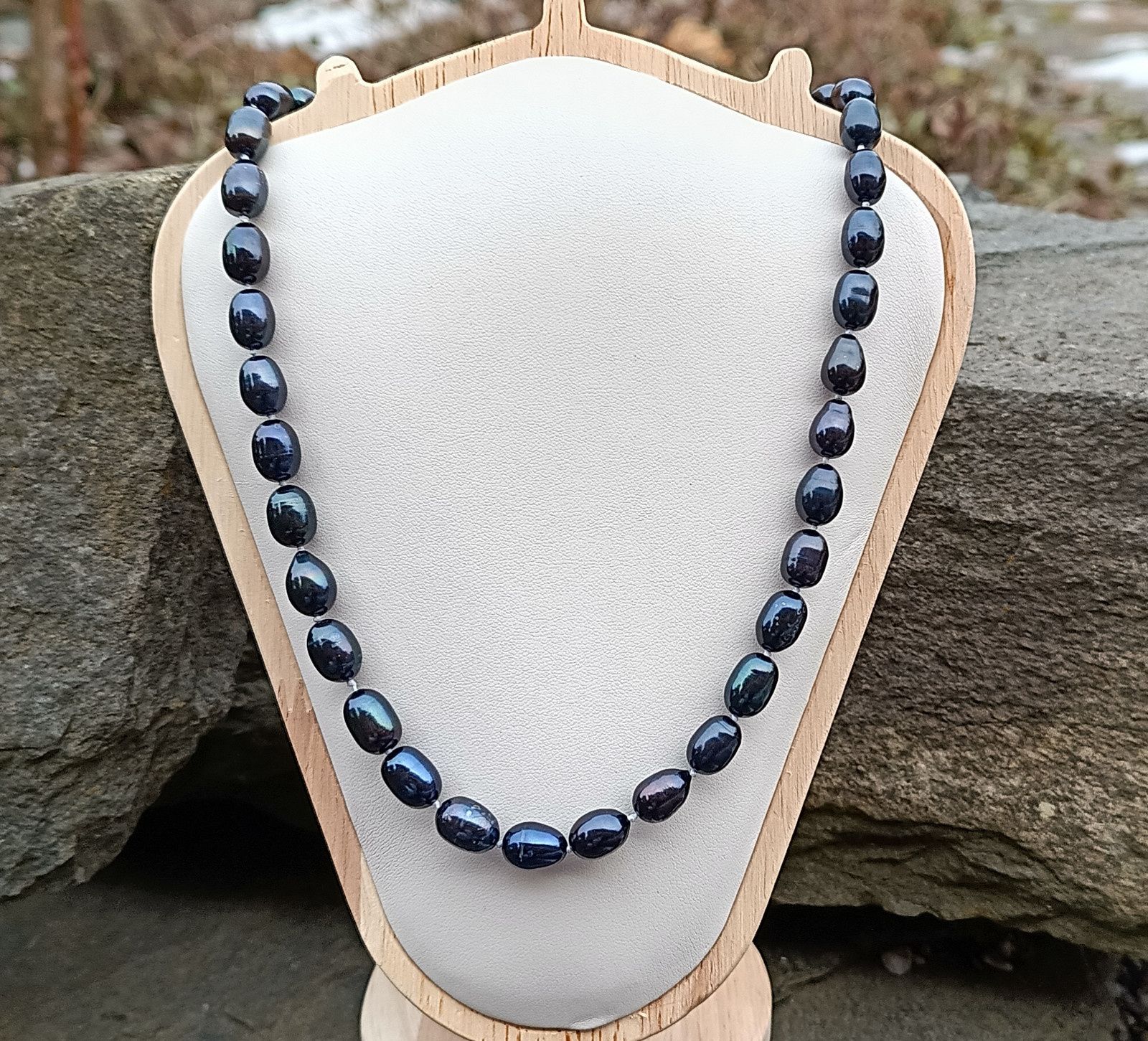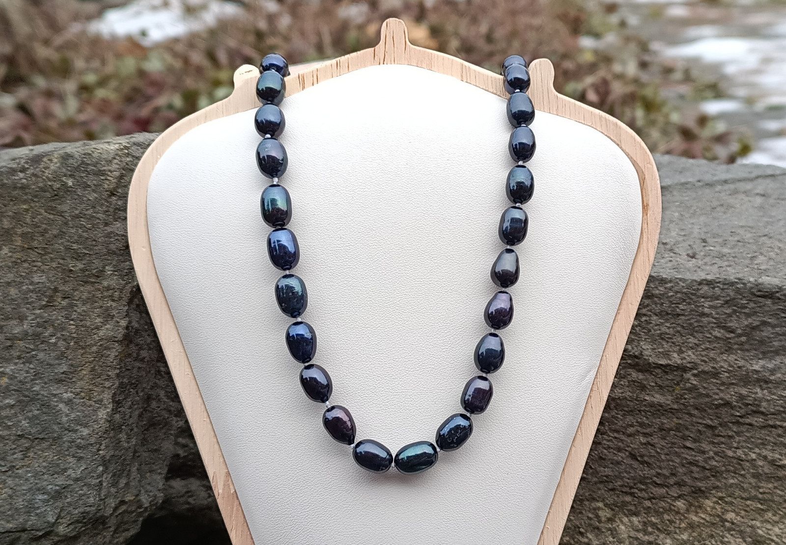 Jednotlivé perly jsou od sebe oddělené uzlíky proti vzájemnému tření, lepší ohebnosti a praktičnosti. Při nechtěném roztržení náhrdelníku se Vám perličky nerozkutálejí po zemi:))