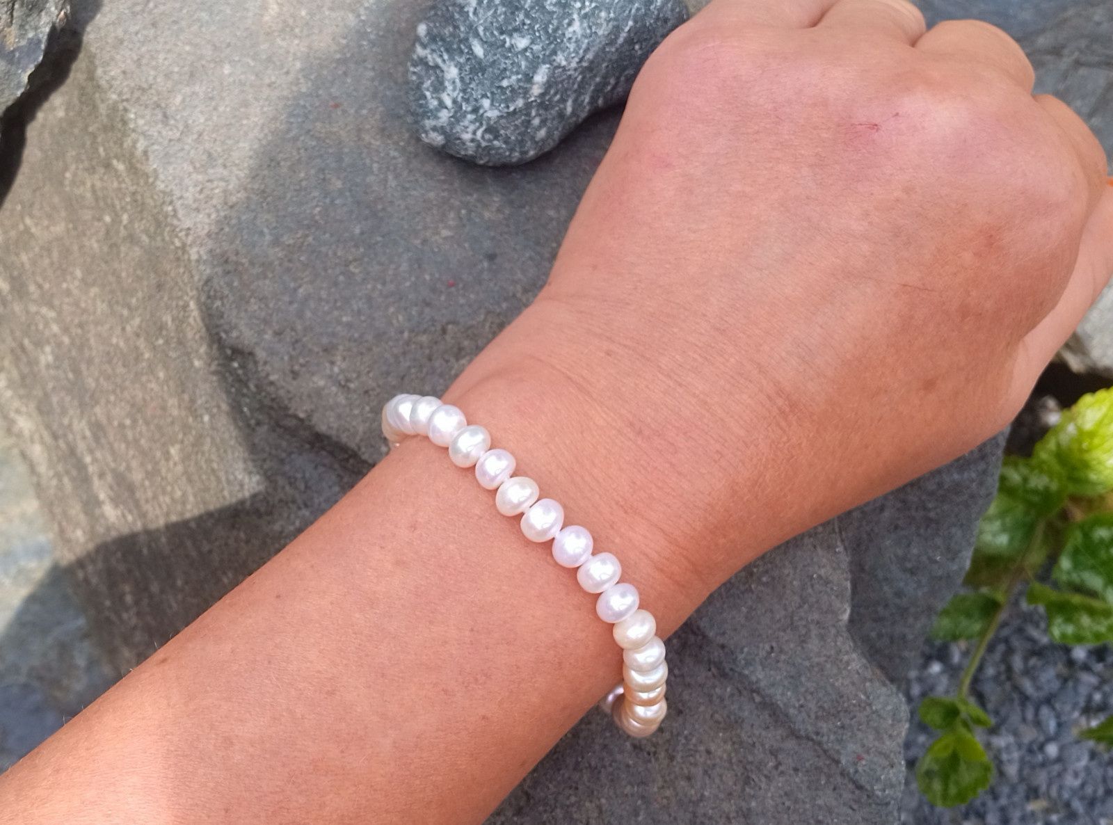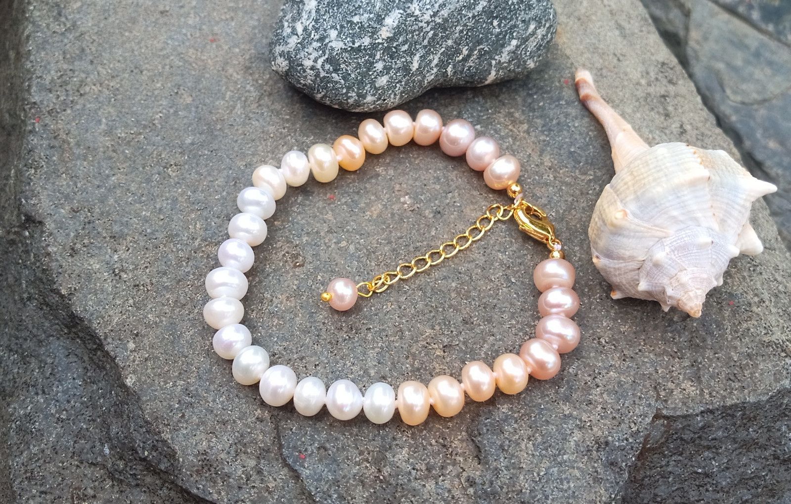 Perly jsme do náramku vybrali v nejvyšší kvalitě, bez rýh a jiných nedokonalostí, jsou stejného tvaru i velikosti. Typ perel button.