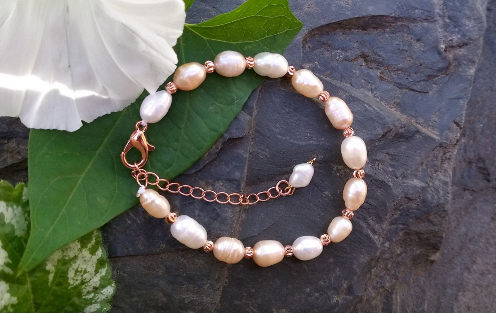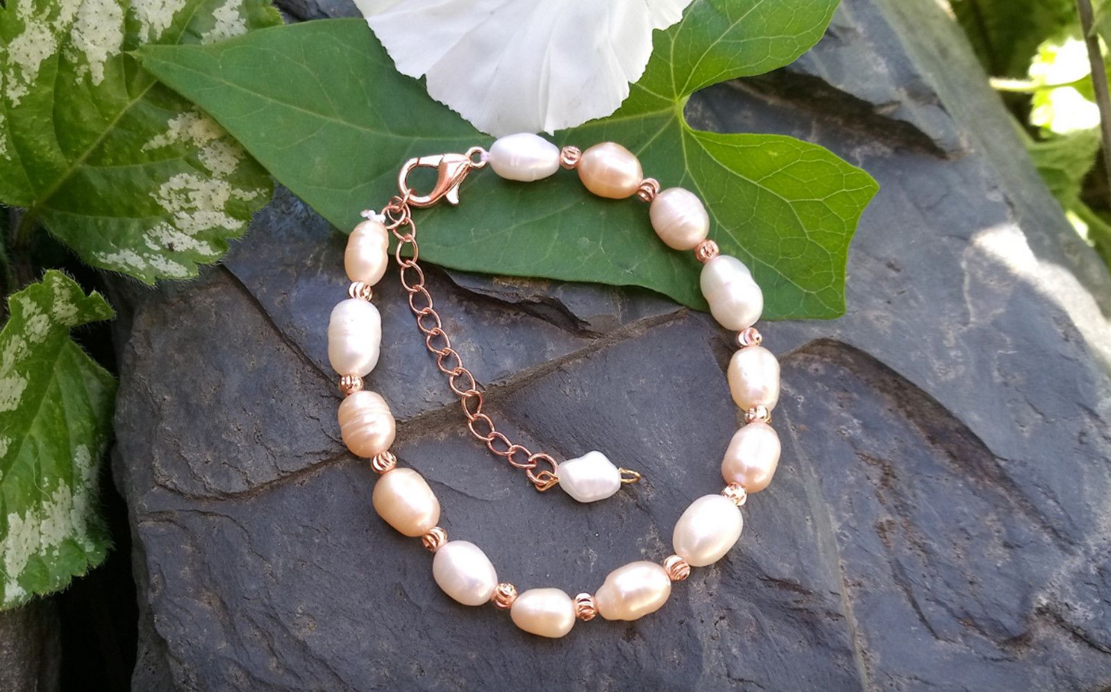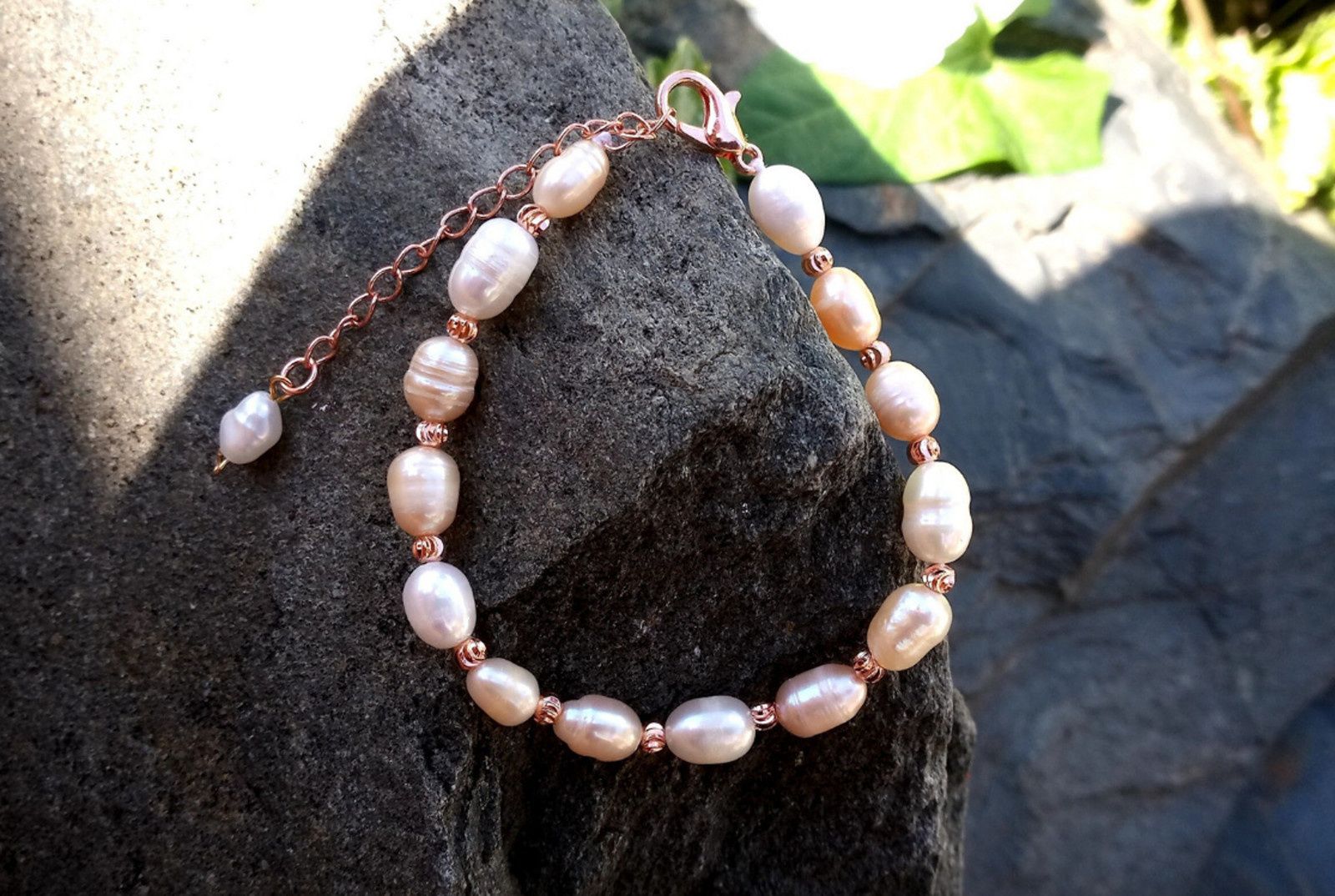 Říční perly růžovo bílý perlový pozlacený náramek