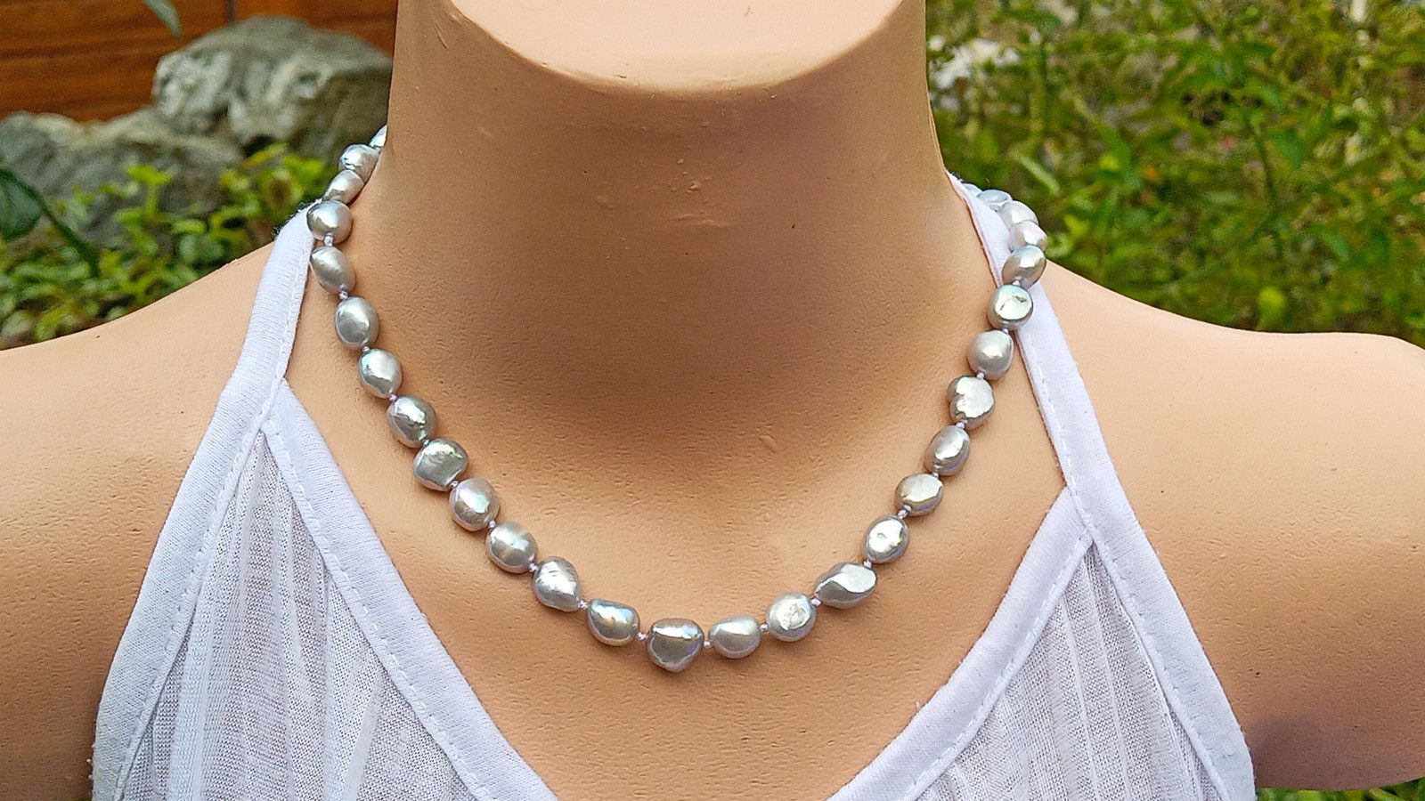 Jednotlivé perličky jsou od sebe oddělené uzlíky proti vzájemnému tření, lepší ohebnosti a praktičnosti. Při nechtěném roztržení náhrdelníku se Vám perličky nerozkutálejí po zemi:))