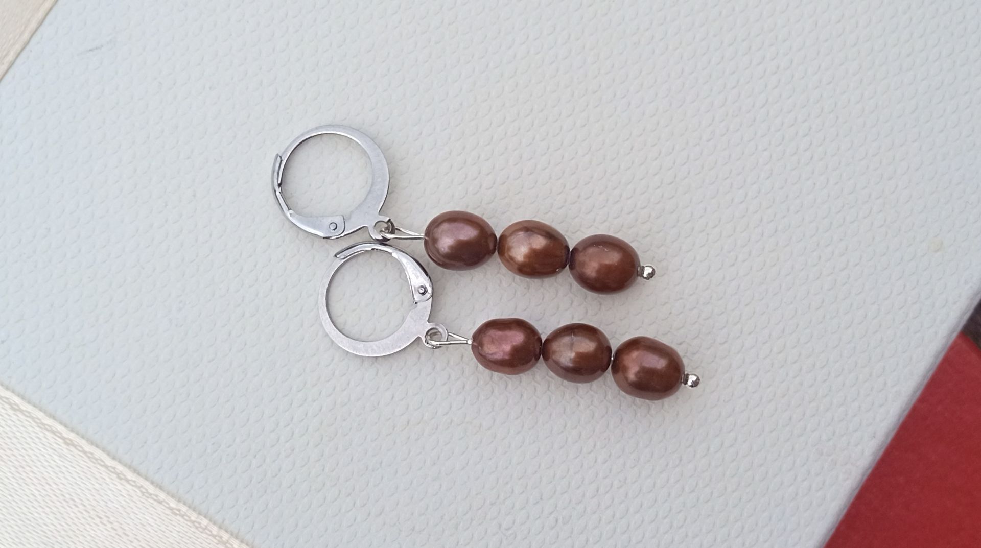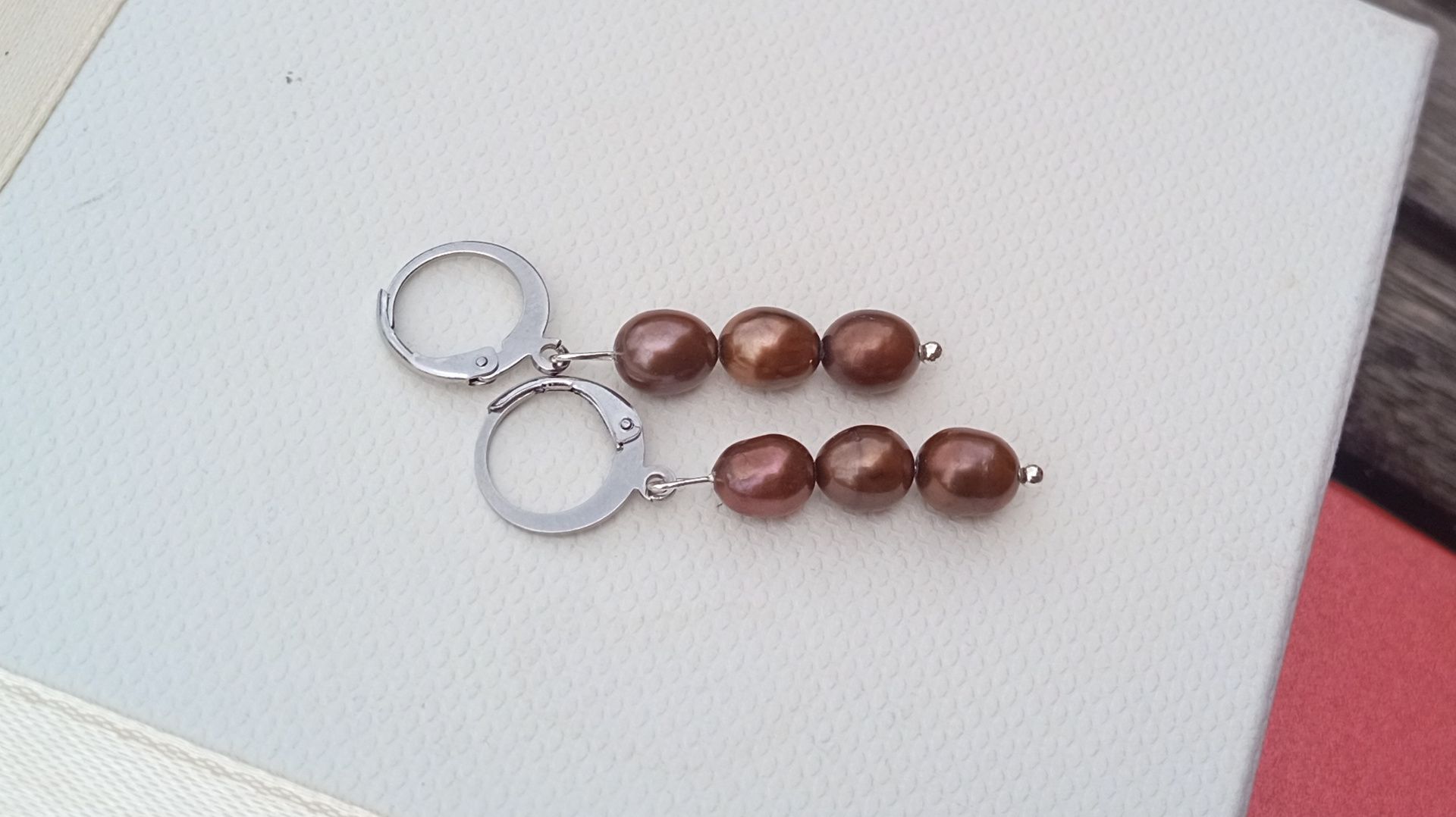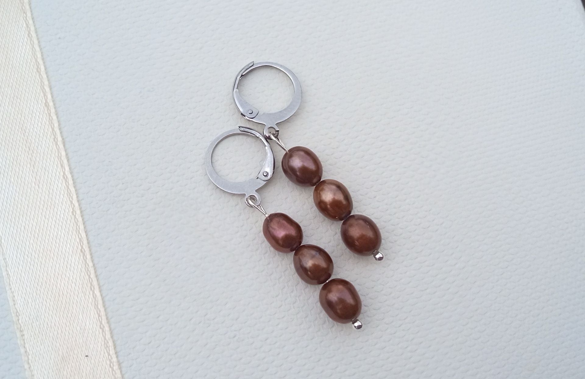 Náušnice vyrobené z prvotřídních hnědých dokonale lesklých říčních perliček o velikosti cca 6-7 mm zavěšených na zavíracích háčcích z chirurgické oceli - hypoalergenní, vhodné i pro alergiky. Barva perel je přírodní bez dobarvení!