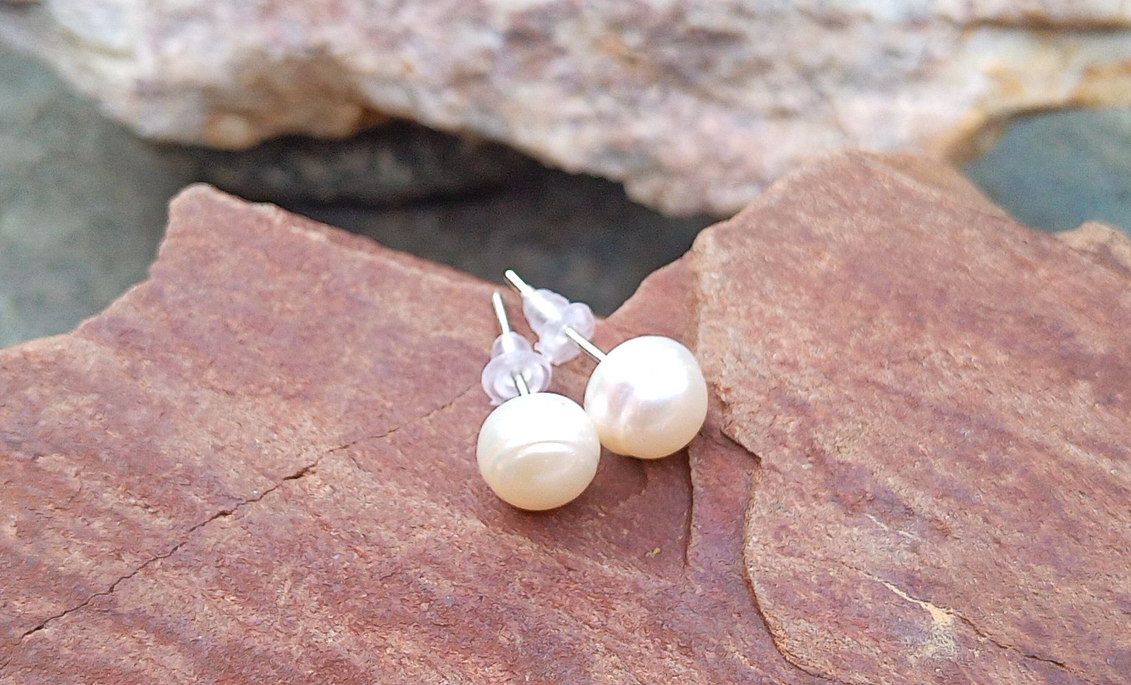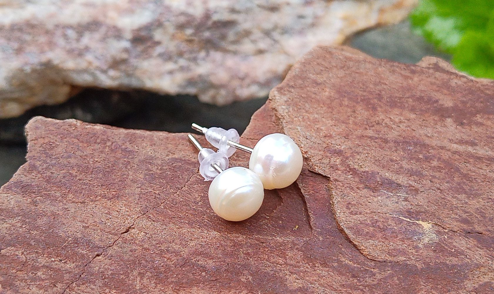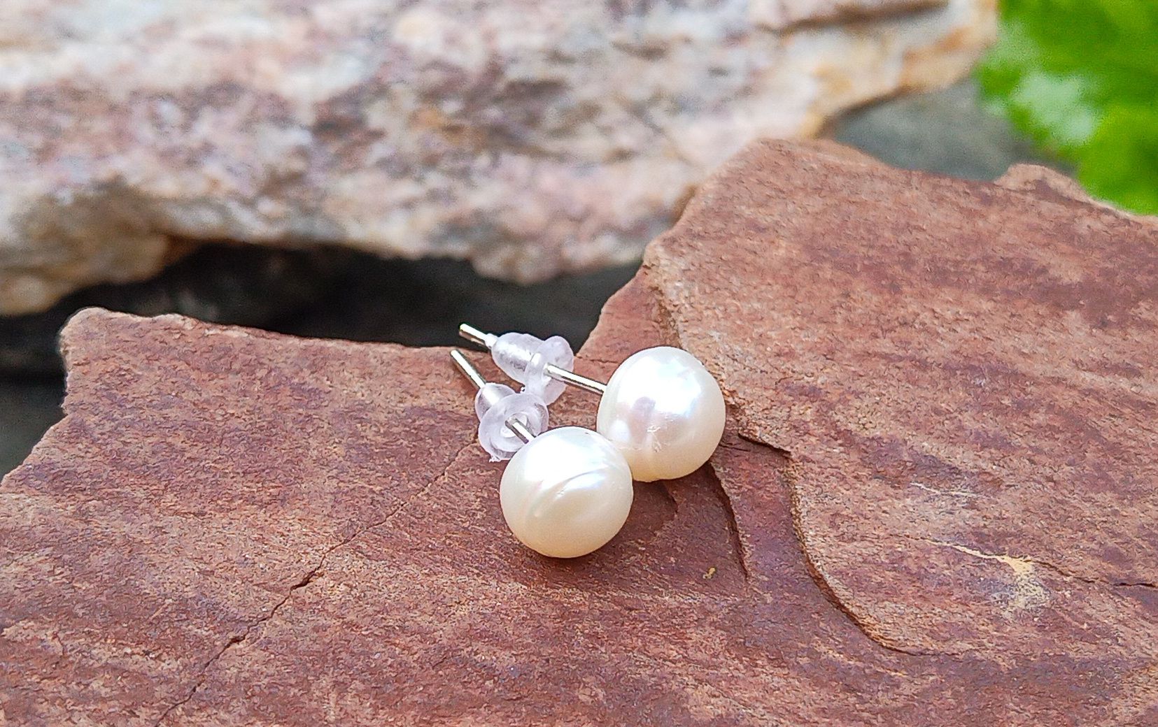 Dokonale lesklé bílé říční perly o průměru cca 7 mm se silikonovými zarážkami, které nesjíždí a výborně drží proti ztrátě, navíc jsou téměř neviditelné a vyniknou tak hlavně perly, které mají nádherné perleťové duhové odlesky a dodávají tak šperku eleganci a šmrnc.