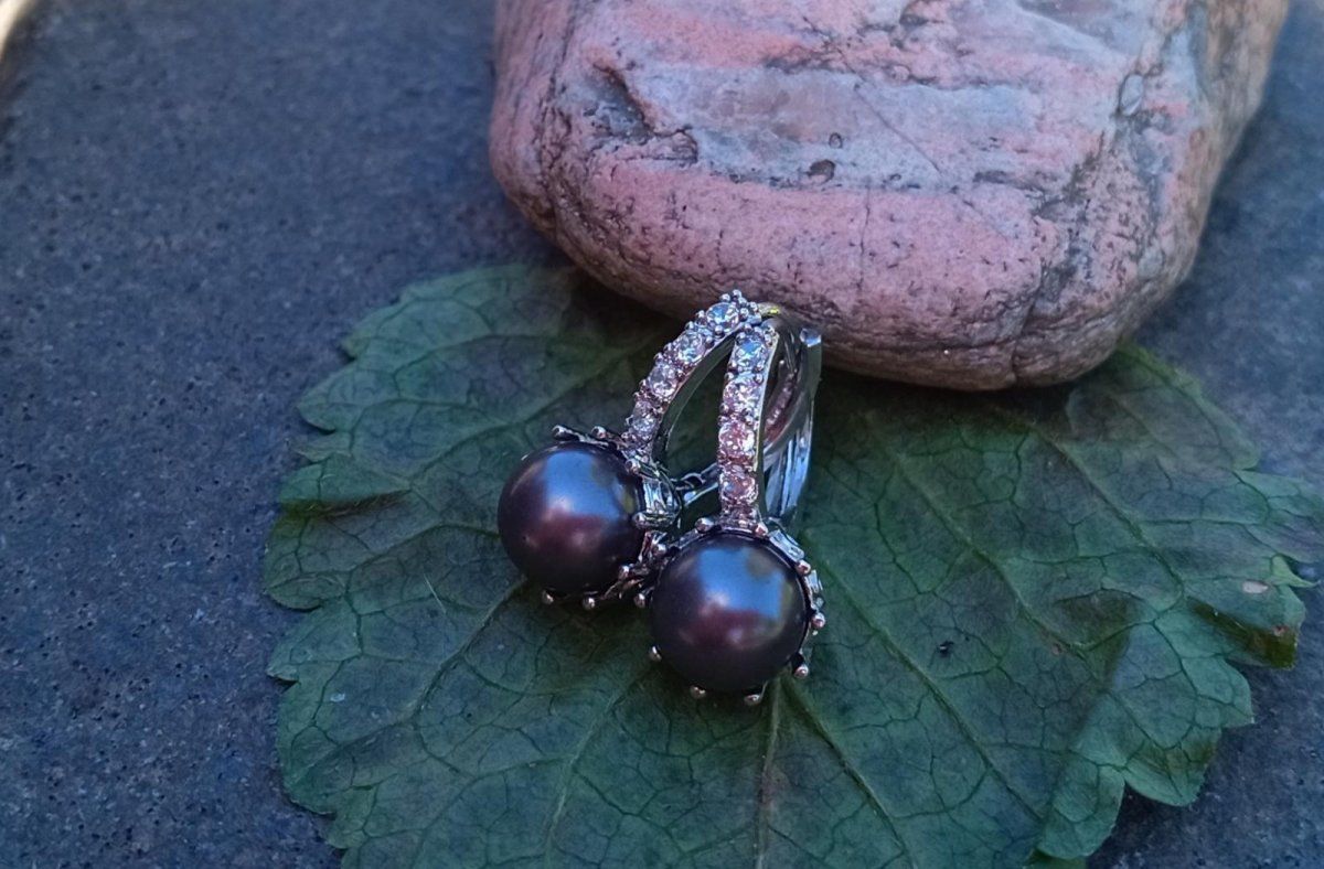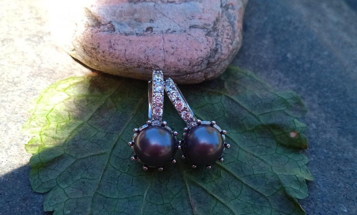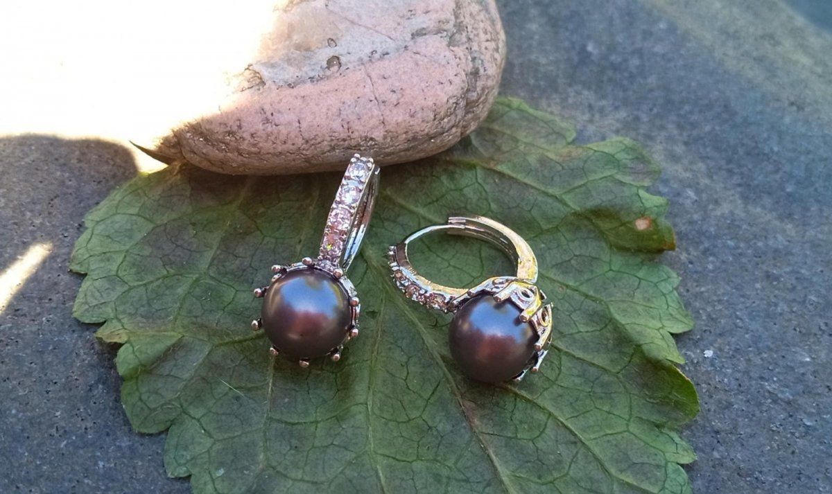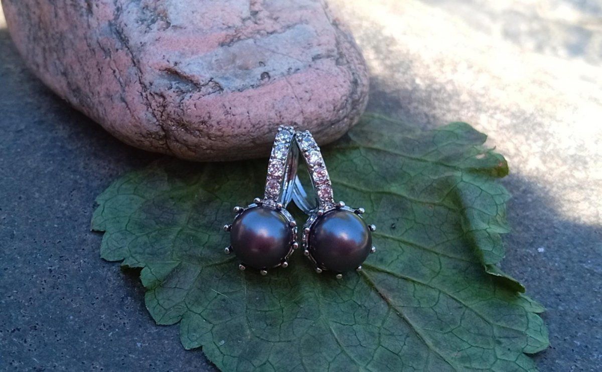 Elegantní postříbřené náušnice s vloženými šedými shell perlami o průměru 8 mm. Zapínání je zdobené drobnými broušenými kubickými zirkony.