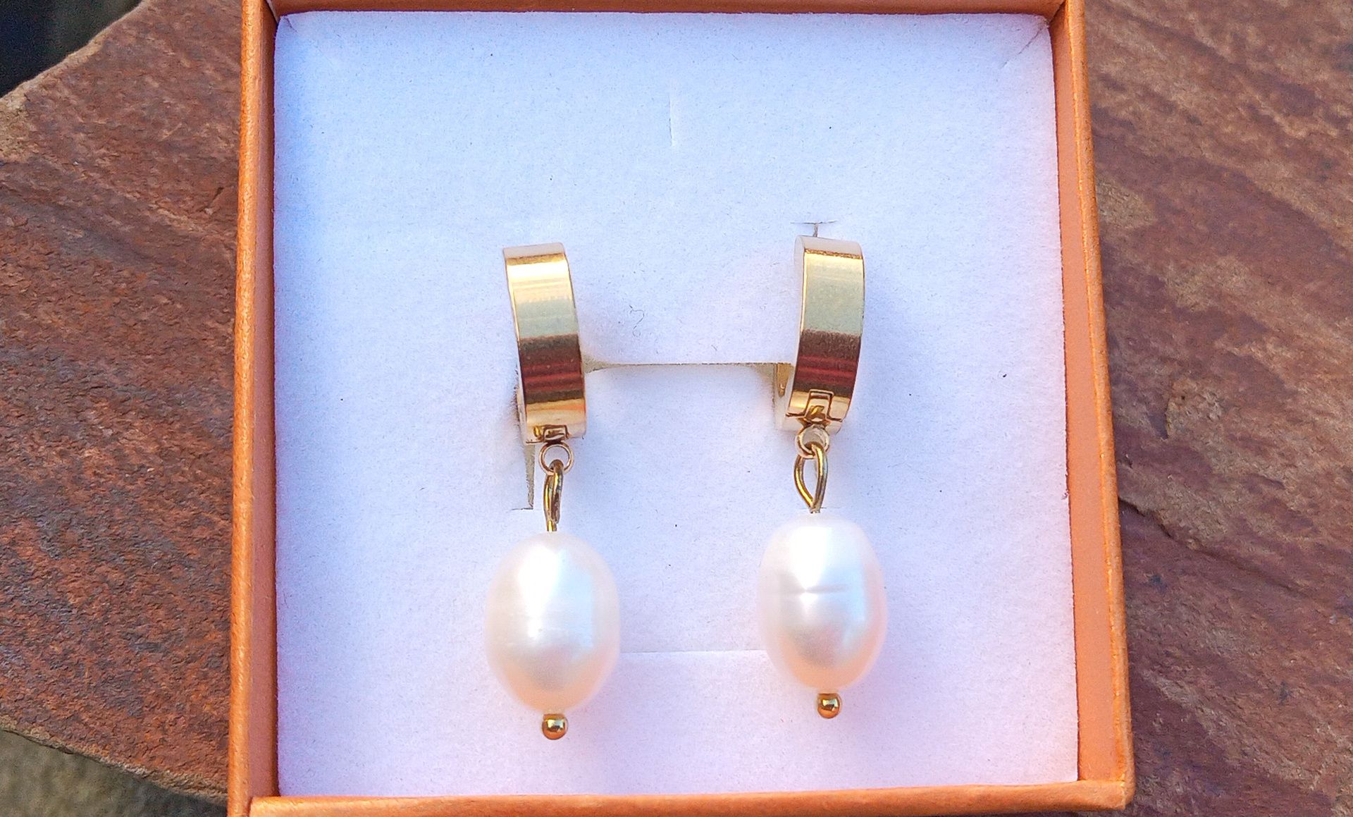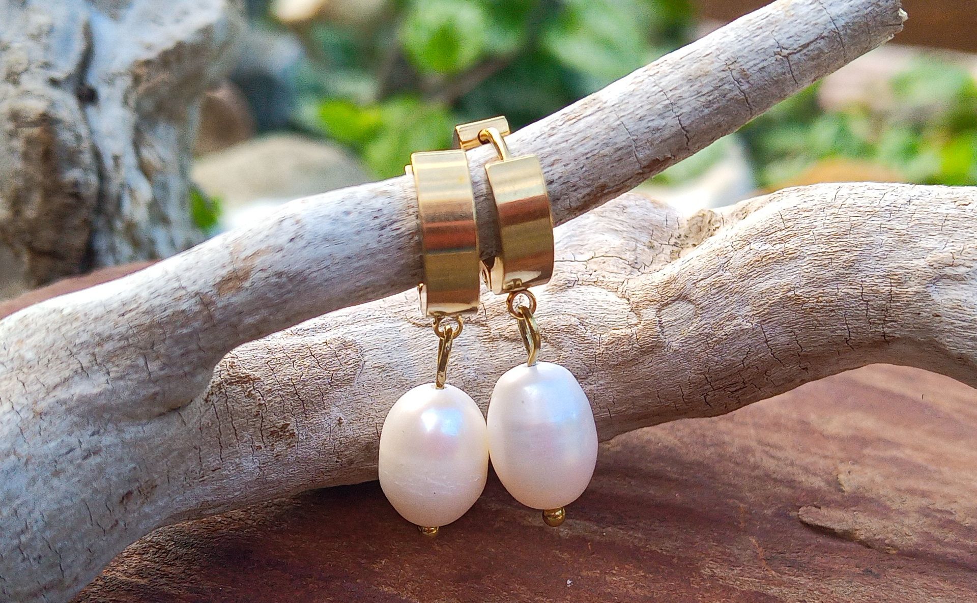 Říční velké perly pozlacené perlové náušnice, chirurgická ocel