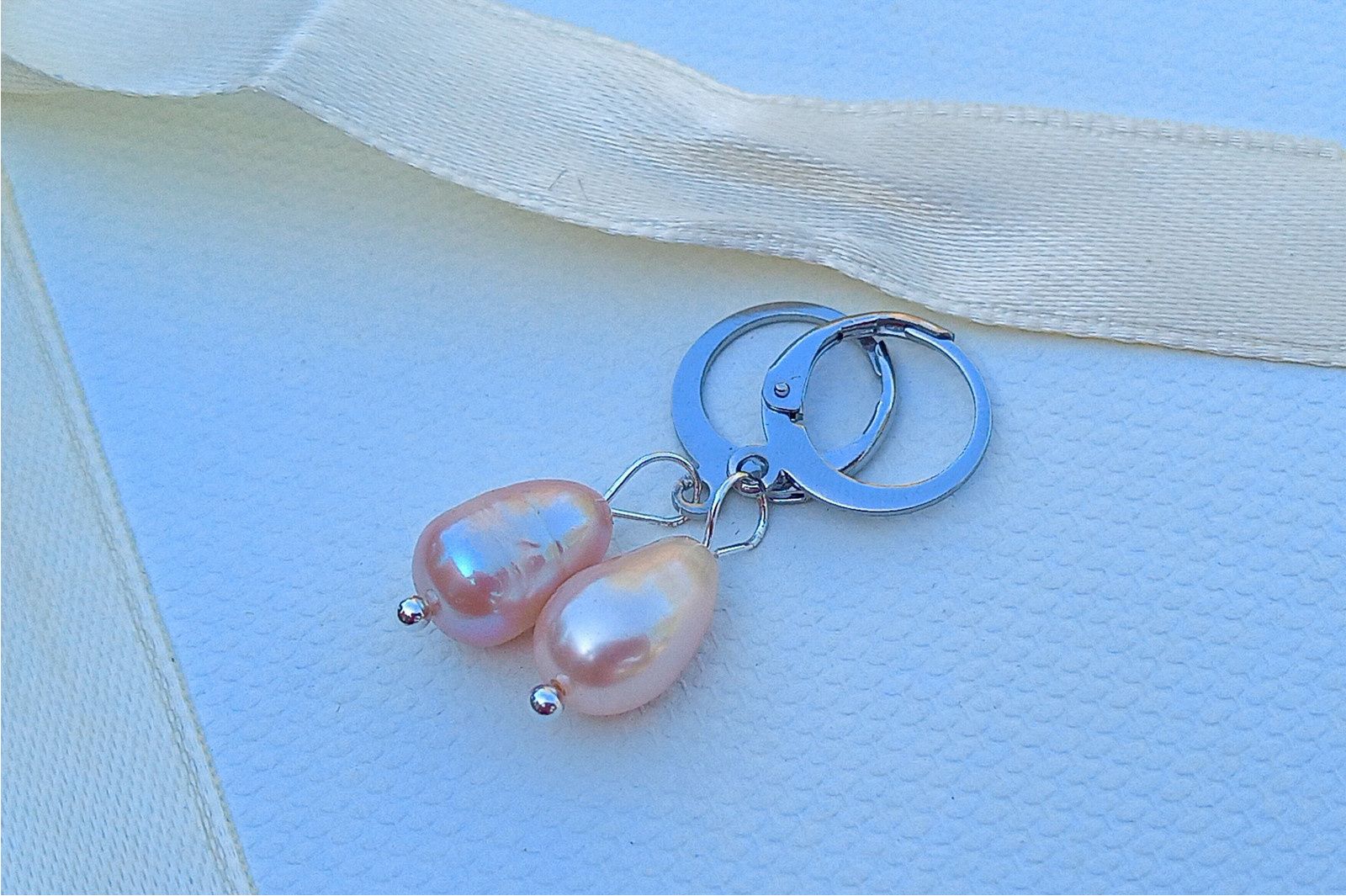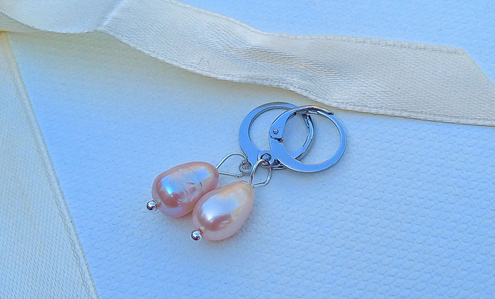 Něžné náušnice z růžových dokonale lesklých říčních perel o velikosti 10 mm na zavíracích háčcích z chirurgické oceli - hypoalergenní, vhodné i pro alergiky.