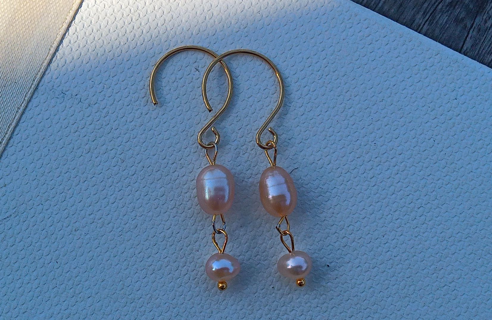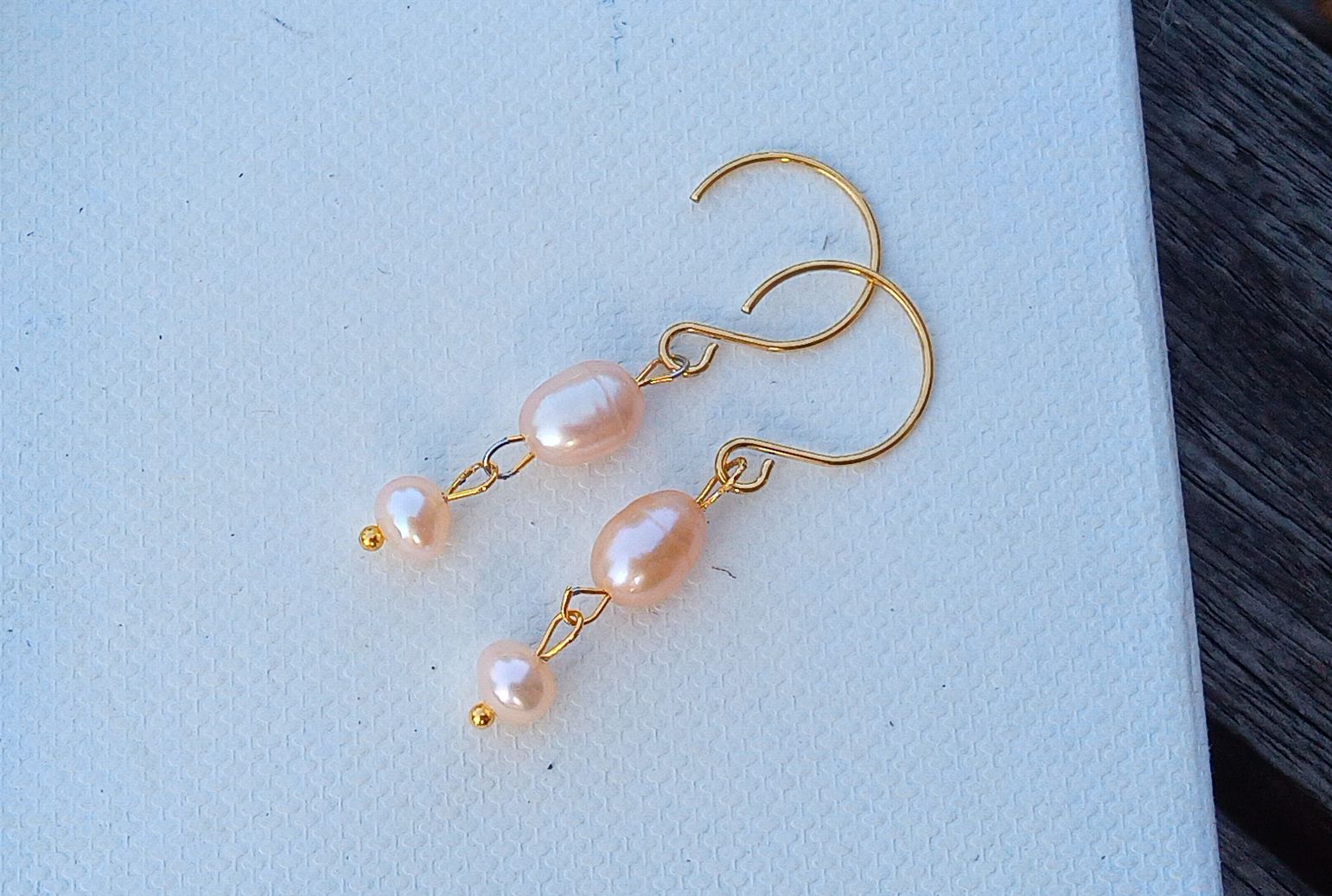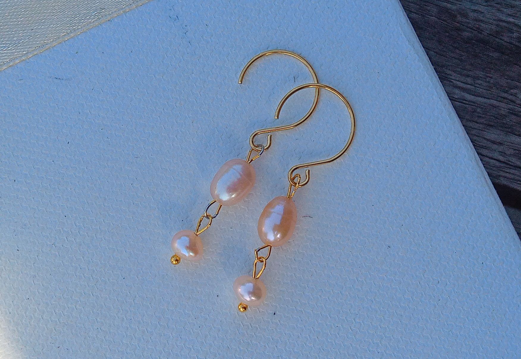 Růžové říční perly na pozlacené chirurgické oceli perlové náušnice