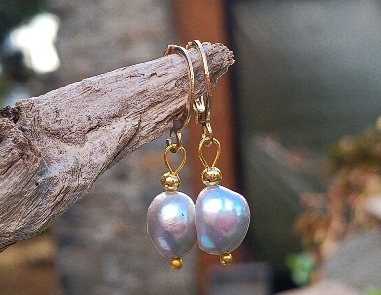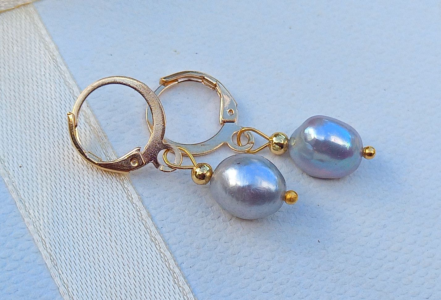 Šedé říční perly náušnice na pozlacené chirurgické oceli, top kvalita