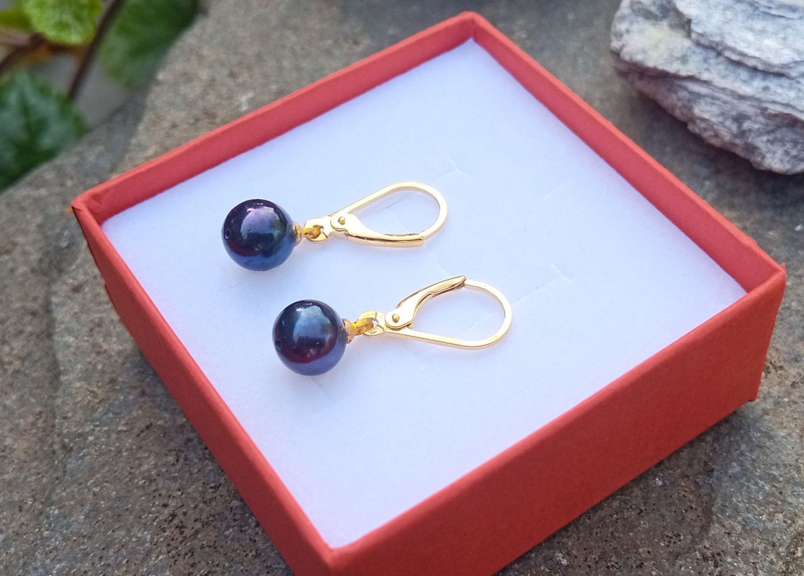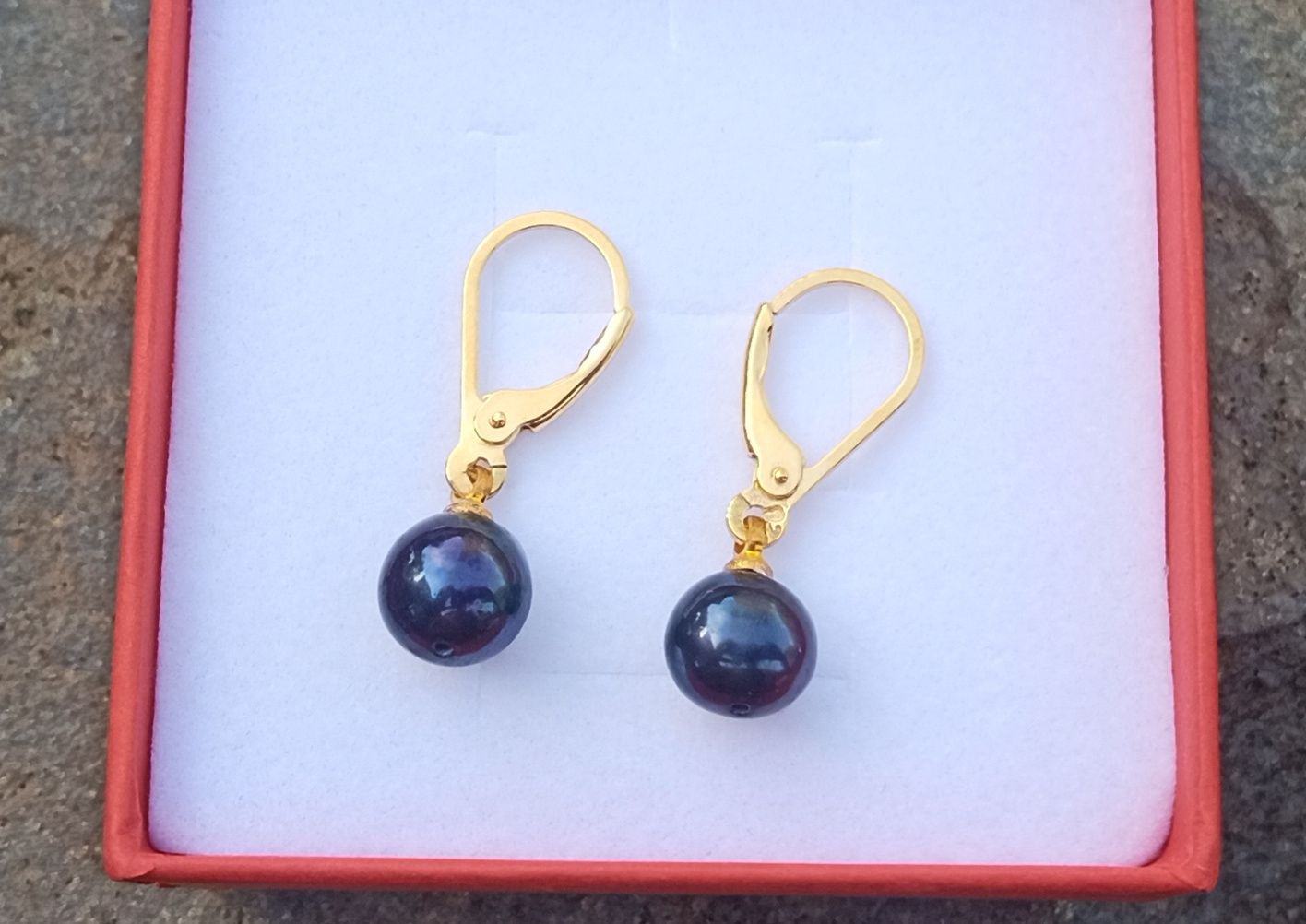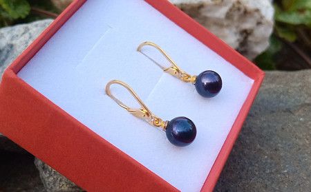 Dokonale lesklé nádherně perleťové černé tahitské perly v top kvalitě o průměru 7 mm zavěšené na zavíracích stříbrných 925/1000 háčcích pozlacených 24K zlatem.
