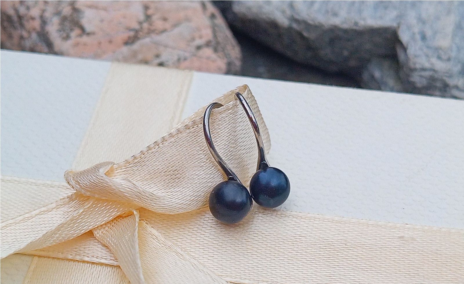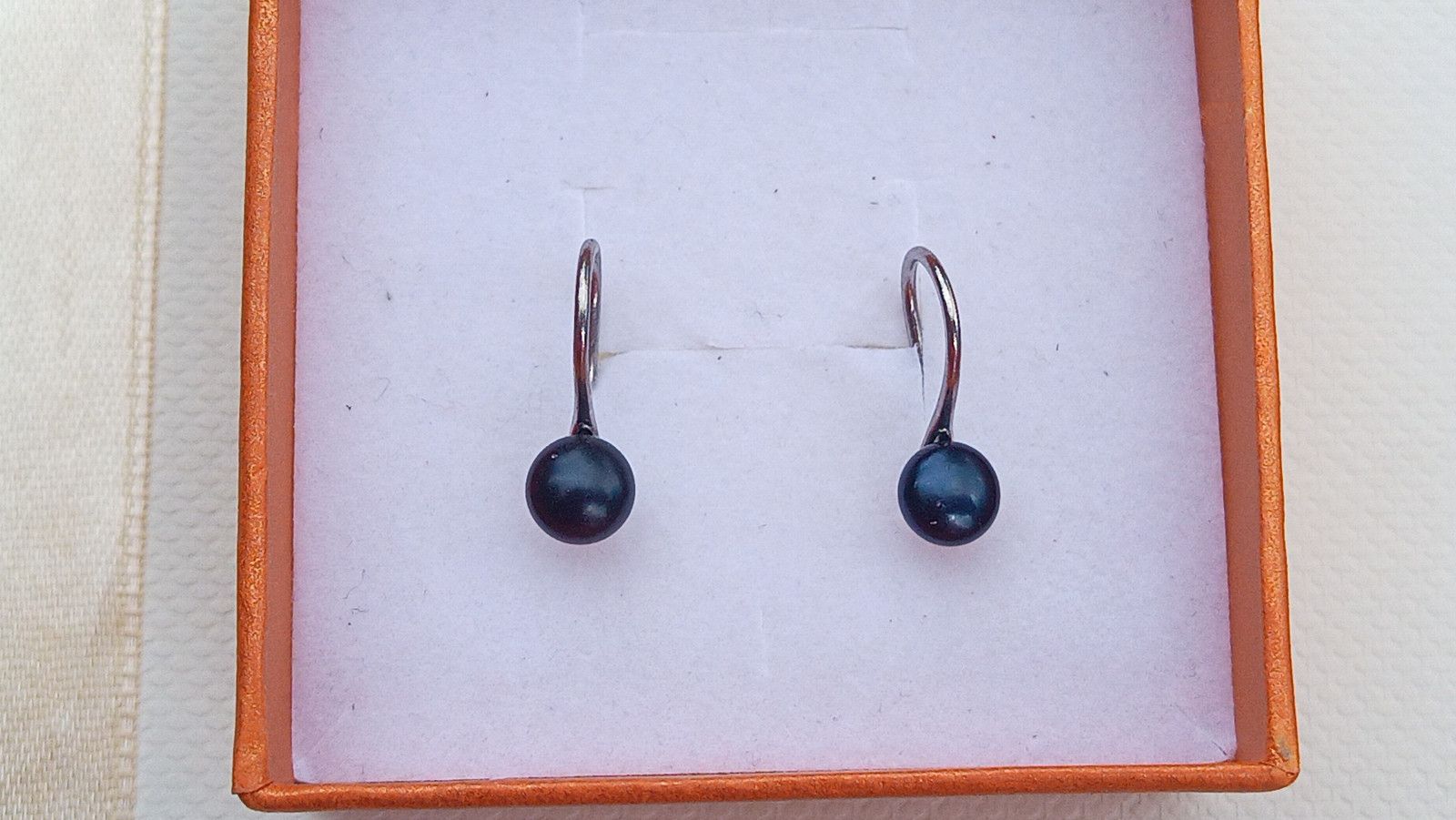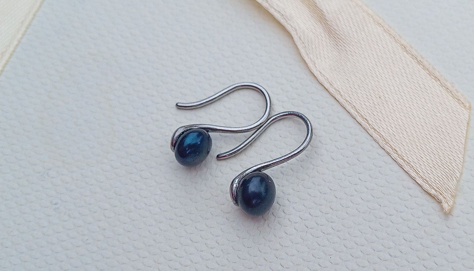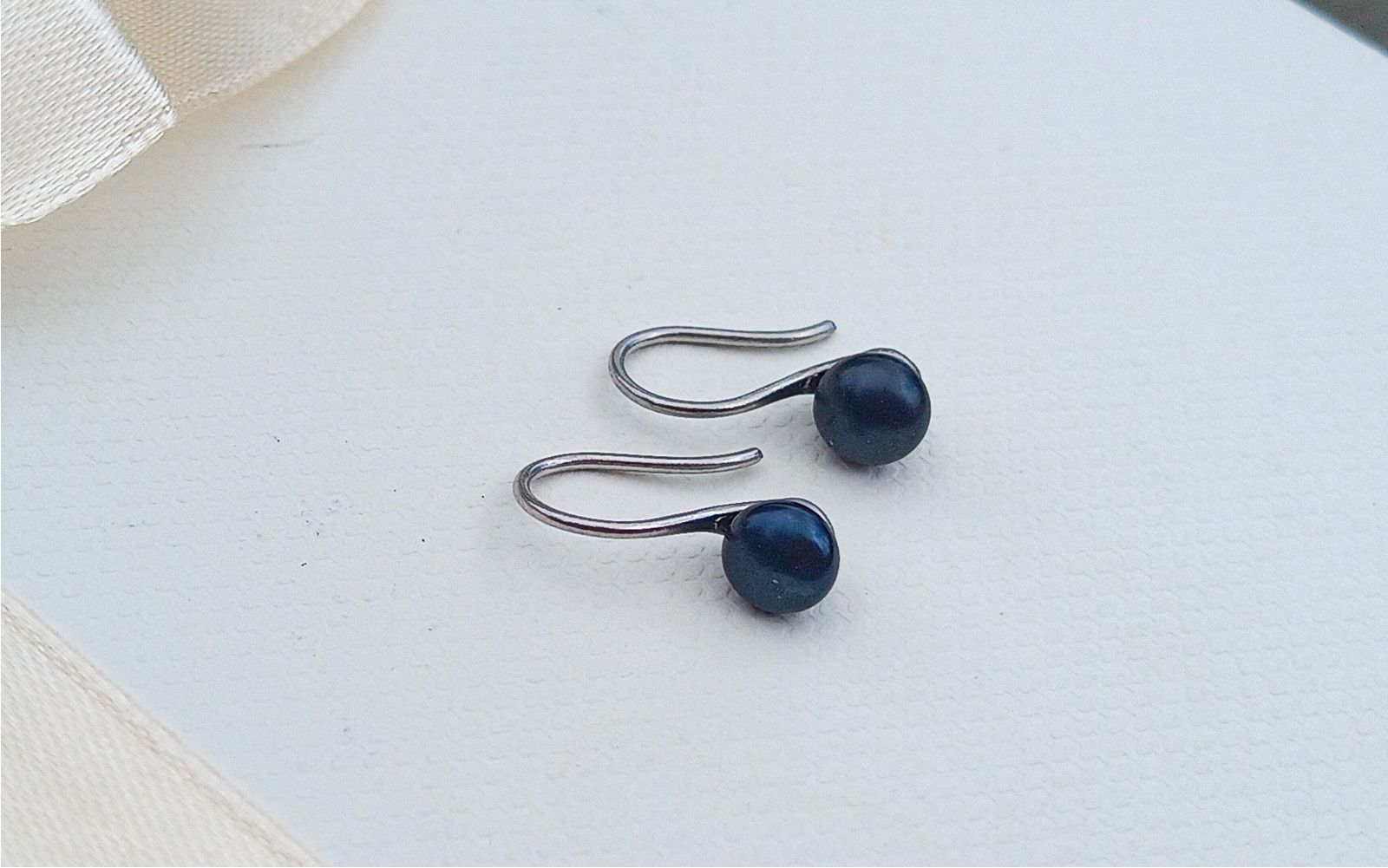 Elegantní náušnice s dokonale lesklými říčními tmavě modrými perlami o průměru 6 mm vloženými do něžných háčků z chirurgické oceli - hypoalergenní, vhodné i pro alergiky.