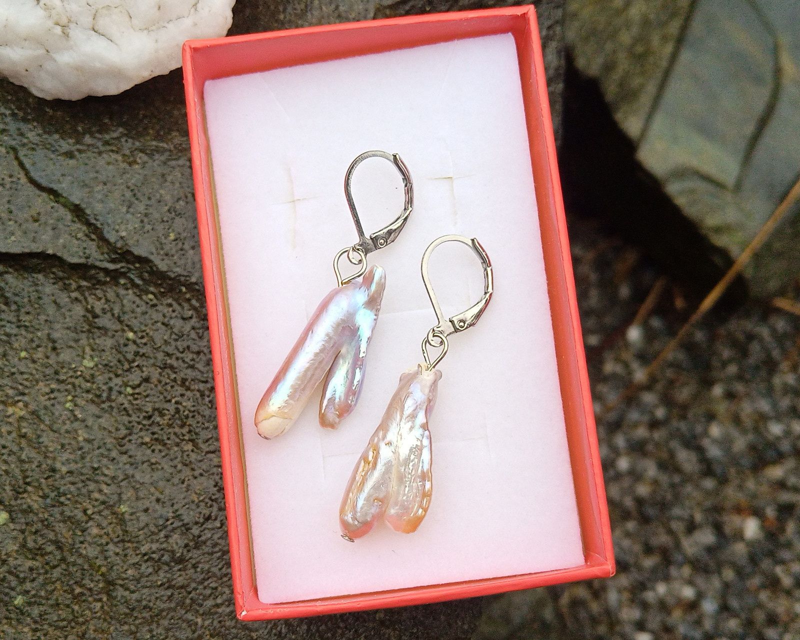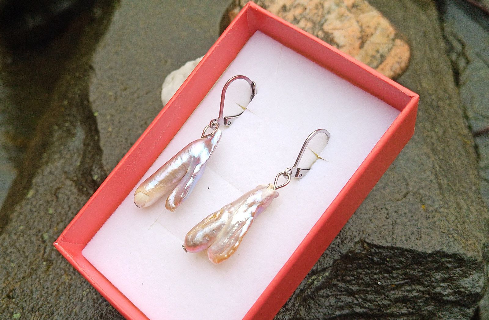Vzácné mořské barokní perly perlové náušnice na chirurgické oceli