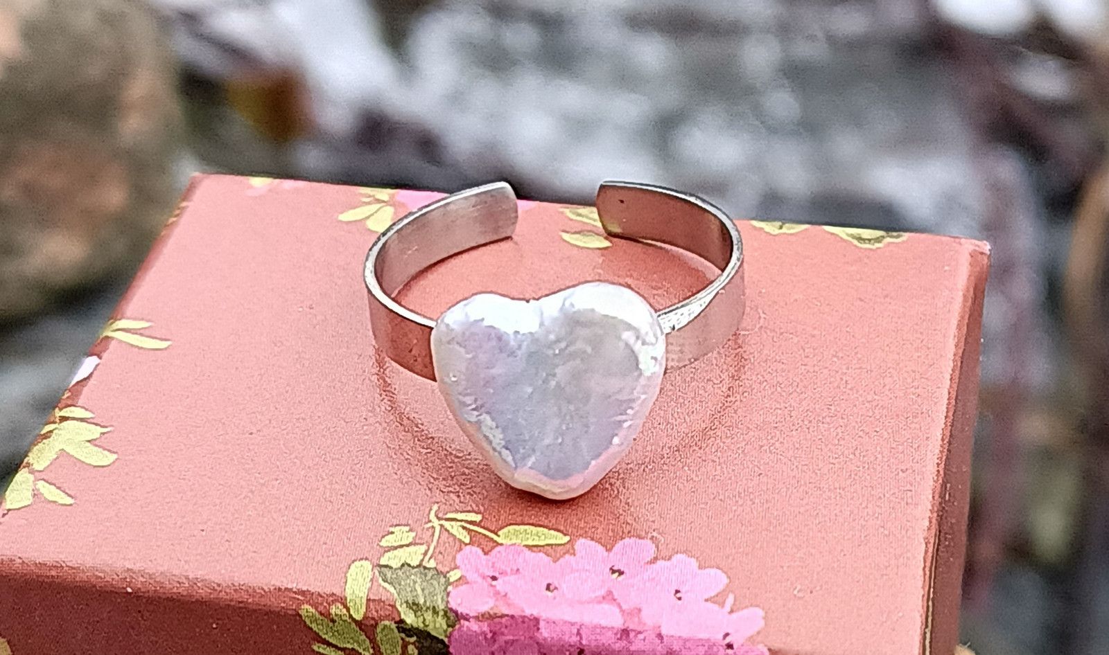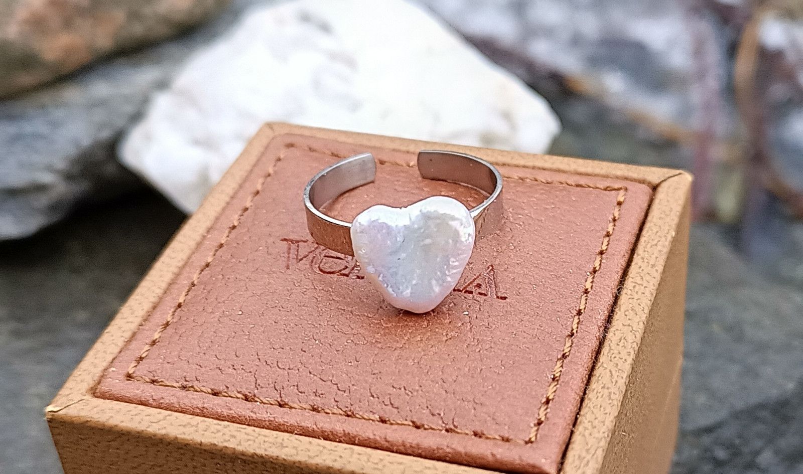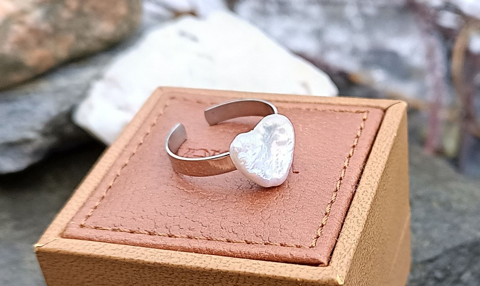 Perlový prsten mořská perla srdíčko na chirurgické oceli