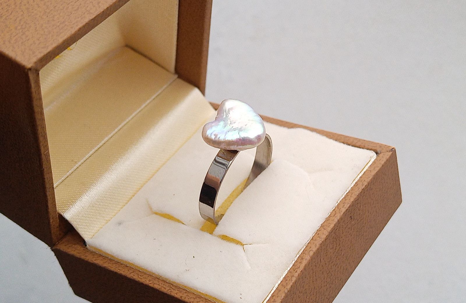 Elegantní romantický prstýnek s dokonale lesklou jihomořskou coin perlou ve tvaru srdíčka o průměru 11 mm na kroužku v univerzální velikosti vyrobeného z leštěné chirurgické oceli - hypoalergenní, vhodný i pro alergiky!