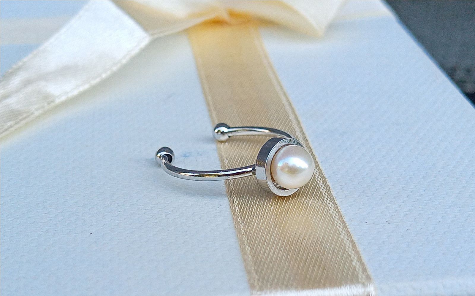 Prstýnek v univerzální velikosti s bílou dokonale lesklou říční perlou o průměru 6 mm v kroužku z chirurgické oceli - hypoalergenní, vhodné i pro alergiky. Síla kroužku 1,5 mm.