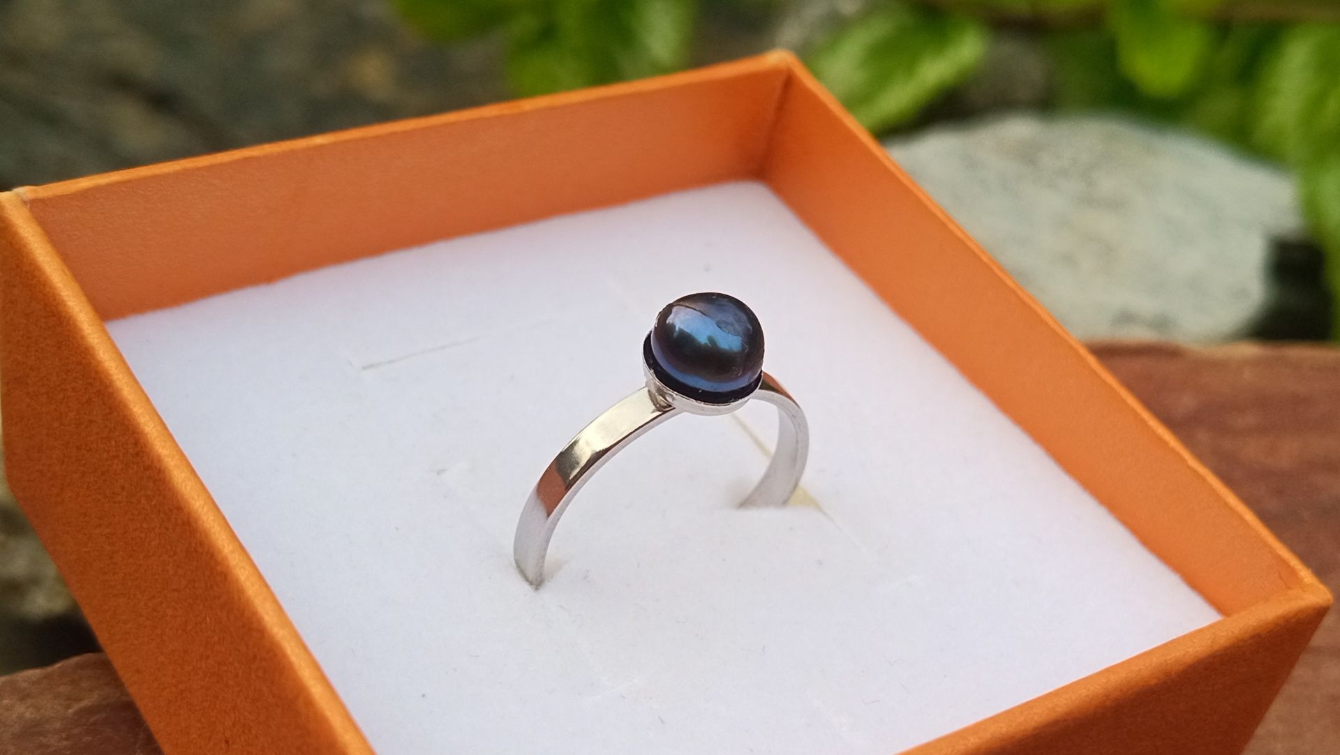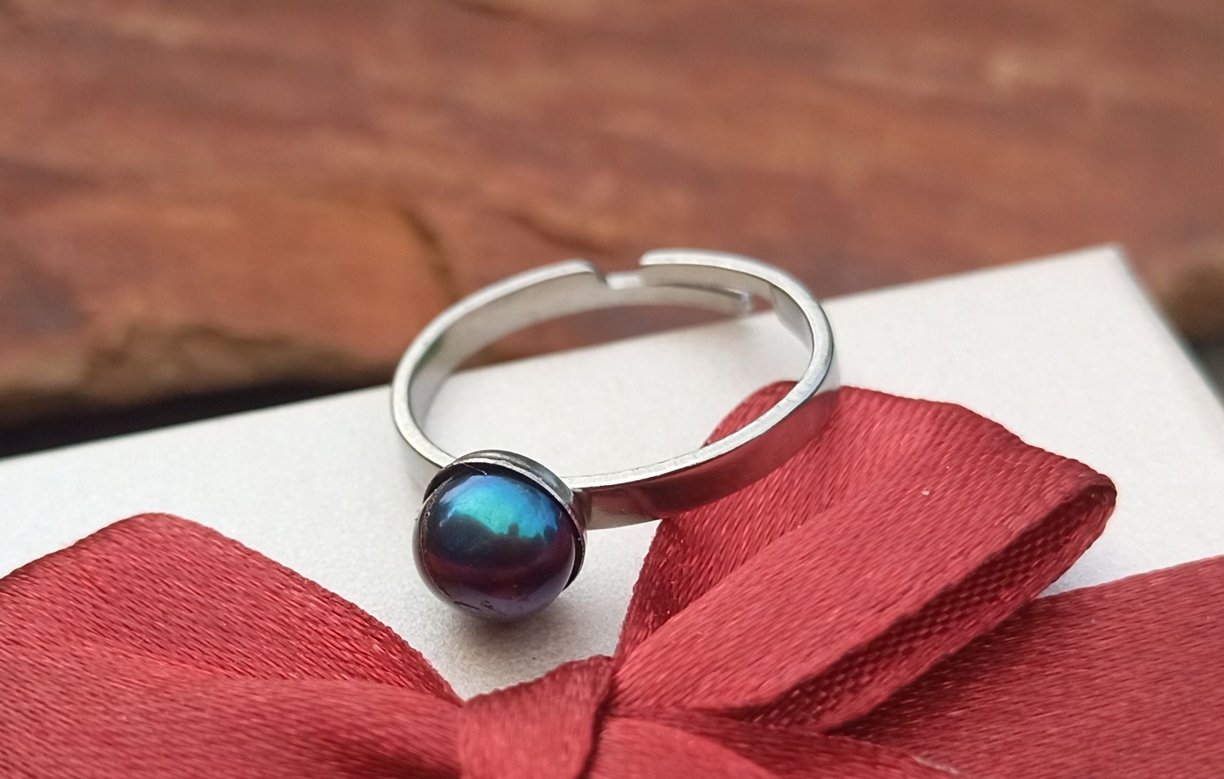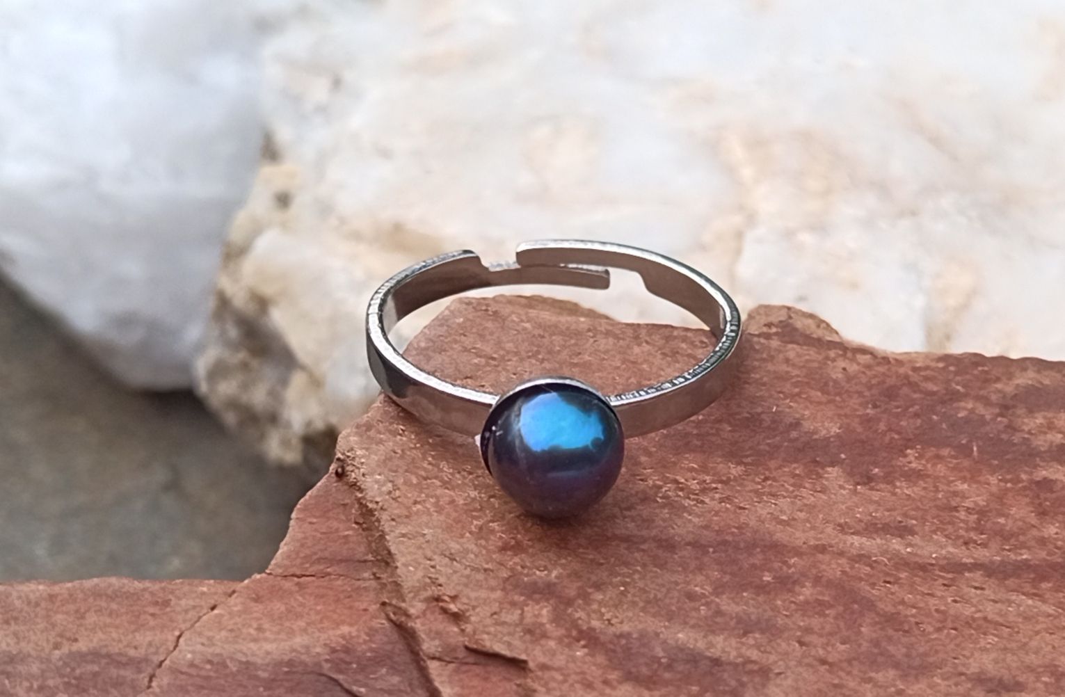 Perlový prstýnek s modrou říční perlou na chirurgické oceli
