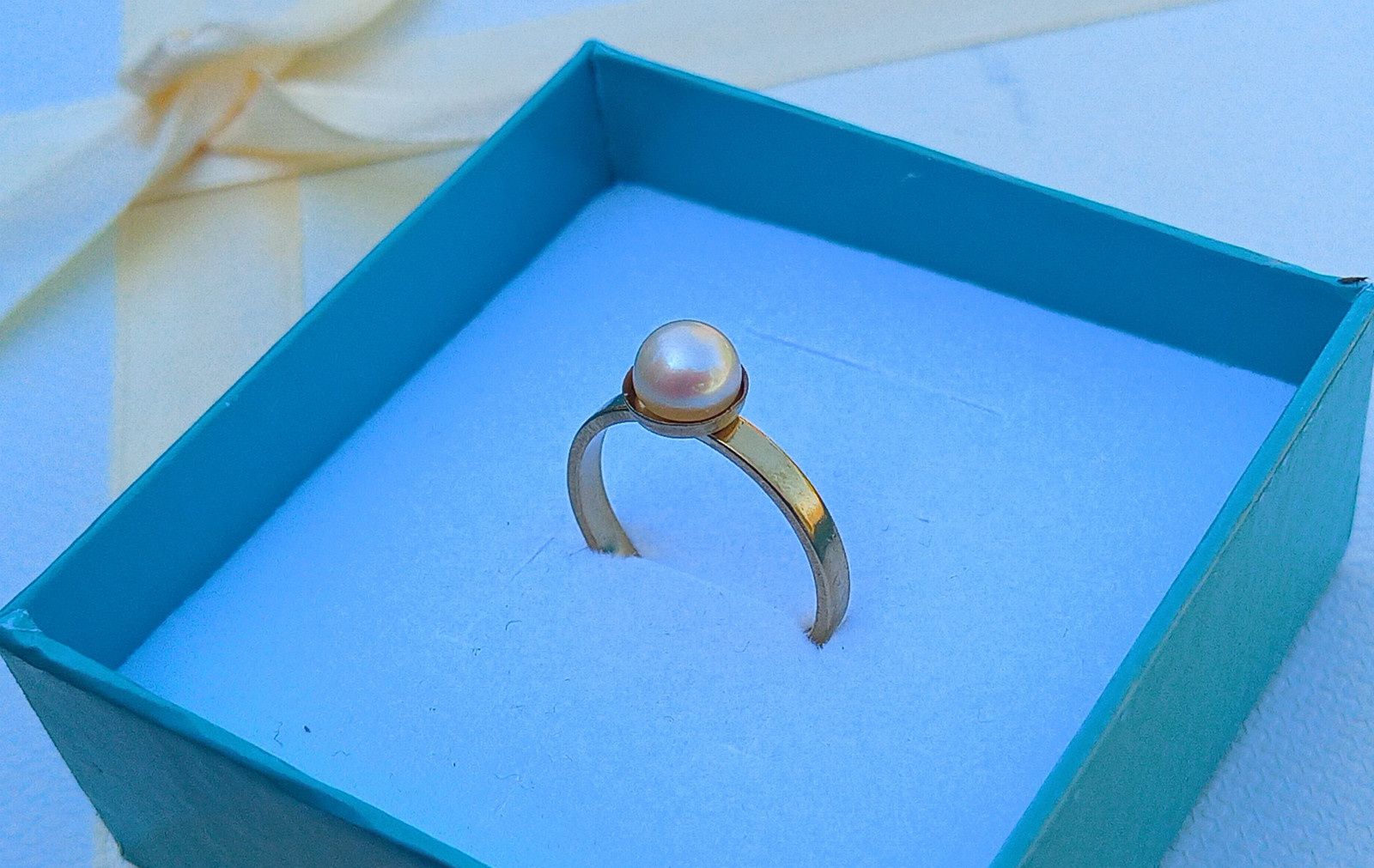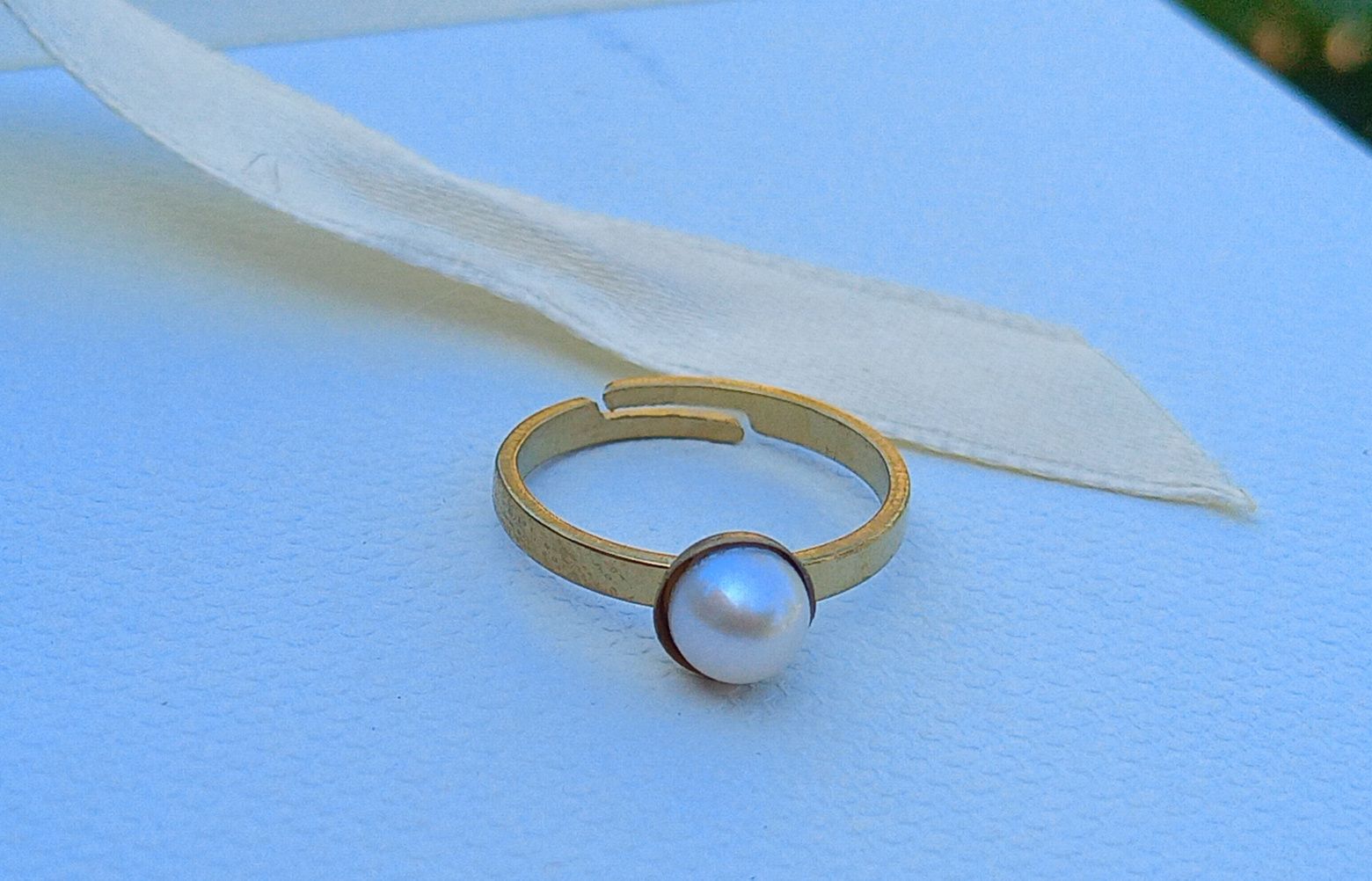 Perlový prstýnek s říční perlou, pozlacená chirurgická ocel