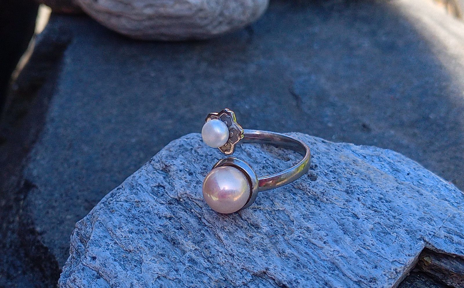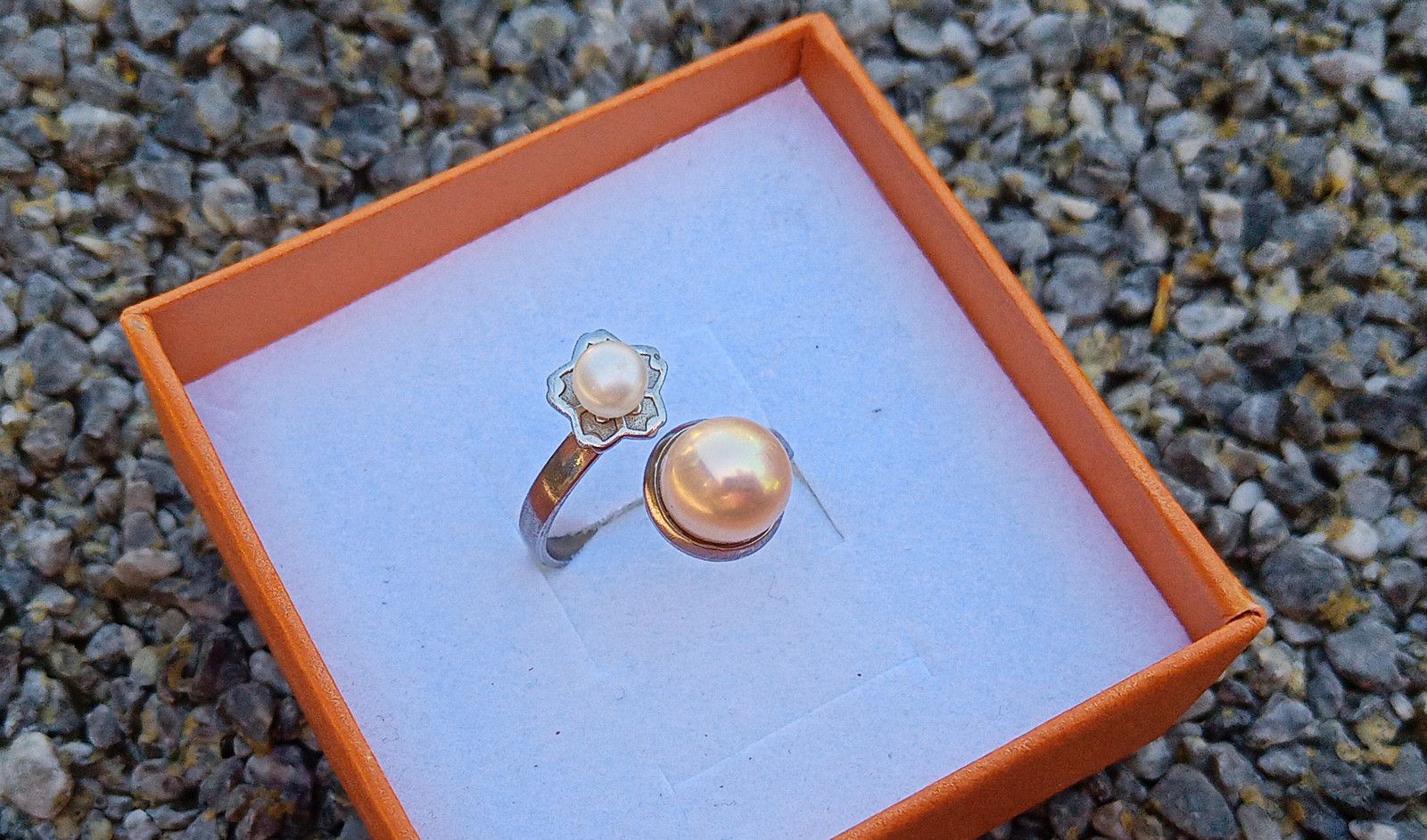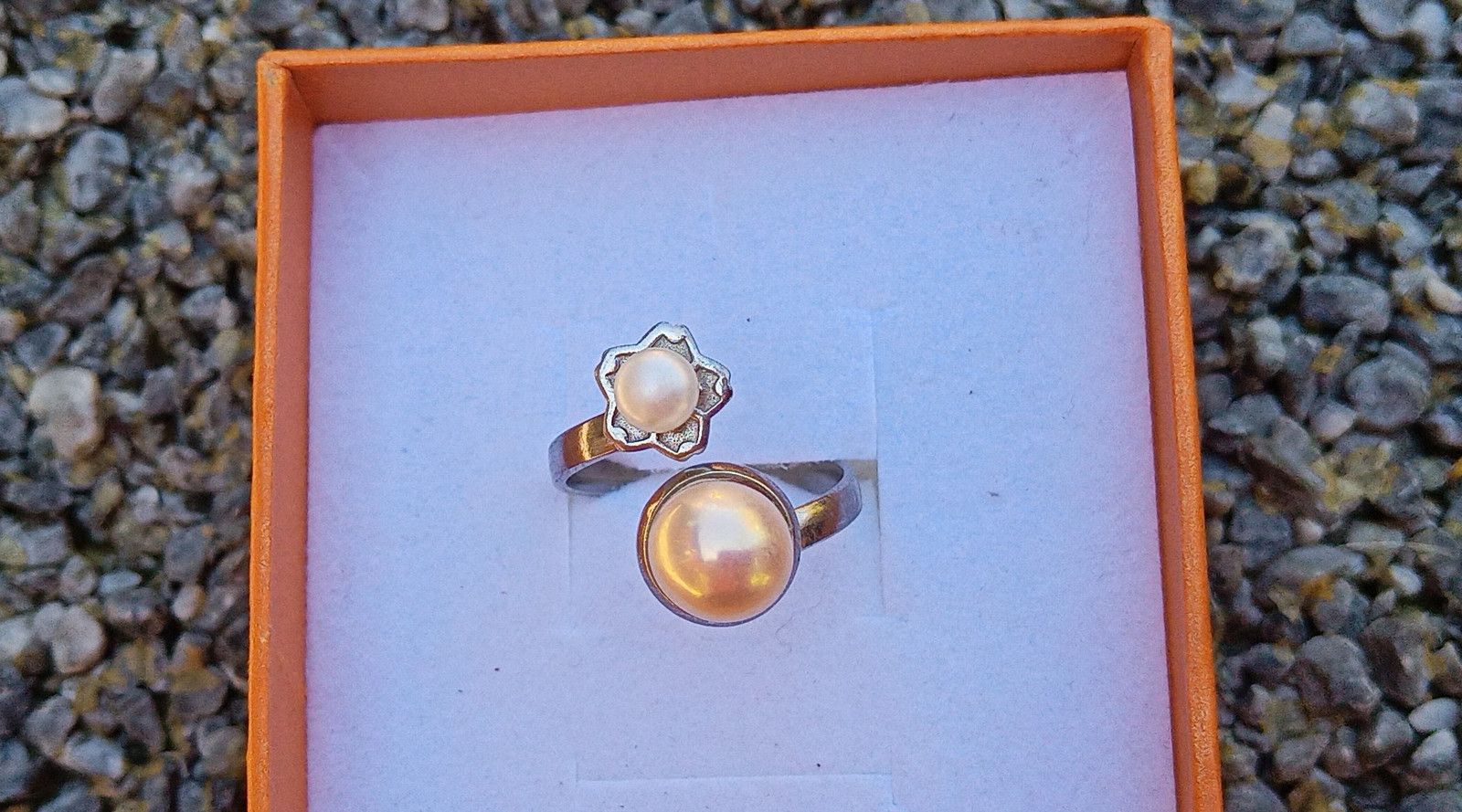 Růžová a bílá říční perla, perlový prstýnek z chirurgické oceli