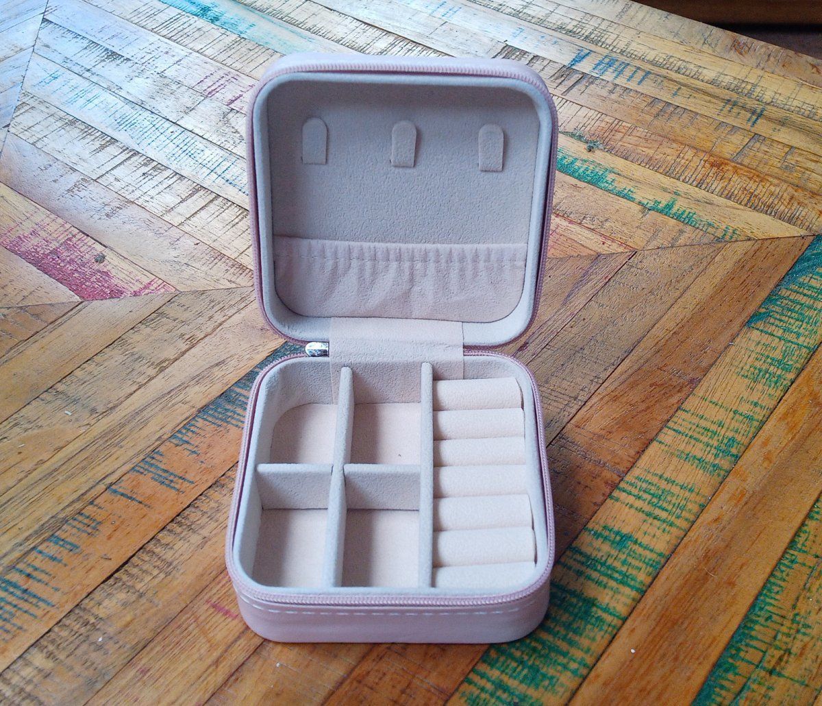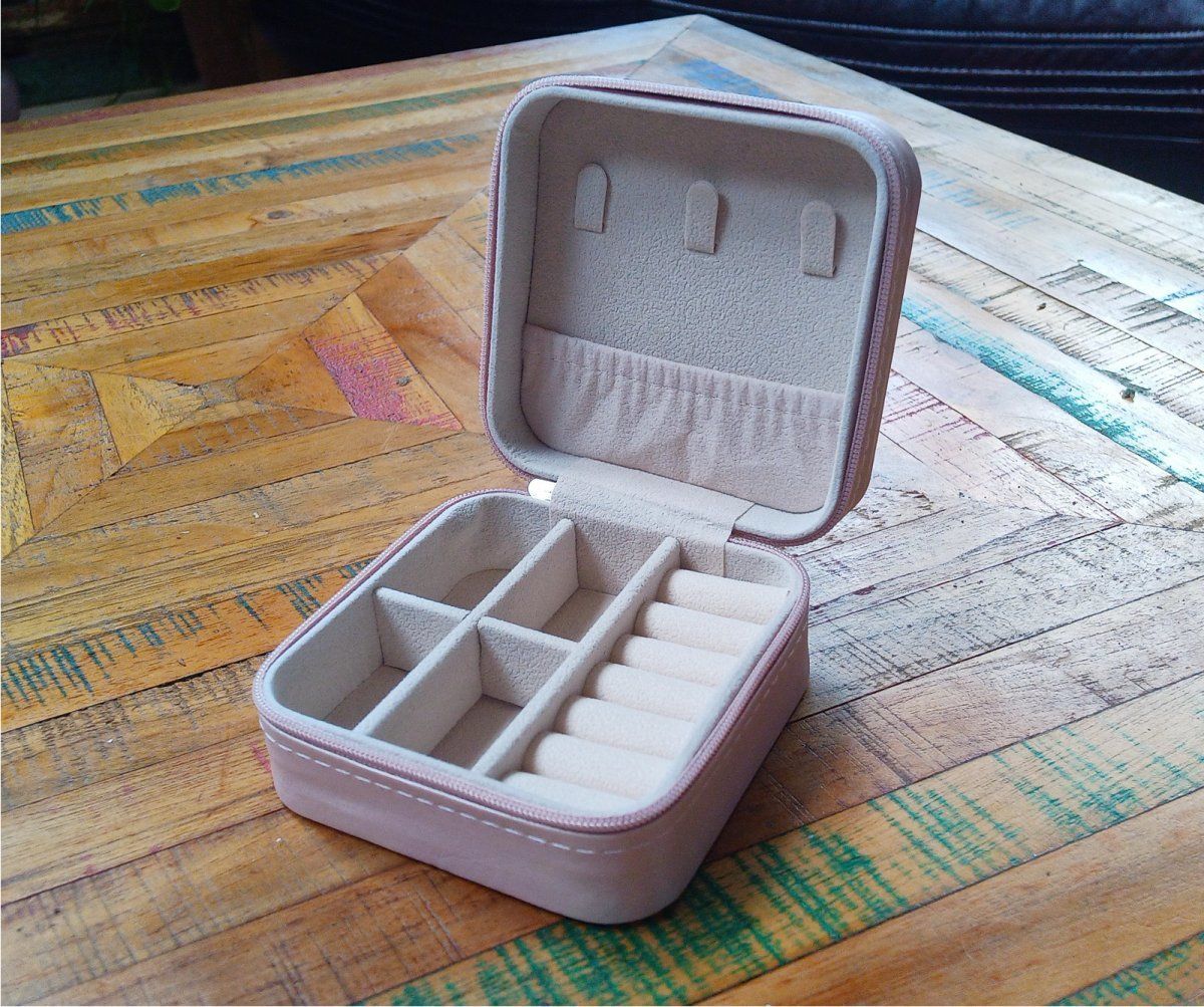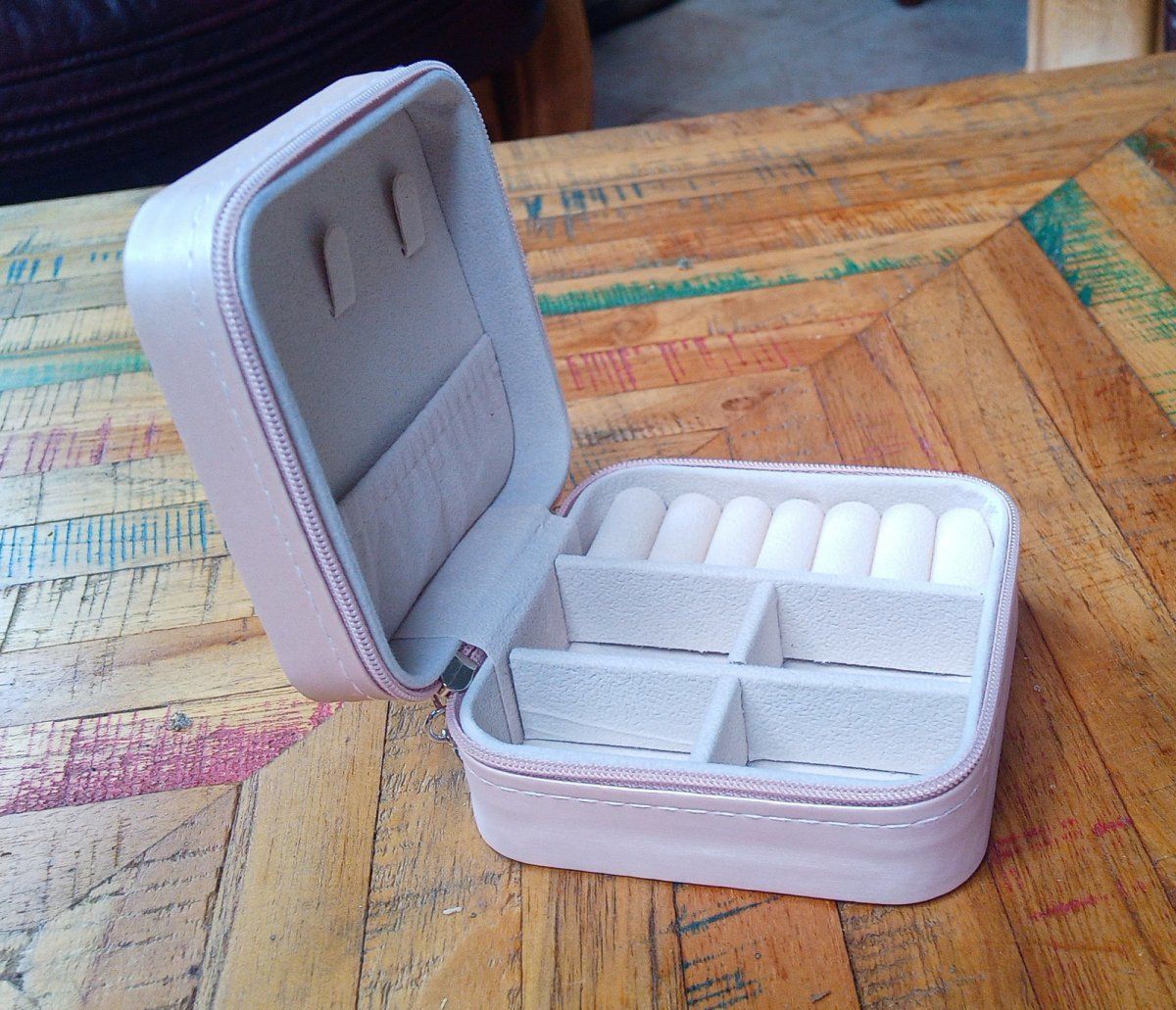 Praktická cestovní růžová šperkovnice s volitelnými přihrádkami, na zip