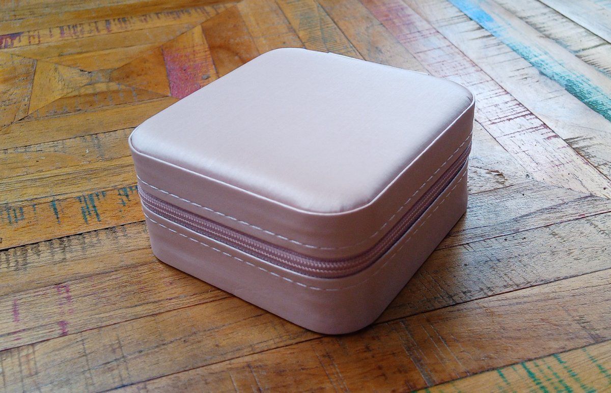 Jemně růžová šperkovnice s praktickým polyesterovým potahem a pohodlným zapínáním na zip. Je vhodná také jako cestovní. Vnitřní část víčka je doplněna kapsou a třemi háčky na zavěšení např. náramků.