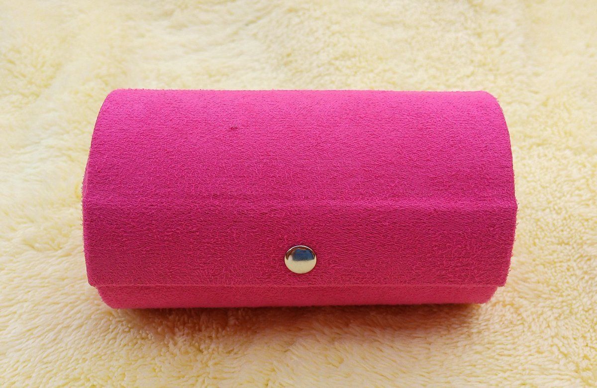 Sametová růžová designová třípatrová cestovní šperkovnice akce
